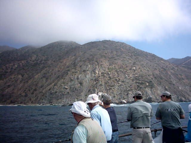 Trip #6: Boat: Thunderbird 1.5 day Departs: Firday September 5th Fishing: September 5th - September 6th Returns: September 6th, AM Thunderbird Crew: Jeff Markland- Captain Steve Raby- 2nd Captain Jose & Nate on deck Carmelo in the Galley To everyone’s surprise the first to arrive on Thursday to get head of the line privileges was of all people Tony Beall! Damn! As the afternoon wore on into the evening, the remainer of the group made their way to the dock. The Thunderbird rolled in around 6:30pm and it was clear, fishing had been thoroughly trashed due to poor weather offshore. They fished San Clemente Island for two days for a handful of yellowtail, but good calico bass fishing. After I wandered down to the boat, and speaking with Jeff, confirmed the weather was forecast to be poor where the tuna had been, and they disappeared, and we would be relegated to fishing “an island or two”. So what did that mean? Well a very reliable squid light boat source had reported to Jeff that day that he had seen a large volume of yellowtail at Santa Barbara Island that same day. So Jeff said we will head there first and check it out, then scour the previous tuna grounds west of San Clemente Island later as we head to San Clemente Island to fish for bass and hopefully some yellowtail there. So off we went. We already had a few scoops of squid on the boat and the sardines we got were very good. Travel out was rather sporty as we had wind and swell and were traveling at a poor angle due to the course line required. 60 miles of shit weather does not make for sleeping very well. We arrived at Santa Barbara Island around 4:10am on the squid grounds and fished a couple areas in the front and back of the island for nothing. Screaming current- Dropper loop needed 16 oz to hold bottom in only 100 feet of water. There was no sign of the yellowtail from the day before. It figures. Around 8:45am Jeff said he had enough, pulled the plug and we headed to the next island via the tuna grounds. An interesting note was the wind had backed off and by 9:00am, it was actually pretty pleasant on the water. Spent the next several hours traveling and scouting the tuna grounds where the fish had been. Stopped on one spot on the sonar and had some fish under the boat for one missed bite on Luke’s drop shot rig. Arrived at the “9” on the west end of San Clemente Island to start. Heavy current and every sea lion at the island were there. Saw a couple Yellowtail boils but no bites. Moved to the north kelp at Northwest Harbor and the bass bit well for 20 minutes or so until the current backed off and the kelp floated. After that fished a number of spots “spot hopping” down the front side the rest of the day, a couple good bass bites and some pick bites, but no yellowtail to be found. A couple boils here and there but no volume or any biters. And all the sea lions we wanted. We were the only sportfishing boat there so we couldn’t “share the wealth” with anyone. The wind had come up again around mid-afternoon and made things pretty difficult as it was wind against the current all afternoon. Ended up in Pyramid Cove and fished in there until it was time to head home. Carmelo put out a very good dinner of tri-tip, potatoes, asparagus and salad, topped off with our usual Klondike Bar desert. Left for home at 10:00pm and another “sporty”, no sleep ride until inside Catalina. Arrived at around 4:15am, everyone unloaded and that was it! Trip total-NO “gamefish”, near boat limits of calico bass, some kept and most released, 1 really micro bonito, 1 barracuda, TWO Blue Perch! Also some miscellaneous whitefish and sheephead mixed in. Needless to say the old fixing axiom does apply to this trip: “You should have been here yesterday, wait until tomorrow” JP & Patch winner- Bill Parks- 4.5 lb Calico Bass One item that I find encouraging is the calico bass fishing at the island. The percentage of legal (14 inch) and above fish is way up from the past, and although the bite is not fully consistent, if you work at it, you can get some decent ones. Also, it seems the quantity of calicos is increasing as compared to the last couple of years. I am convinced that the 14” size limit which allows the spawners to grow enough to spawn may actually be contributing. Time will tell. Well that’s it! Next up, 2.5 day trip leaving Tuesday 9/16 returning Friday early morning 9/19. Your Scribe (Again)- Gary Thompson