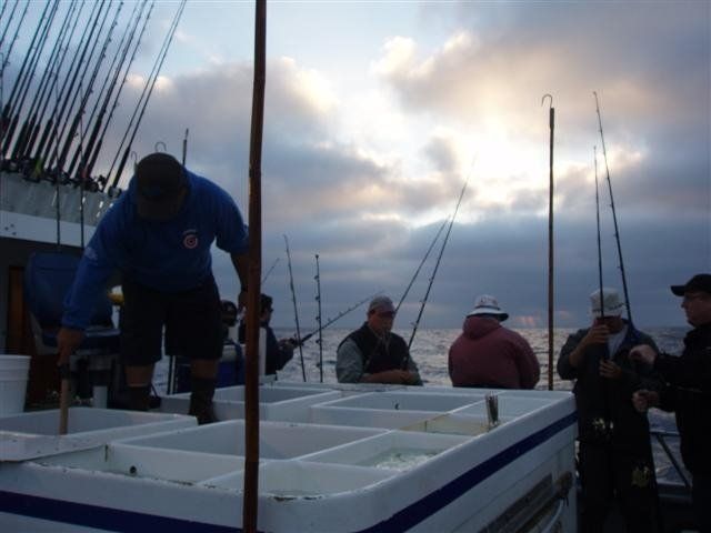 Trip #8: Boat: Thunderbird 1.5 day Departs: Thursday, October 2th Fishing: October 3th, 4th Returns: October 4th pm Thunderbird Crew: Capt. Jeff Capt. Chris Jose Nate Goofy Cast of Characters: Bill Parks Steve Morgan Riley Dyer Jim Bertella Justin Becker Jacob Richards Luke Burson Paul Morgan Mike Allen (Scribe) Patrick Thunyakij Bruce Granse Kevon Kong Michael Harris Ryan Burson Oscar Ochoa Ed Chutney Jeff Allen Andrew Ron Shrout Murphy Parks Romeo Ochoa James Harris Ozzie Baktiari Arriving for a trip in the month of October at Newport Landing is a far easier experience then one would have in the summer months of June – September. The dread of driving through the neighborhood in hopes of an empty space large enough to accommodate the larger trucks that many of the club members own seems to dissipate as the offerings are far more plentiful. While the welcomed views of summer also tend to be less abundant, the ensemble of club members arrived with plenty of time to catch-up on some conversations and enjoy a beverage or two.