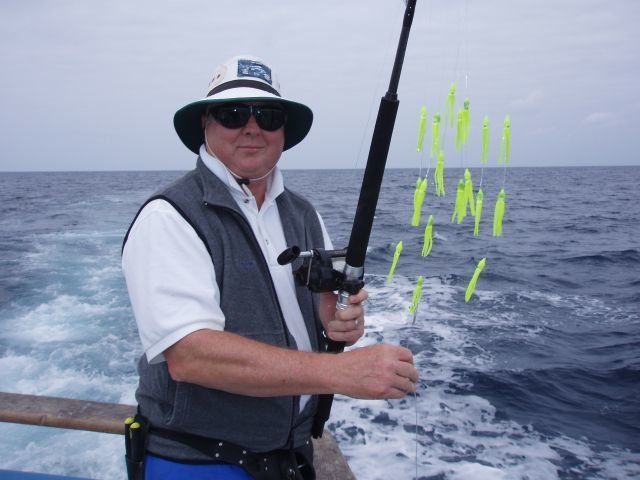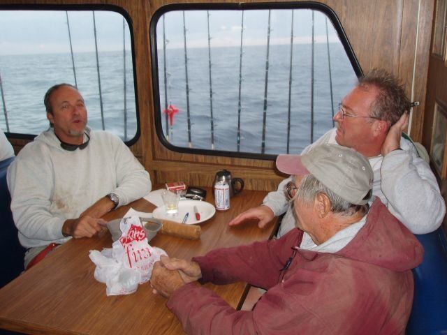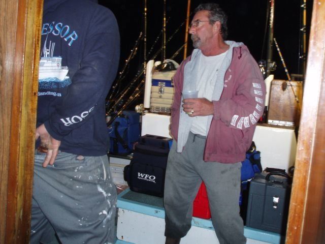 Trip #5: Boat: Thunderbird 2.5 day Departs: Tuesday August 19th Fishing: August 20th, 21th Returns: August 22th am Thunderbird Crew: Jeff Markland- Captain Steve Raby- 2nd Captain Jose, Jared & Nate on deck Goofy in his usual form in the Galley The usual suspects, newer club members and a slew of guests began gathering for the upcoming 2.5-day venture on board the Thunderbird on Tuesday afternoon/evening, a lot of discussion occurred around where will we fish, what is our bait, are we going to fish for tuna, and more importantly, the weather. Forecast was for pretty breezy on the outer banks and tuna grounds with somewhat better at the island. Thursday weather looked much improved everywhere. As it turned out, the weather turned out nice the first day, and even nicer the second day. Also the good news was we would have sardines for bait. When the boat returned from the fuel dock around 7:30, I wandered down to the boat and sat with Jeff and discussed our “options”. There was about 2 scoops of live squid on the boat and the squid at San Clemente Island was available but by jigging. Also, the yellowtail fishing was hit or miss at best early in the cove, and then really nothing to catch the rest of the day unless the bass decided to bite. The tuna grounds were in range to do some night fishing between the days, and daytime fishing was producing smaller fish. The Tanner Bank had the 10-15 lb variety which was spotty, and inside toward SCI were bigger 30-35lb variety with some larger mixed in. Getting bites though would be hard. The Cortez Bank coughed up 100 yellowtail for Jeff a few days before. There was also some white sea bass caught at San Nicholas Island so that was an option. Soooo, one more time, what to do. Jeff decided he will decide when we leave the bait receiver as I said give it your best shot. The final decision, with the weather forecast improving, we would head to the Cortez Bank since there had been some yellowtail there a few days before. And off we went. Travel out was not too bad. Day 1- Arrived at the Cortez Bank around 7:45 am, fished a couple areas for nothing except some of the jumbo bonito, large mackerel and a few bottom dwellers. There was no sign of yellowtail. Where the F**k did they go? Around 10:00am, Jeff pulled the plug and we headed back inside to the tuna grounds, about 30 miles away. Weather was getting much nicer, We ended up picking at the BFT not long after we arrived in the area around 2:00pm and joined “the fleet”. We had one decent plunker drift for 16 BFT, and scratched up 9 more at sundown. As dark fell, we headed into the island to try for the early morning yellowtail fishing at the Lost Point area. Day 1 fish count- 25 BFT, 4 Bonito kept, a few misc bottom dwellers kept JP winner- Bronson Noggle (Cory Steinwand Guest)- 30 plus lb BFT, Patch winner Cory Steinwand- 30 plus lb BFT (it was very close) Day 2- had a few yellowtail bites in the dark and grey light at Lost Point, all nice fish. Headed out after grey light for yesterday’s tuna grounds. Flat calm weather. Worked the area with “the fleet” for a couple of hours and covering a lot of water. Jeff finally pulled the plug and decided to take a gamble and head to the Tanner Bank since there were tuna there a few days before. And the gamble certainly paid off. We were greeted with boiling fish in the chum circle when we arrived, boiling fish on the anchor and steady fishing on the 10-15 lb BFT the rest of the afternoon. We fished a couple deep spots for decent reds and other stuff, one nice ling cod and headed back to the area west of SCI toward San Nicholas Island for some night fishing. We had several stops on spots of fish, and got a few anywhere from 30 plus lbs up to 100lbs. Around midnight, we headed home. We were able to fish that long because by chance, the boat was not scheduled to run a ¾ day trip when we got in, so we got to fish longer. Arrived at the dock around 7:20am, unloaded and that was it. Day 2 fish count- 6 Yellowtail, 40 BFT, 1 Halibut, 2 Barracuda, 100 plus mixed Reds and Rockfish, 1 Ling Cod JP & Patch winner- Cory Steinwand- 102 lb BFT Trip total- 65 BFT, 6 Yellowtail, 1 Halibut, 4 Bonito, 100 plus mixed Reds/Rockfish, 1 Ling Cod The weather for the entire trip was good. Temperature cool both days but very nice. Very little wind to flat calm the entire 2 days. One thing that was troubling was the amount of casualties on these smaller tuna. Seems like most everyone liberated one or two, or more. (We won’t mention my luck!). Small hooks and light line with too much pressure and these little guys were hot! All in all a good time had by all and a very good group of guests on this trip as well. That’s it! Your Scribe- Gary Thompson