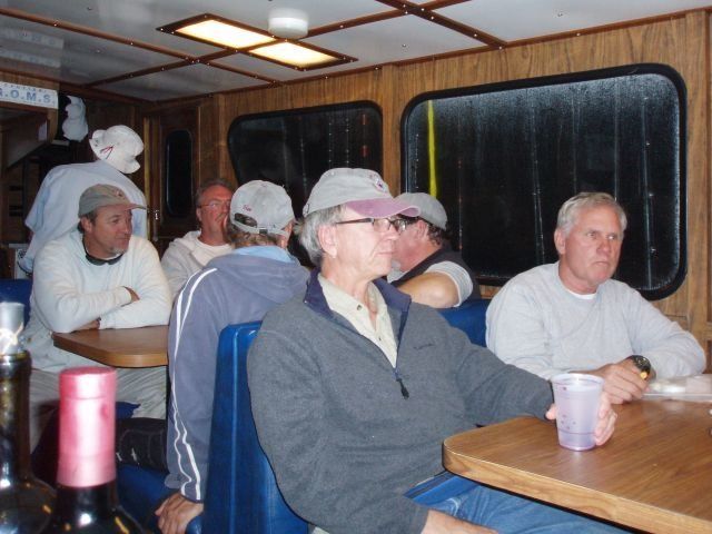 Trip #8: Boat: Thunderbird 1.5 day Departs: Thursday, October 2th Fishing: October 3th, 4th Returns: October 4th pm Thunderbird Crew: Capt. Jeff Capt. Chris Jose Nate Goofy Cast of Characters: Bill Parks Steve Morgan Riley Dyer Jim Bertella Justin Becker Jacob Richards Luke Burson Paul Morgan Mike Allen (Scribe) Patrick Thunyakij Bruce Granse Kevon Kong Michael Harris Ryan Burson Oscar Ochoa Ed Chutney Jeff Allen Andrew Ron Shrout Murphy Parks Romeo Ochoa James Harris Ozzie Baktiari Arriving for a trip in the month of October at Newport Landing is a far easier experience then one would have in the summer months of June – September. The dread of driving through the neighborhood in hopes of an empty space large enough to accommodate the larger trucks that many of the club members own seems to dissipate as the offerings are far more plentiful. While the welcomed views of summer also tend to be less abundant, the ensemble of club members arrived with plenty of time to catch-up on some conversations and enjoy a beverage or two.