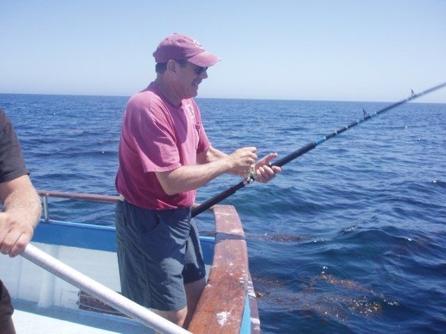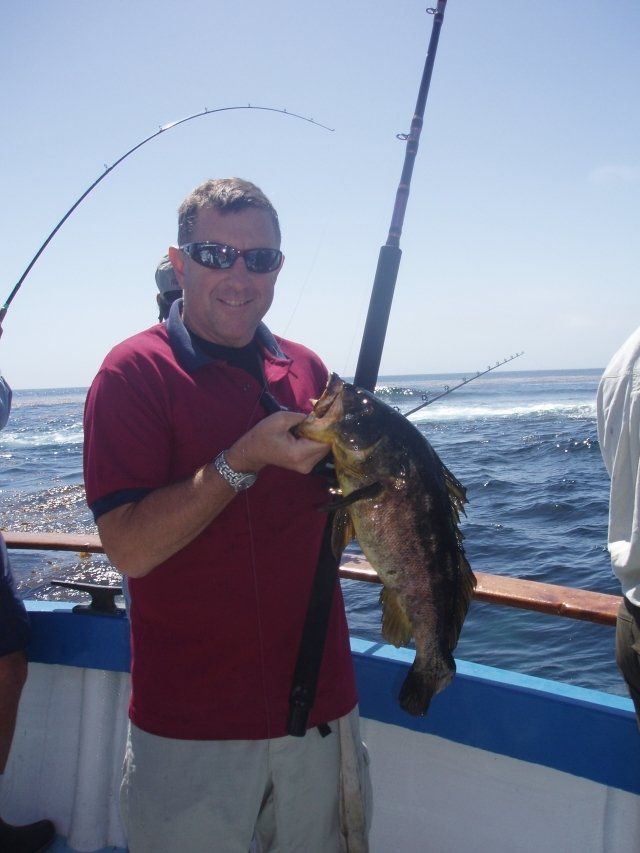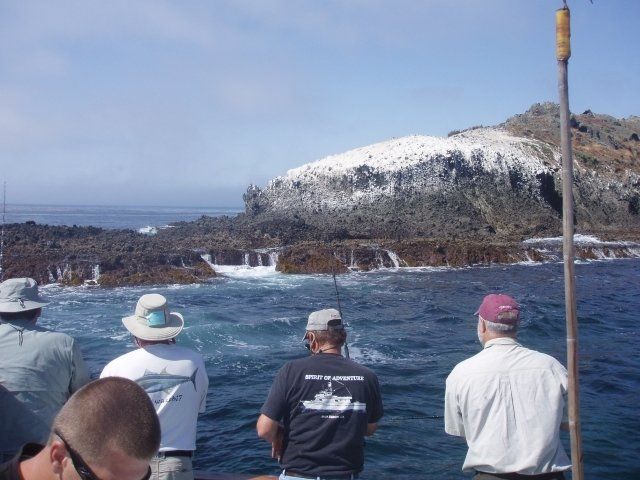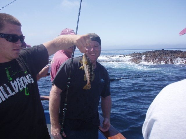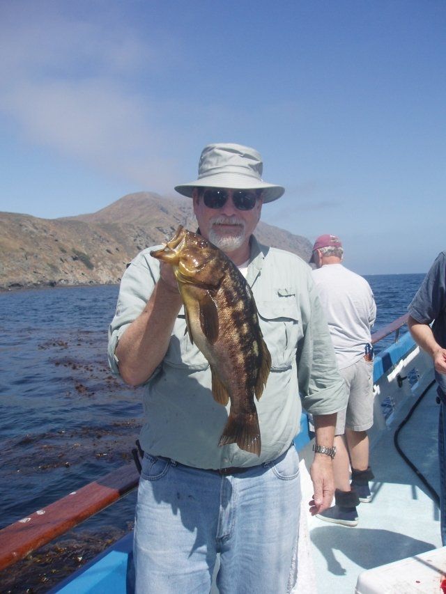 Trip #6: Boat: Thunderbird 1.5 day Departs: Firday September 5th Fishing: September 5th - September 6th Returns: September 6th, AM Thunderbird Crew: Jeff Markland- Captain Steve Raby- 2nd Captain Jose & Nate on deck Carmelo in the Galley To everyone’s surprise the first to arrive on Thursday to get head of the line privileges was of all people Tony Beall! Damn! As the afternoon wore on into the evening, the remainer of the group made their way to the dock. The Thunderbird rolled in around 6:30pm and it was clear, fishing had been thoroughly trashed due to poor weather offshore. They fished San Clemente Island for two days for a handful of yellowtail, but good calico bass fishing. After I wandered down to the boat, and speaking with Jeff, confirmed the weather was forecast to be poor where the tuna had been, and they disappeared, and we would be relegated to fishing “an island or two”. So what did that mean? Well a very reliable squid light boat source had reported to Jeff that day that he had seen a large volume of yellowtail at Santa Barbara Island that same day. So Jeff said we will head there first and check it out, then scour the previous tuna grounds west of San Clemente Island later as we head to San Clemente Island to fish for bass and hopefully some yellowtail there. So off we went. We already had a few scoops of squid on the boat and the sardines we got were very good. Travel out was rather sporty as we had wind and swell and were traveling at a poor angle due to the course line required. 60 miles of shit weather does not make for sleeping very well. We arrived at Santa Barbara Island around 4:10am on the squid grounds and fished a couple areas in the front and back of the island for nothing. Screaming current- Dropper loop needed 16 oz to hold bottom in only 100 feet of water. There was no sign of the yellowtail from the day before. It figures. Around 8:45am Jeff said he had enough, pulled the plug and we headed to the next island via the tuna grounds. An interesting note was the wind had backed off and by 9:00am, it was actually pretty pleasant on the water. Spent the next several hours traveling and scouting the tuna grounds where the fish had been. Stopped on one spot on the sonar and had some fish under the boat for one missed bite on Luke’s drop shot rig. Arrived at the “9” on the west end of San Clemente Island to start. Heavy current and every sea lion at the island were there. Saw a couple Yellowtail boils but no bites. Moved to the north kelp at Northwest Harbor and the bass bit well for 20 minutes or so until the current backed off and the kelp floated. After that fished a number of spots “spot hopping” down the front side the rest of the day, a couple good bass bites and some pick bites, but no yellowtail to be found. A couple boils here and there but no volume or any biters. And all the sea lions we wanted. We were the only sportfishing boat there so we couldn’t “share the wealth” with anyone. The wind had come up again around mid-afternoon and made things pretty difficult as it was wind against the current all afternoon. Ended up in Pyramid Cove and fished in there until it was time to head home. Carmelo put out a very good dinner of tri-tip, potatoes, asparagus and salad, topped off with our usual Klondike Bar desert. Left for home at 10:00pm and another “sporty”, no sleep ride until inside Catalina. Arrived at around 4:15am, everyone unloaded and that was it! Trip total-NO “gamefish”, near boat limits of calico bass, some kept and most released, 1 really micro bonito, 1 barracuda, TWO Blue Perch! Also some miscellaneous whitefish and sheephead mixed in. Needless to say the old fixing axiom does apply to this trip: “You should have been here yesterday, wait until tomorrow” JP & Patch winner- Bill Parks- 4.5 lb Calico Bass One item that I find encouraging is the calico bass fishing at the island. The percentage of legal (14 inch) and above fish is way up from the past, and although the bite is not fully consistent, if you work at it, you can get some decent ones. Also, it seems the quantity of calicos is increasing as compared to the last couple of years. I am convinced that the 14” size limit which allows the spawners to grow enough to spawn may actually be contributing. Time will tell. Well that’s it! Next up, 2.5 day trip leaving Tuesday 9/16 returning Friday early morning 9/19. Your Scribe (Again)- Gary Thompson