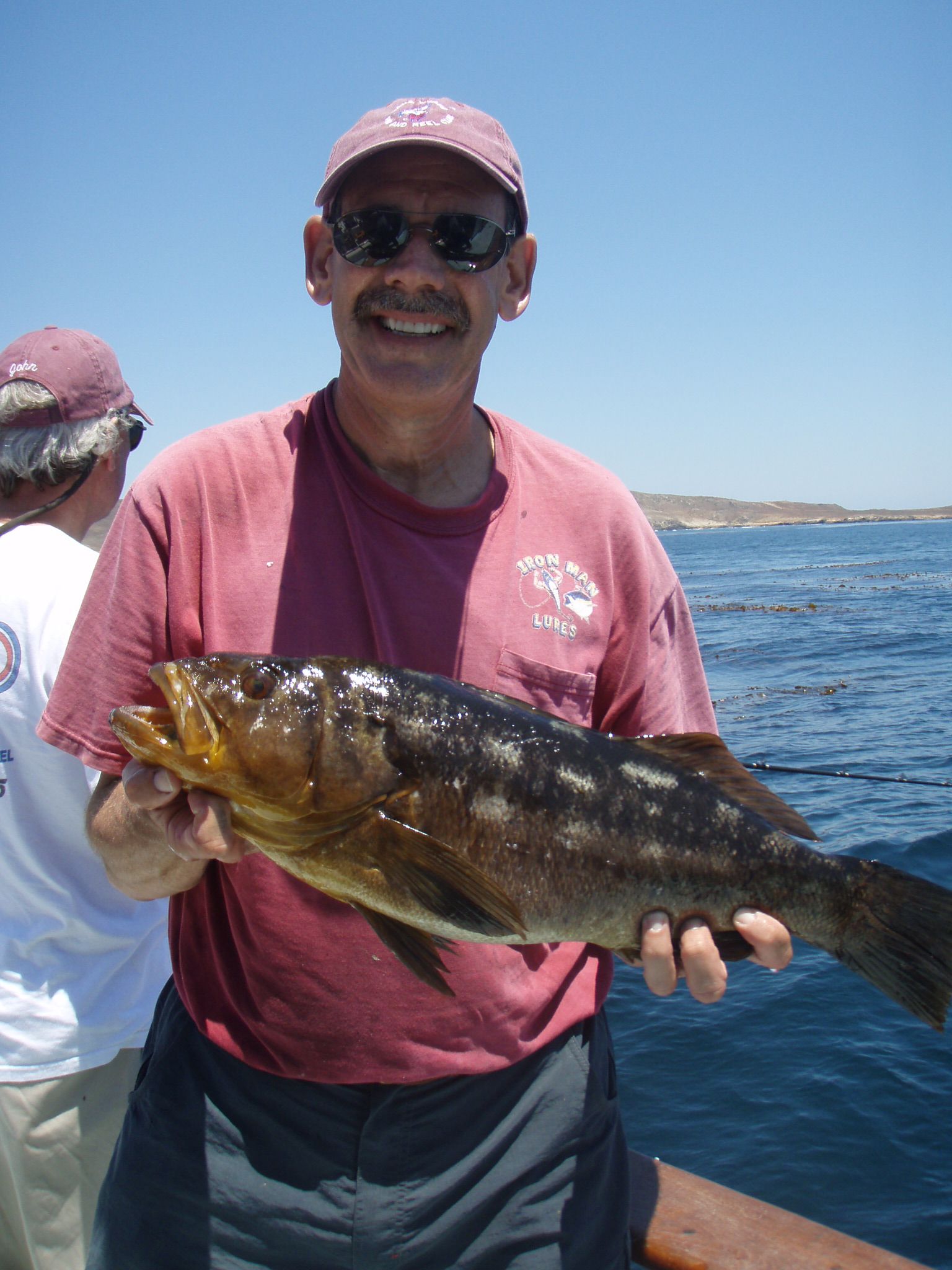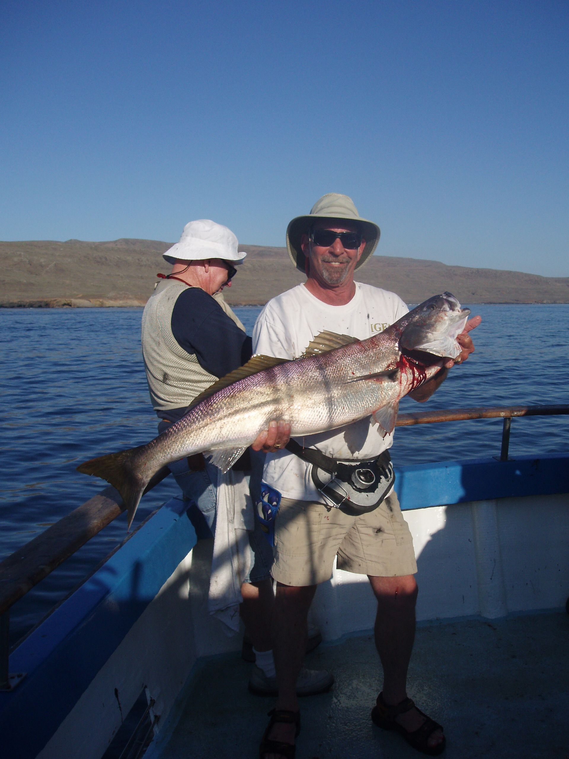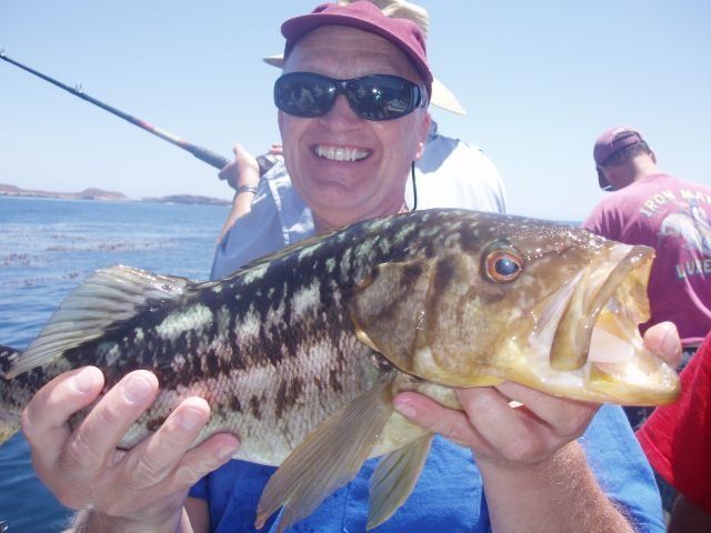 Trip #6: Boat: Thunderbird 1.5 day Departs: Firday September 5th Fishing: September 5th - September 6th Returns: September 6th, AM Thunderbird Crew: Jeff Markland- Captain Steve Raby- 2nd Captain Jose & Nate on deck Carmelo in the Galley To everyone’s surprise the first to arrive on Thursday to get head of the line privileges was of all people Tony Beall! Damn! As the afternoon wore on into the evening, the remainer of the group made their way to the dock. The Thunderbird rolled in around 6:30pm and it was clear, fishing had been thoroughly trashed due to poor weather offshore. They fished San Clemente Island for two days for a handful of yellowtail, but good calico bass fishing. After I wandered down to the boat, and speaking with Jeff, confirmed the weather was forecast to be poor where the tuna had been, and they disappeared, and we would be relegated to fishing “an island or two”. So what did that mean? Well a very reliable squid light boat source had reported to Jeff that day that he had seen a large volume of yellowtail at Santa Barbara Island that same day. So Jeff said we will head there first and check it out, then scour the previous tuna grounds west of San Clemente Island later as we head to San Clemente Island to fish for bass and hopefully some yellowtail there. So off we went. We already had a few scoops of squid on the boat and the sardines we got were very good. Travel out was rather sporty as we had wind and swell and were traveling at a poor angle due to the course line required. 60 miles of shit weather does not make for sleeping very well. We arrived at Santa Barbara Island around 4:10am on the squid grounds and fished a couple areas in the front and back of the island for nothing. Screaming current- Dropper loop needed 16 oz to hold bottom in only 100 feet of water. There was no sign of the yellowtail from the day before. It figures. Around 8:45am Jeff said he had enough, pulled the plug and we headed to the next island via the tuna grounds. An interesting note was the wind had backed off and by 9:00am, it was actually pretty pleasant on the water. Spent the next several hours traveling and scouting the tuna grounds where the fish had been. Stopped on one spot on the sonar and had some fish under the boat for one missed bite on Luke’s drop shot rig. Arrived at the “9” on the west end of San Clemente Island to start. Heavy current and every sea lion at the island were there. Saw a couple Yellowtail boils but no bites. Moved to the north kelp at Northwest Harbor and the bass bit well for 20 minutes or so until the current backed off and the kelp floated. After that fished a number of spots “spot hopping” down the front side the rest of the day, a couple good bass bites and some pick bites, but no yellowtail to be found. A couple boils here and there but no volume or any biters. And all the sea lions we wanted. We were the only sportfishing boat there so we couldn’t “share the wealth” with anyone. The wind had come up again around mid-afternoon and made things pretty difficult as it was wind against the current all afternoon. Ended up in Pyramid Cove and fished in there until it was time to head home. Carmelo put out a very good dinner of tri-tip, potatoes, asparagus and salad, topped off with our usual Klondike Bar desert. Left for home at 10:00pm and another “sporty”, no sleep ride until inside Catalina. Arrived at around 4:15am, everyone unloaded and that was it! Trip total-NO “gamefish”, near boat limits of calico bass, some kept and most released, 1 really micro bonito, 1 barracuda, TWO Blue Perch! Also some miscellaneous whitefish and sheephead mixed in. Needless to say the old fixing axiom does apply to this trip: “You should have been here yesterday, wait until tomorrow” JP & Patch winner- Bill Parks- 4.5 lb Calico Bass One item that I find encouraging is the calico bass fishing at the island. The percentage of legal (14 inch) and above fish is way up from the past, and although the bite is not fully consistent, if you work at it, you can get some decent ones. Also, it seems the quantity of calicos is increasing as compared to the last couple of years. I am convinced that the 14” size limit which allows the spawners to grow enough to spawn may actually be contributing. Time will tell. Well that’s it! Next up, 2.5 day trip leaving Tuesday 9/16 returning Friday early morning 9/19. Your Scribe (Again)- Gary Thompson