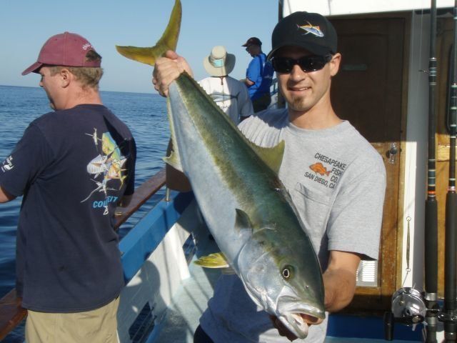 Trip #4: Boat: Thunderbird 2 day Departs: Thursday August 7th Fishing: August 8th, 9th Returns: August 9th pm Trip 4 started as usual with people arriving at Newport Landing at all hours of the day with anticipation of fishing. The preliminary reports from Gary Thompson were all too familiar to what we’ve seen this year. Bait was going to be an issue. And last but not least, was the fish seemed to pop up one day and then disappear the next. Nevertheless, everyone was ready to go. Friday morning saw us anchored at the usual cove off SCI. Weather was OK; fishable, but not a lot of fish. But the ones we caught were quality yellowtail and white sea bass. The sea lions provided ample entertainment …err I mean frustration. We hopped around to a few spots picking up the occasional calico but not much. Day 1 jackpot went to Alex Arthur (Justin Becker’s Guest) with the patch going to Nick Burson for some chunky YT’s Day 2 started much as it did Day 1 but the weather was worse than Day 1. We looked here and there with only 3 yellowtail to show for our efforts. Eventually, the Thunderbird turned towards offshore waters to try our luck at some bluefin. Unfortunately, the fish didn’t get the memo and we saw neither sign or had any bites. Mr, “Hey that’s my fish” Tom Hill was the lucky jackpot and patch winner for Day 2 with a 15# YT. So, there you have it, not a, “Hey you missed a great trip” kind ‘a trip but per usual, the members of our club all seemed to enjoy doing what we do. It’s not always about the fish; it’s about the people and the experience. LOL! Who am I kidding…we all want more fish. Until next time, step to the right/left and take up your slack.