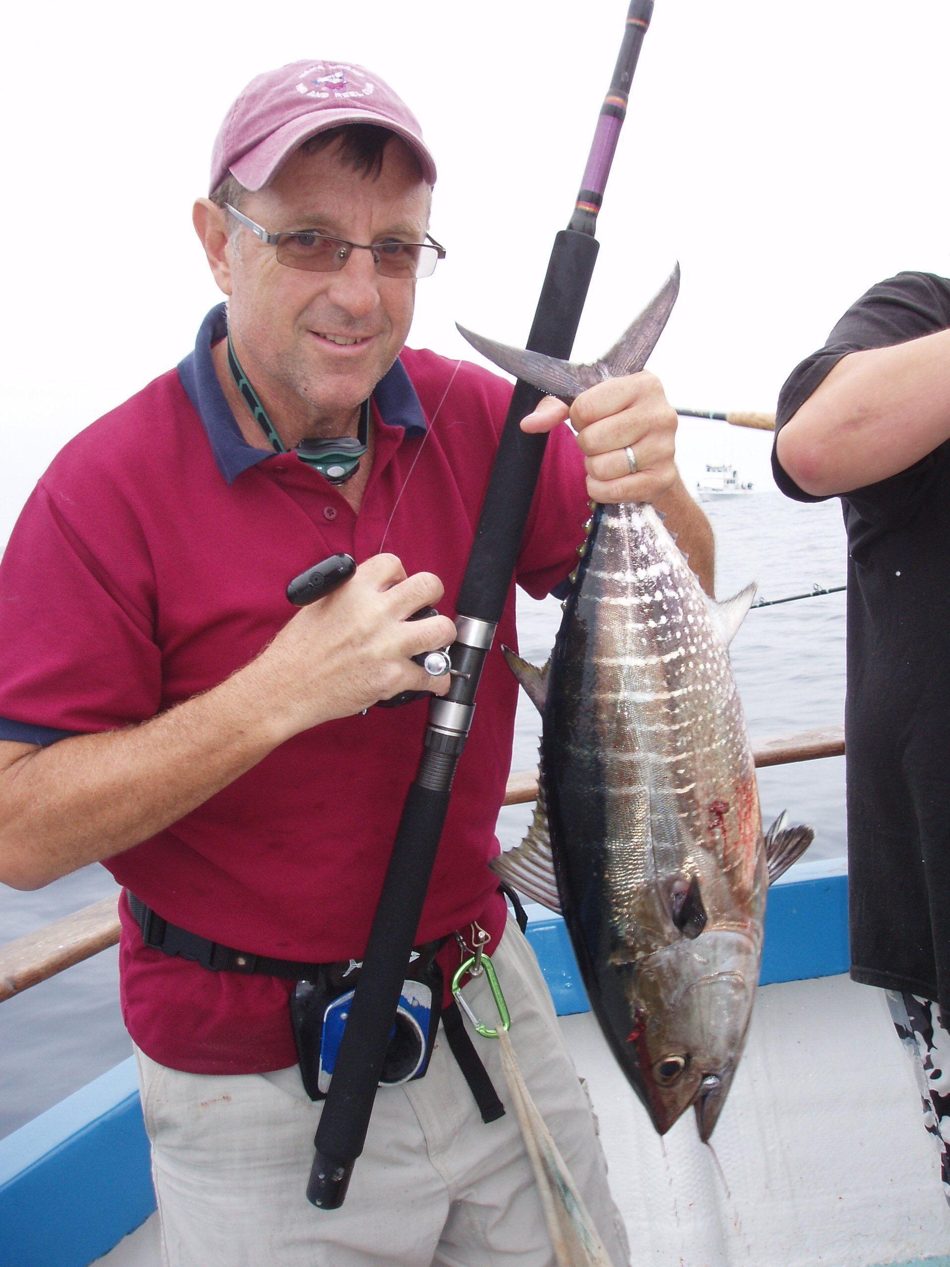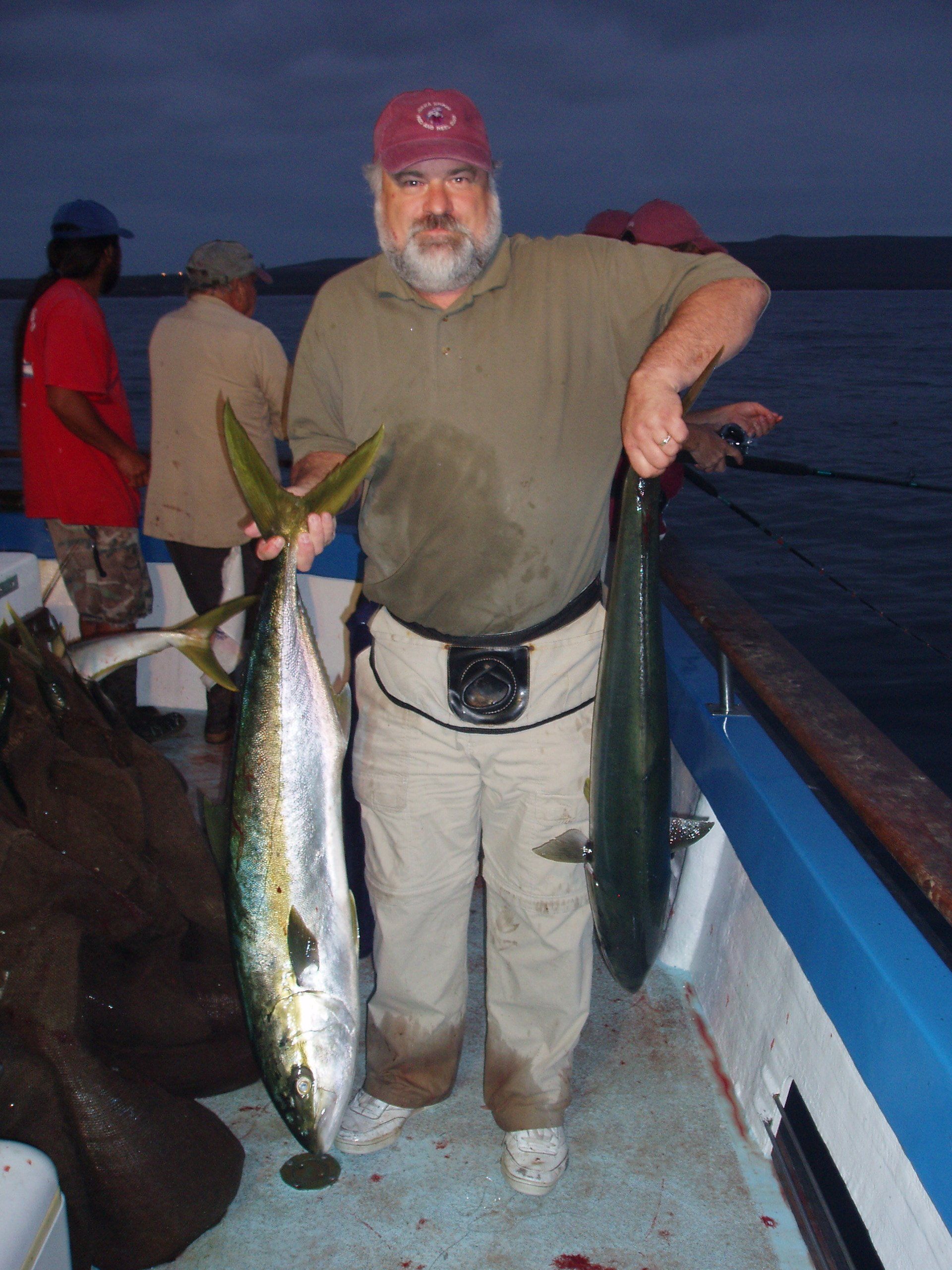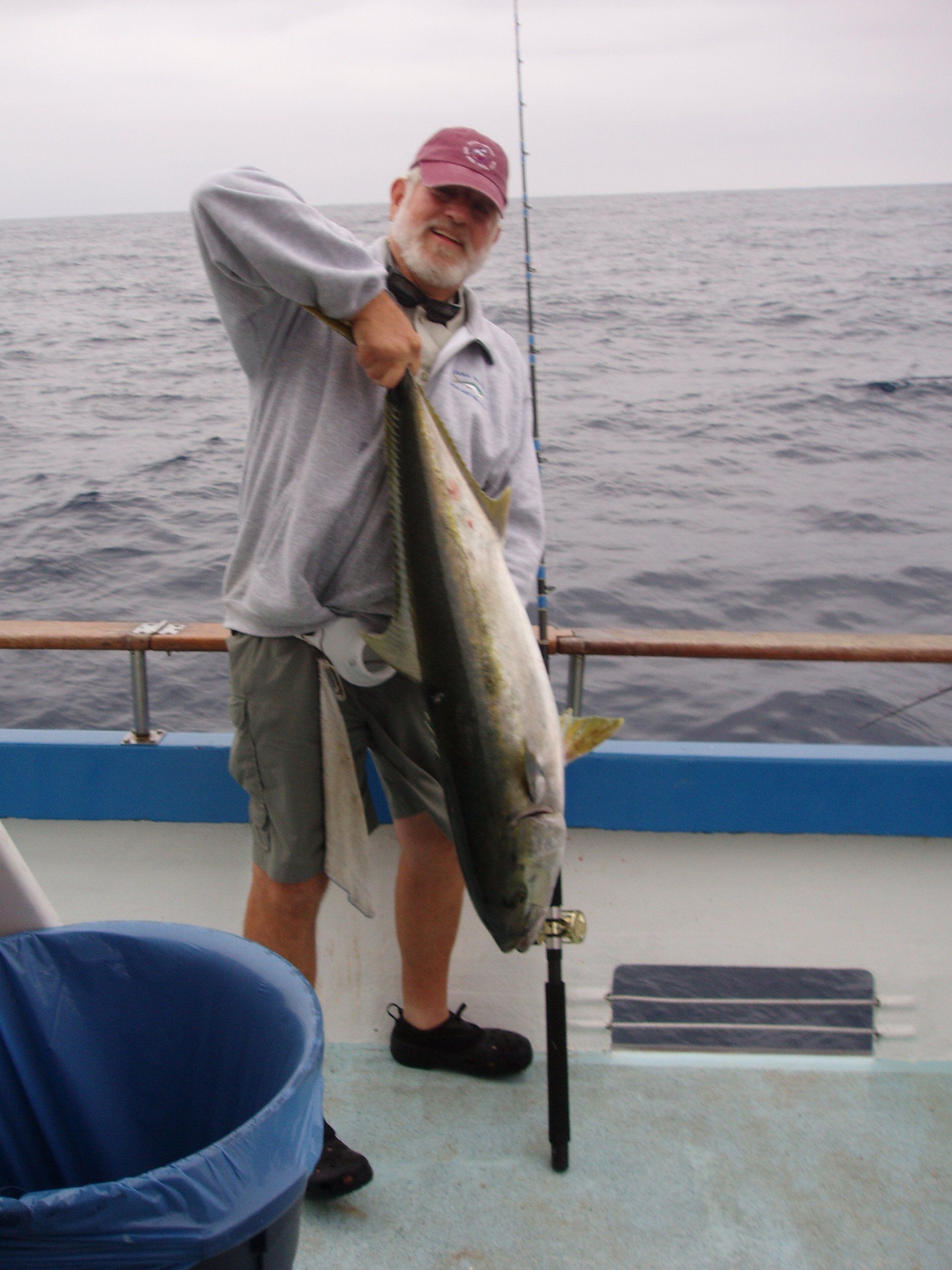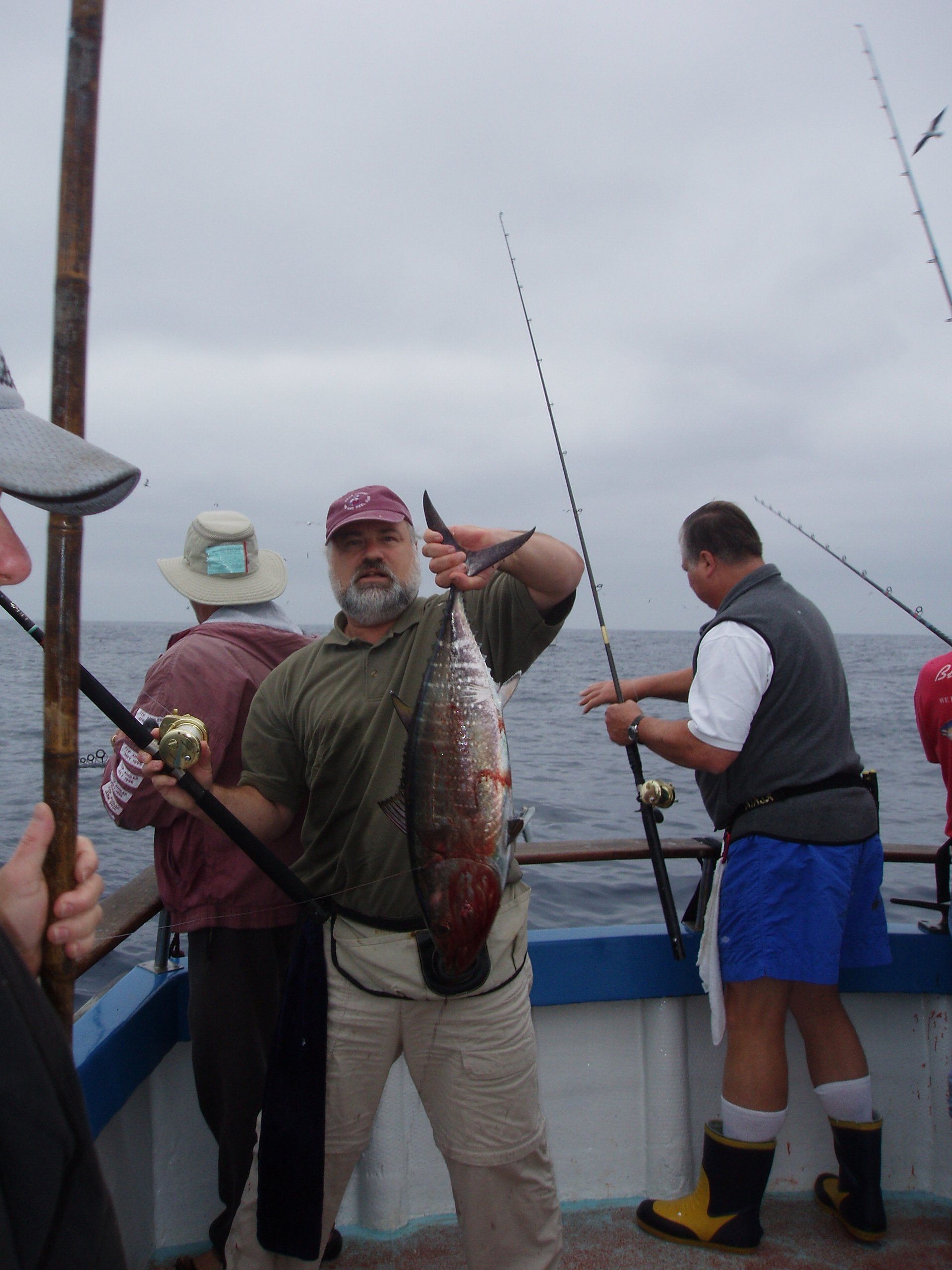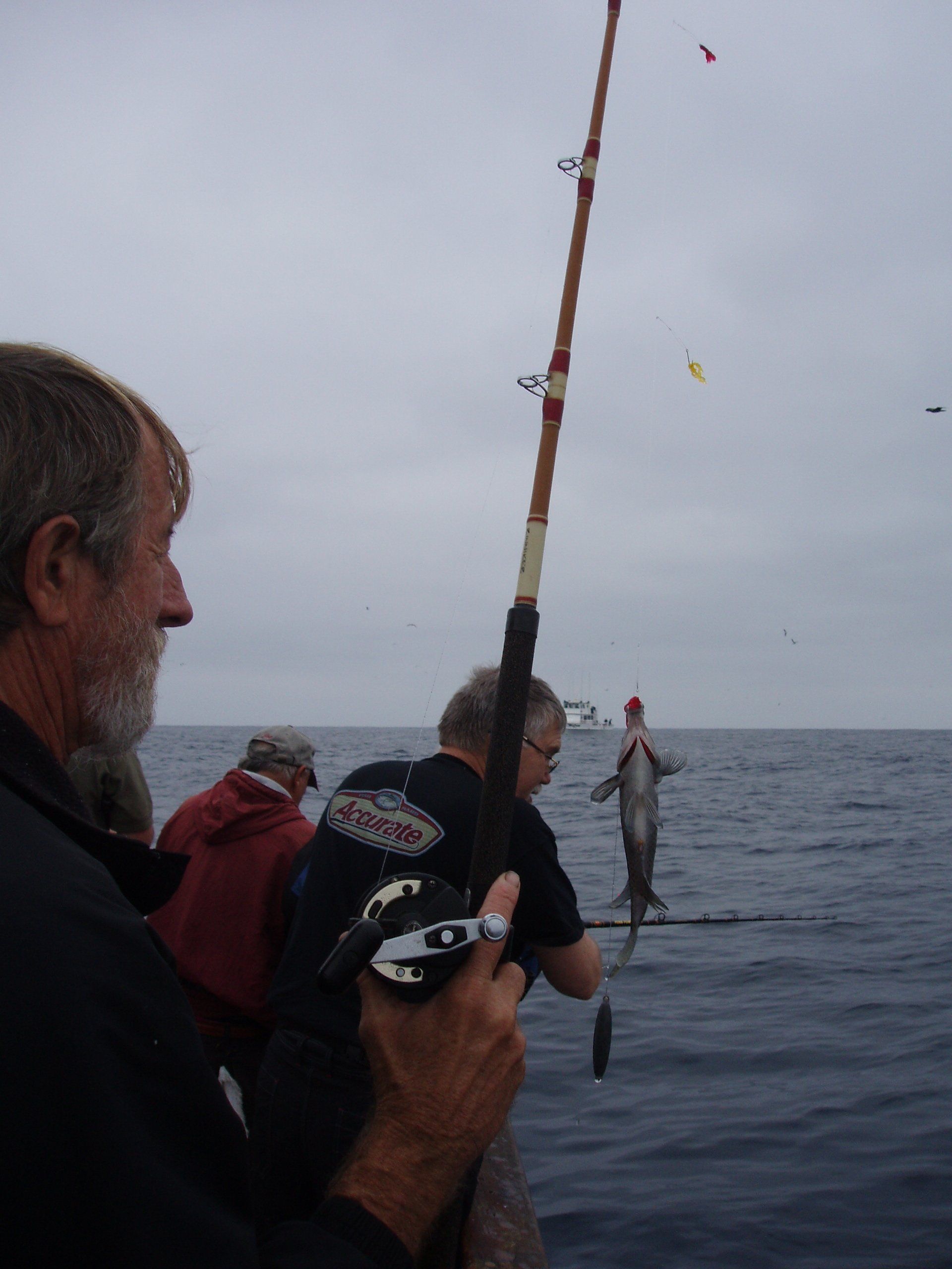 Trip #7: Boat: Thunderbird 2.5 day Departs: Tuesday, September 16th Fishing: September 17th, 18th Returns: September 19th am Thunderbird Crew: Jeff Markland- Captain Steve Raby- 2nd Captain Carmelo in the Galley Jose & Nate on deck The fishing schedule for 2025 has two 2 1/2 day trips and Trip #7 was the second one. Historically the 2 1/2 dayers fill quickly at the Annual Sign-Up Meeting. This was not the case this year as this trip only filled to about half during the Lottery and the rest of the spots were taken by guests. Here are the members who were on the trip: Gary Thompson, Steve Morgan, Mike Barton, Alex Mesko, Mike Higa, Bill Parks, John Lenker, Steve Lenker, Kyle Shimigawa, and Luke Burson (trip scribe). That is 10 members and the other 13 were all guests. The Club owns the following a big thank you for committing guests to this trip because without them this trip would have put a financial burden on the Club of $8,125. And the Club simply does not have those funds so the trip would have been cancelled. A special thank you to Mike Barton with 5 guests, Steve Lenker with 3, Mike Higa with 2, guests, Steve Morgan with 1 guest, Bryan Upcraft with 1 guest, and Luke Burson with 1 guest. And all the guests fit in perfectly and made it a good group to fish, sleep, and eat with for 2 1/2 days. As the trip approached Gary sent out information a week before with information about the trip. At that point the weather looked good and the fish counts were encouraging. As the trip got closer Gary sent out more information with the weather holding plus the Thunderbird getting limits on their weekend 2 1/2 dayer. All were feeling pretty optimistic about two things that had been missing on previous trips……nice weather and good fishing. On the day of departure, the usual members arrived early to ensure that they would board first to secure the tackle spots that are important to them, Others started to drift in throughout the afternoon. All were challenged with parking because of the local Wednesday street sweeping. Some were luckier than others but everyone found a parking spot. And then to our surprise the Thunderbird arrived close to 4 PM and it was obvious why…..very good fishing. To be specific they had back-to-back multi-day trips with limits of BF. And the buzz for all on the dock was pretty strong. They caught the fish at the Cortez, some at night near SCI but most during the day on bait. We asked about the bait and the group did not have good things to say. We quickly put two and two together that the fishing must be pretty good to do that well with poor bait. And another important item……NO STINKING FULL MOON! Jeff indicated we were headed back to Cortez and to save a little time we were going to take the direct course line around the east end of SCI. We’re expecting a flat smooth ride, we quickly learn that our course line had us in the rolley trough. It turned out to be anything but smooth. Our crew for the 2 1/2 trip was Jeff as our Captain, Steve as the 2nd Captain, Carmelo in the galley with Jose and Nat on deck. We have fished with them many times before so we knew we were in good hands for the 2 1/2 days. We stopped to load bait and to our surprise, that bait looked pretty good. The size could have been bigger as it was all medium to small-medium baits but it looked good. That even increased the anticipation of what was to come. As it turned out about 60% turned red while the rest was good bait. For the next two days, you really had to pick through what was in the hand wells to find the good ones. As we rolled into the “Bank” there was a pretty good electrical show to the west from about 3 AM to 5 AM plus some slight rain. And we could see some boats in the distance. We would learn that we would not be alone at Cortez Bank but because of the way the fish were spread out it would not make a difference. Jeff got the anchor down close to the position that they had success on the last trip and it took a little time for the fish to find us……and they did. It was a slow pick for the next 4 or 5 hours. Occasionally we would have 2 for 3 going but most of the time it was one at a time. The conditions were perfect, a strong current in the right direction and some breeze to keep the boat a little crossways to the current. Jeff said the conditions were perfect. As the morning continued there were two ways to get a bite: 1) hot bait close to the boat, or 2) long soak behind the boat. Although detailed records were not kept it seems that the hot baits close to the boat got 4 to 5 times the bites compared to the long soak. This getting bit close to the boat with hot baits was shared with all as it was working great for a few: light line (20#), small hooks (#6 or #8), the best bait in the well, and then give that bait 30 seconds, and if no bite wind in and do it again. And if the bait did not “swim” then cut your losses and wind in to do it again. Some fished that way and were rewarded, others continue to soak their baits. It was a little frustrating that so many were locked into soaking baits when the other method was working so well. It just must be too much work to change baits every 30 seconds and it is easier to soak them behind the boat. The few anglers who changed baits quickly did pretty very well while others did not……that’s fishing. The fish seem to leave us around 2 PM so Jeff decided to go looking in the direction of SCI. By heading back toward SCI we would have a shot at bigger fish at night. We ran all the way back to within 5 miles of SCI and never saw anything on the electronics. When it got dark the effort changed to working the area where the BF had been at night but after about 5 hours of looking without a single mark on the electronics Jeff decided to head back to Cortez to fish the same location we were in that morning. Carmelo prepared an excellent dinner of marinated chicken, basmati rice, and a Greek-style salad. And of course, it was finished 