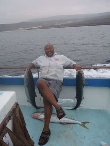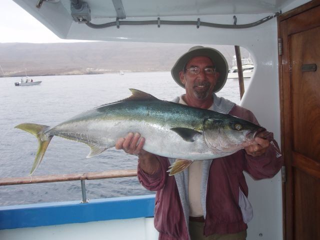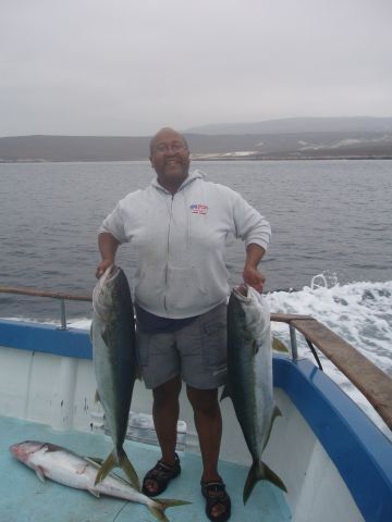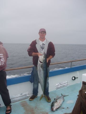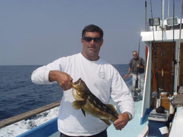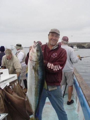 Trip #6: Boat: Thunderbird 1.5 day Departs: Firday September 5th Fishing: September 5th - September 6th Returns: September 6th, AM Thunderbird Crew: Jeff Markland- Captain Steve Raby- 2nd Captain Jose & Nate on deck Carmelo in the Galley To everyone’s surprise the first to arrive on Thursday to get head of the line privileges was of all people Tony Beall! Damn! As the afternoon wore on into the evening, the remainer of the group made their way to the dock. The Thunderbird rolled in around 6:30pm and it was clear, fishing had been thoroughly trashed due to poor weather offshore. They fished San Clemente Island for two days for a handful of yellowtail, but good calico bass fishing. After I wandered down to the boat, and speaking with Jeff, confirmed the weather was forecast to be poor where the tuna had been, and they disappeared, and we would be relegated to fishing “an island or two”. So what did that mean? Well a very reliable squid light boat source had reported to Jeff that day that he had seen a large volume of yellowtail at Santa Barbara Island that same day. So Jeff said we will head there first and check it out, then scour the previous tuna grounds west of San Clemente Island later as we head to San Clemente Island to fish for bass and hopefully some yellowtail there. So off we went. We already had a few scoops of squid on the boat and the sardines we got were very good. Travel out was rather sporty as we had wind and swell and were traveling at a poor angle due to the course line required. 60 miles of shit weather does not make for sleeping very well. We arrived at Santa Barbara Island around 4:10am on the squid grounds and fished a couple areas in the front and back of the island for nothing. Screaming current- Dropper loop needed 16 oz to hold bottom in only 100 feet of water. There was no sign of the yellowtail from the day before. It figures. Around 8:45am Jeff said he had enough, pulled the plug and we headed to the next island via the tuna grounds. An interesting note was the wind had backed off and by 9:00am, it was actually pretty pleasant on the water. Spent the next several hours traveling and scouting the tuna grounds where the fish had been. Stopped on one spot on the sonar and had some fish under the boat for one missed bite on Luke’s drop shot rig. Arrived at the “9” on the west end of San Clemente Island to start. Heavy current and every sea lion at the island were there. Saw a couple Yellowtail boils but no bites. Moved to the north kelp at Northwest Harbor and the bass bit well for 20 minutes or so until the current backed off and the kelp floated. After that fished a number of spots “spot hopping” down the front side the rest of the day, a couple good bass bites and some pick bites, but no yellowtail to be found. A couple boils here and there but no volume or any biters. And all the sea lions we wanted. We were the only sportfishing boat there so we couldn’t “share the wealth” with anyone. The wind had come up again around mid-afternoon and made things pretty difficult as it was wind against the current all afternoon. Ended up in Pyramid Cove and fished in there until it was time to head home. Carmelo put out a very good dinner of tri-tip, potatoes, asparagus and salad, topped off with our usual Klondike Bar desert. Left for home at 10:00pm and another “sporty”, no sleep ride until inside Catalina. Arrived at around 4:15am, everyone unloaded and that was it! Trip total-NO “gamefish”, near boat limits of calico bass, some kept and most released, 1 really micro bonito, 1 barracuda, TWO Blue Perch! Also some miscellaneous whitefish and sheephead mixed in. Needless to say the old fixing axiom does apply to this trip: “You should have been here yesterday, wait until tomorrow” JP & Patch winner- Bill Parks- 4.5 lb Calico Bass One item that I find encouraging is the calico bass fishing at the island. The percentage of legal (14 inch) and above fish is way up from the past, and although the bite is not fully consistent, if you work at it, you can get some decent ones. Also, it seems the quantity of calicos is increasing as compared to the last couple of years. I am convinced that the 14” size limit which allows the spawners to grow enough to spawn may actually be contributing. Time will tell. Well that’s it! Next up, 2.5 day trip leaving Tuesday 9/16 returning Friday early morning 9/19. Your Scribe (Again)- Gary Thompson