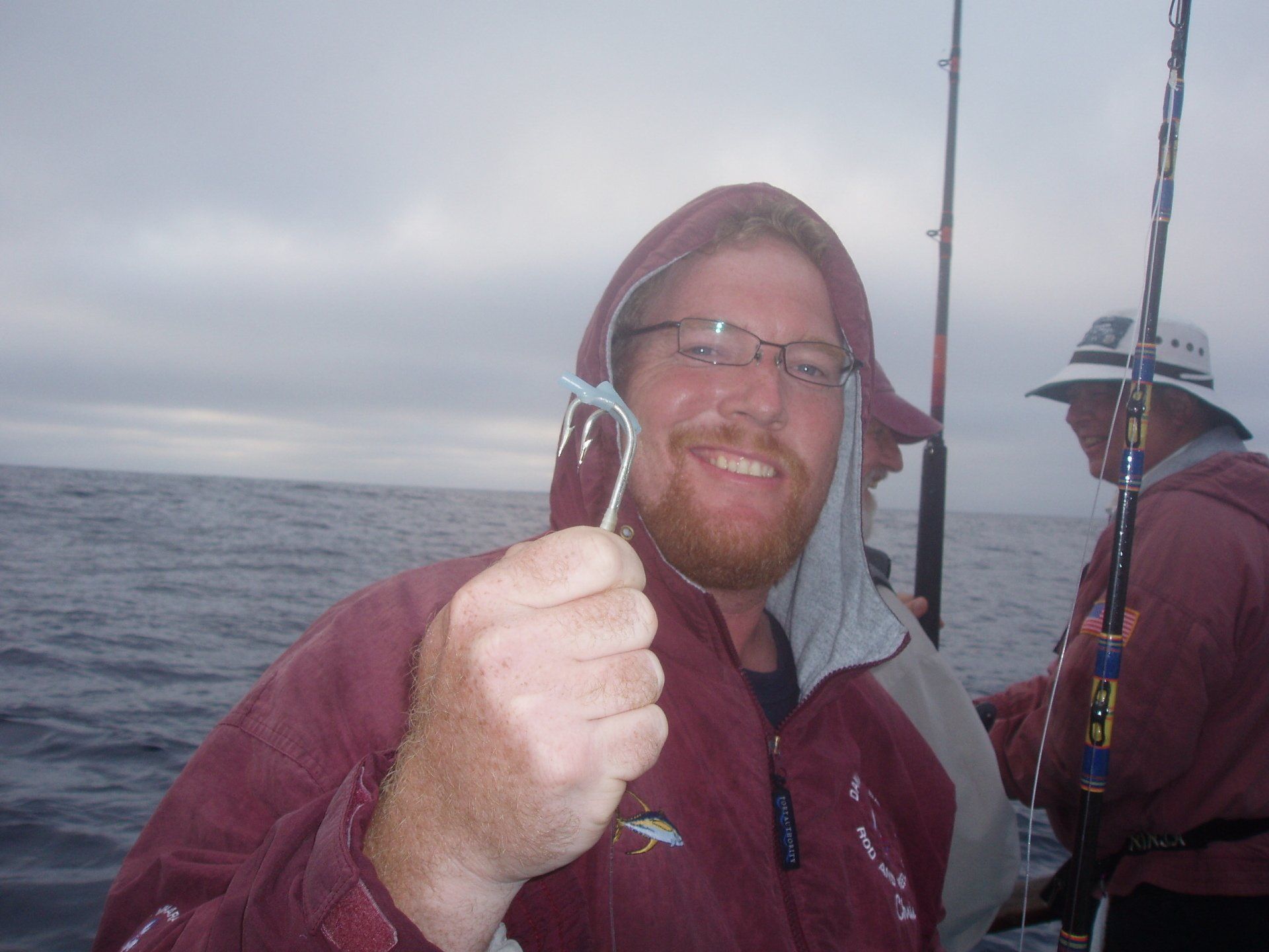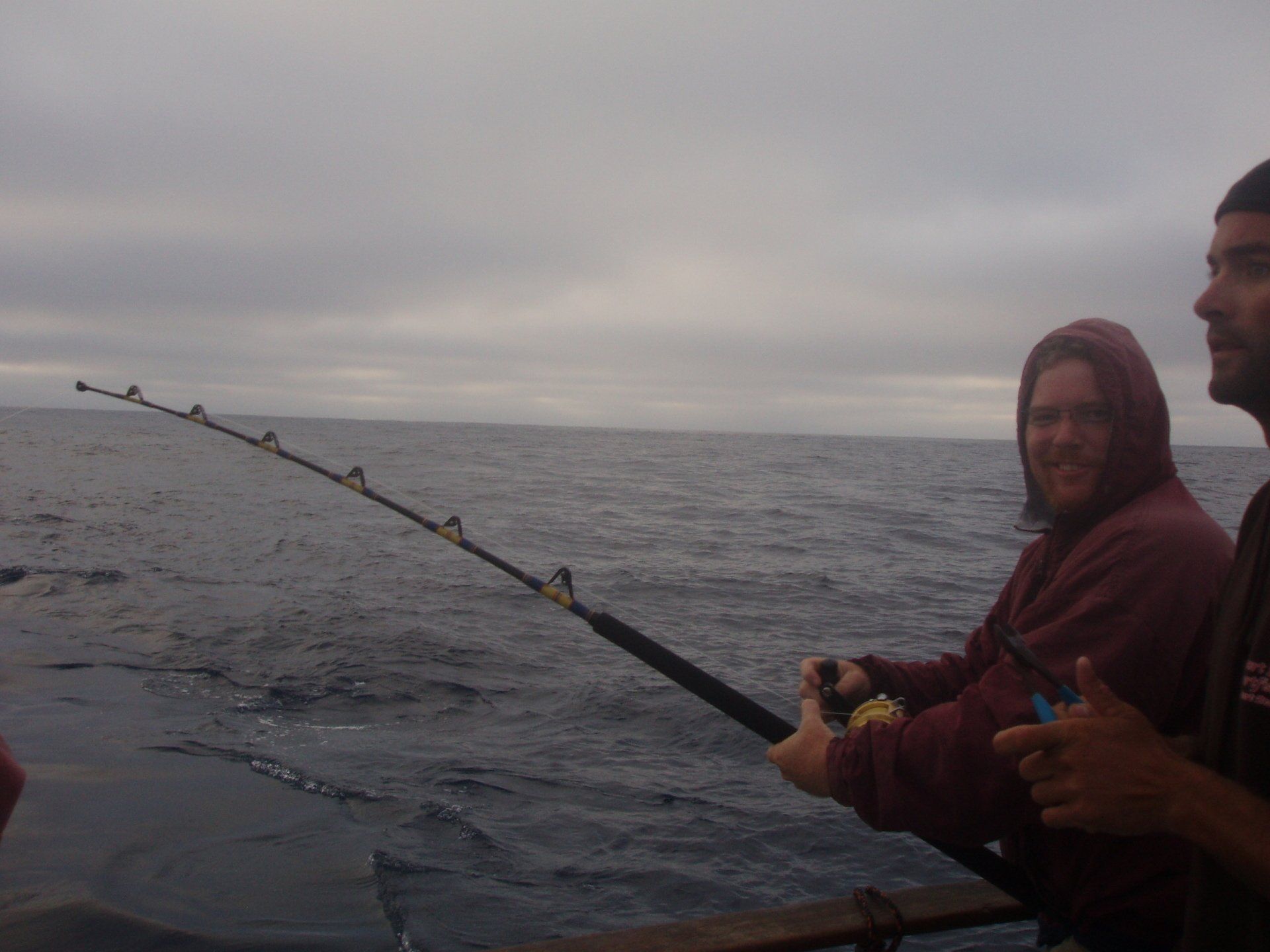 Trip #5: Boat: Thunderbird 2.5 day Departs: Tuesday August 19th Fishing: August 20th, 21th Returns: August 22th am Thunderbird Crew: Jeff Markland- Captain Steve Raby- 2nd Captain Jose, Jared & Nate on deck Goofy in his usual form in the Galley The usual suspects, newer club members and a slew of guests began gathering for the upcoming 2.5-day venture on board the Thunderbird on Tuesday afternoon/evening, a lot of discussion occurred around where will we fish, what is our bait, are we going to fish for tuna, and more importantly, the weather. Forecast was for pretty breezy on the outer banks and tuna grounds with somewhat better at the island. Thursday weather looked much improved everywhere. As it turned out, the weather turned out nice the first day, and even nicer the second day. Also the good news was we would have sardines for bait. When the boat returned from the fuel dock around 7:30, I wandered down to the boat and sat with Jeff and discussed our “options”. There was about 2 scoops of live squid on the boat and the squid at San Clemente Island was available but by jigging. Also, the yellowtail fishing was hit or miss at best early in the cove, and then really nothing to catch the rest of the day unless the bass decided to bite. The tuna grounds were in range to do some night fishing between the days, and daytime fishing was producing smaller fish. The Tanner Bank had the 10-15 lb variety which was spotty, and inside toward SCI were bigger 30-35lb variety with some larger mixed in. Getting bites though would be hard. The Cortez Bank coughed up 100 yellowtail for Jeff a few days before. There was also some white sea bass caught at San Nicholas Island so that was an option. Soooo, one more time, what to do. Jeff decided he will decide when we leave the bait receiver as I said give it your best shot. The final decision, with the weather forecast improving, we would head to the Cortez Bank since there had been some yellowtail there a few days before. And off we went. Travel out was not too bad. Day 1- Arrived at the Cortez Bank around 7:45 am, fished a couple areas for nothing except some of the jumbo bonito, large mackerel and a few bottom dwellers. There was no sign of yellowtail. Where the F**k did they go? Around 10:00am, Jeff pulled the plug and we headed back inside to the tuna grounds, about 30 miles away. Weather was getting much nicer, We ended up picking at the BFT not long after we arrived in the area around 2:00pm and joined “the fleet”. We had one decent plunker drift for 16 BFT, and scratched up 9 more at sundown. As dark fell, we headed into the island to try for the early morning yellowtail fishing at the Lost Point area. Day 1 fish count- 25 BFT, 4 Bonito kept, a few misc bottom dwellers kept JP winner- Bronson Noggle (Cory Steinwand Guest)- 30 plus lb BFT, Patch winner Cory Steinwand- 30 plus lb BFT (it was very close) Day 2- had a few yellowtail bites in the dark and grey light at Lost Point, all nice fish. Headed out after grey light for yesterday’s tuna grounds. Flat calm weather. Worked the area with “the fleet” for a couple of hours and covering a lot of water. Jeff finally pulled the plug and decided to take a gamble and head to the Tanner Bank since there were tuna there a few days before. And the gamble certainly paid off. We were greeted with boiling fish in the chum circle when we arrived, boiling fish on the anchor and steady fishing on the 10-15 lb BFT the rest of the afternoon. We fished a couple deep spots for decent reds and other stuff, one nice ling cod and headed back to the area west of SCI toward San Nicholas Island for some night fishing. We had several stops on spots of fish, and got a few anywhere from 30 plus lbs up to 100lbs. Around midnight, we headed home. We were able to fish that long because by chance, the boat was not scheduled to run a ¾ day trip when we got in, so we got to fish longer. Arrived at the dock around 7:20am, unloaded and that was it. Day 2 fish count- 6 Yellowtail, 40 BFT, 1 Halibut, 2 Barracuda, 100 plus mixed Reds and Rockfish, 1 Ling Cod JP & Patch winner- Cory Steinwand- 102 lb BFT Trip total- 65 BFT, 6 Yellowtail, 1 Halibut, 4 Bonito, 100 plus mixed Reds/Rockfish, 1 Ling Cod The weather for the entire trip was good. Temperature cool both days but very nice. Very little wind to flat calm the entire 2 days. One thing that was troubling was the amount of casualties on these smaller tuna. Seems like most everyone liberated one or two, or more. (We won’t mention my luck!). Small hooks and light line with too much pressure and these little guys were hot! All in all a good time had by all and a very good group of guests on this trip as well. That’s it! Your Scribe- Gary Thompson