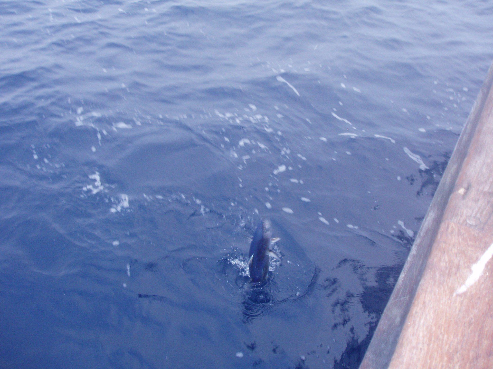 Trip #6: Boat: Thunderbird 1.5 day Departs: Firday September 5th Fishing: September 5th - September 6th Returns: September 6th, AM Thunderbird Crew: Jeff Markland- Captain Steve Raby- 2nd Captain Jose & Nate on deck Carmelo in the Galley To everyone’s surprise the first to arrive on Thursday to get head of the line privileges was of all people Tony Beall! Damn! As the afternoon wore on into the evening, the remainer of the group made their way to the dock. The Thunderbird rolled in around 6:30pm and it was clear, fishing had been thoroughly trashed due to poor weather offshore. They fished San Clemente Island for two days for a handful of yellowtail, but good calico bass fishing. After I wandered down to the boat, and speaking with Jeff, confirmed the weather was forecast to be poor where the tuna had been, and they disappeared, and we would be relegated to fishing “an island or two”. So what did that mean? Well a very reliable squid light boat source had reported to Jeff that day that he had seen a large volume of yellowtail at Santa Barbara Island that same day. So Jeff said we will head there first and check it out, then scour the previous tuna grounds west of San Clemente Island later as we head to San Clemente Island to fish for bass and hopefully some yellowtail there. So off we went. We already had a few scoops of squid on the boat and the sardines we got were very good. Travel out was rather sporty as we had wind and swell and were traveling at a poor angle due to the course line required. 60 miles of shit weather does not make for sleeping very well. We arrived at Santa Barbara Island around 4:10am on the squid grounds and fished a couple areas in the front and back of the island for nothing. Screaming current- Dropper loop needed 16 oz to hold bottom in only 100 feet of water. There was no sign of the yellowtail from the day before. It figures. Around 8:45am Jeff said he had enough, pulled the plug and we headed to the next island via the tuna grounds. An interesting note was the wind had backed off and by 9:00am, it was actually pretty pleasant on the water. Spent the next several hours traveling and scouting the tuna grounds where the fish had been. Stopped on one spot on the sonar and had some fish under the boat for one missed bite on Luke’s drop shot rig. Arrived at the “9” on the west end of San Clemente Island to start. Heavy current and every sea lion at the island were there. Saw a couple Yellowtail boils but no bites. Moved to the north kelp at Northwest Harbor and the bass bit well for 20 minutes or so until the current backed off and the kelp floated. After that fished a number of spots “spot hopping” down the front side the rest of the day, a couple good bass bites and some pick bites, but no yellowtail to be found. A couple boils here and there but no volume or any biters. And all the sea lions we wanted. We were the only sportfishing boat there so we couldn’t “share the wealth” with anyone. The wind had come up again around mid-afternoon and made things pretty difficult as it was wind against the current all afternoon. Ended up in Pyramid Cove and fished in there until it was time to head home. Carmelo put out a very good dinner of tri-tip, potatoes, asparagus and salad, topped off with our usual Klondike Bar desert. Left for home at 10:00pm and another “sporty”, no sleep ride until inside Catalina. Arrived at around 4:15am, everyone unloaded and that was it! Trip total-NO “gamefish”, near boat limits of calico bass, some kept and most released, 1 really micro bonito, 1 barracuda, TWO Blue Perch! Also some miscellaneous whitefish and sheephead mixed in. Needless to say the old fixing axiom does apply to this trip: “You should have been here yesterday, wait until tomorrow” JP & Patch winner- Bill Parks- 4.5 lb Calico Bass One item that I find encouraging is the calico bass fishing at the island. The percentage of legal (14 inch) and above fish is way up from the past, and although the bite is not fully consistent, if you work at it, you can get some decent ones. Also, it seems the quantity of calicos is increasing as compared to the last couple of years. I am convinced that the 14” size limit which allows the spawners to grow enough to spawn may actually be contributing. Time will tell. Well that’s it! Next up, 2.5 day trip leaving Tuesday 9/16 returning Friday early morning 9/19. Your Scribe (Again)- Gary Thompson