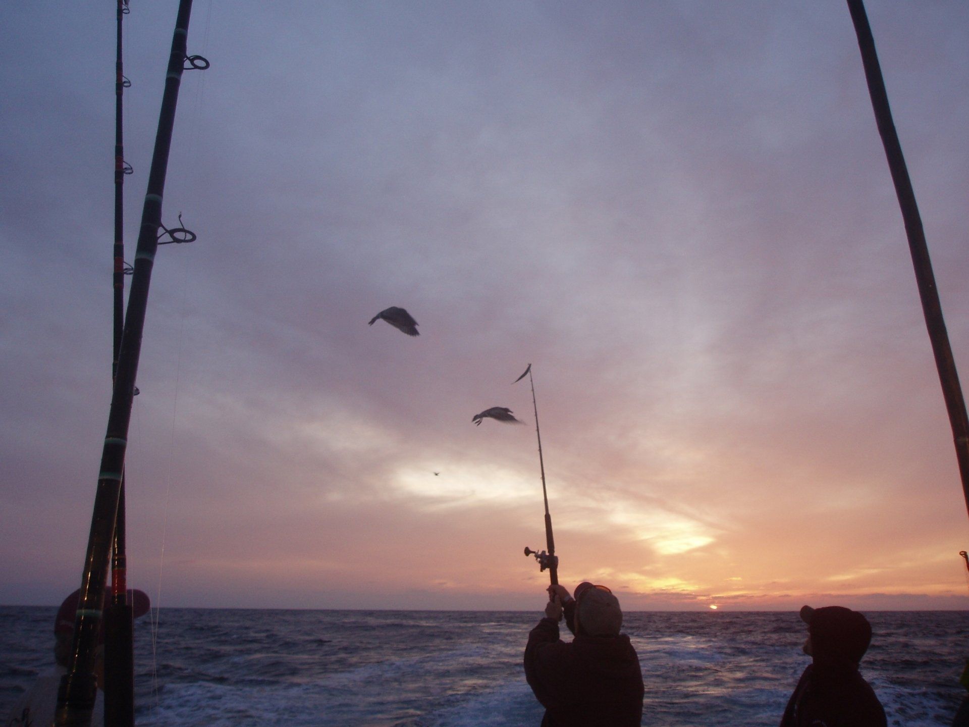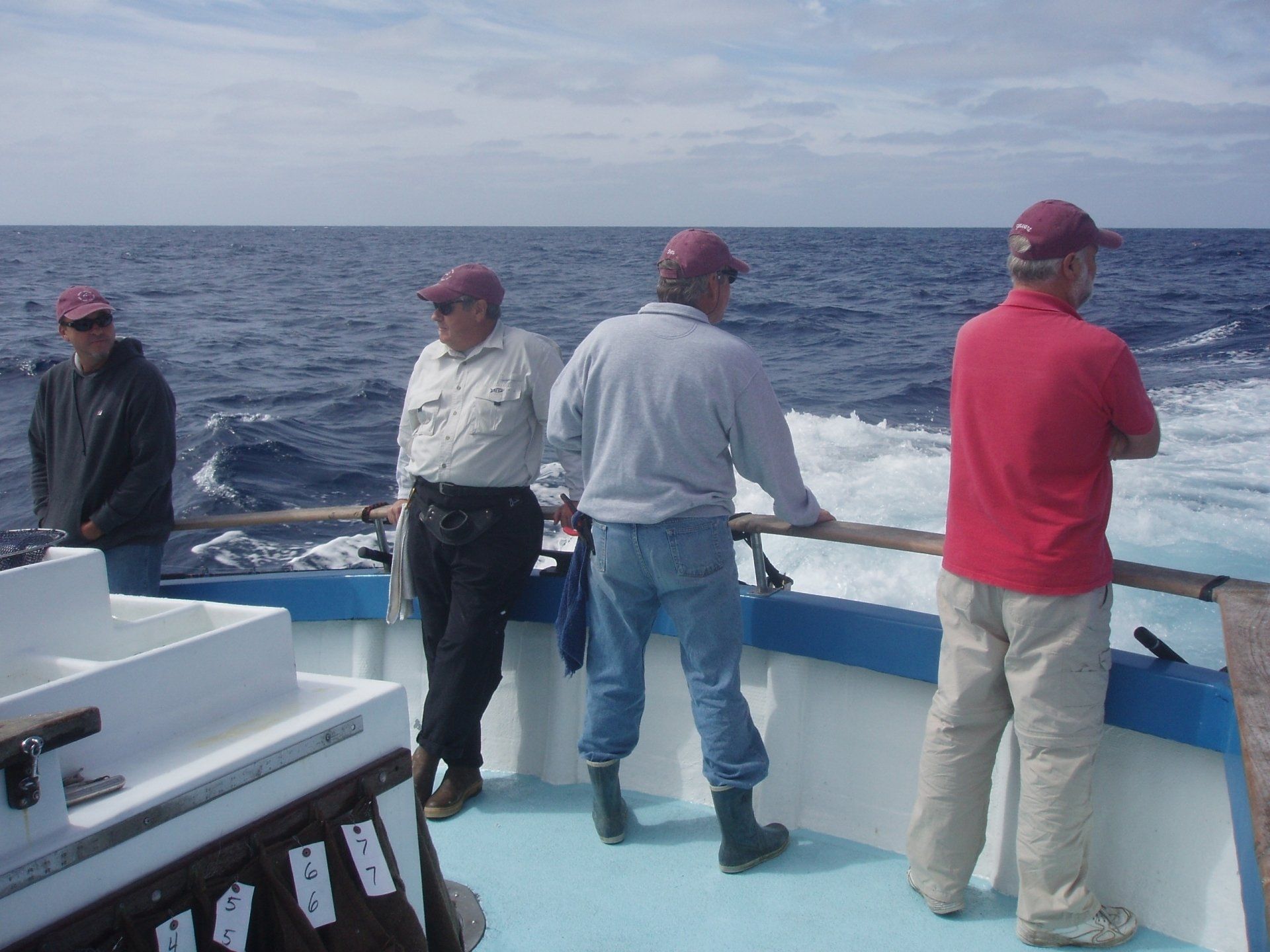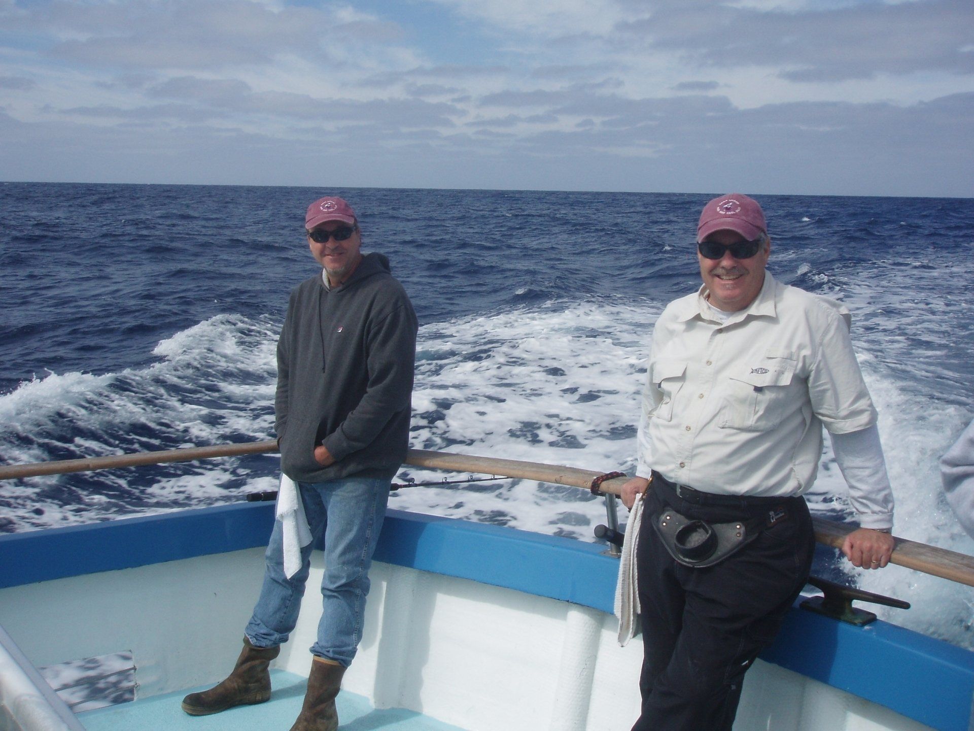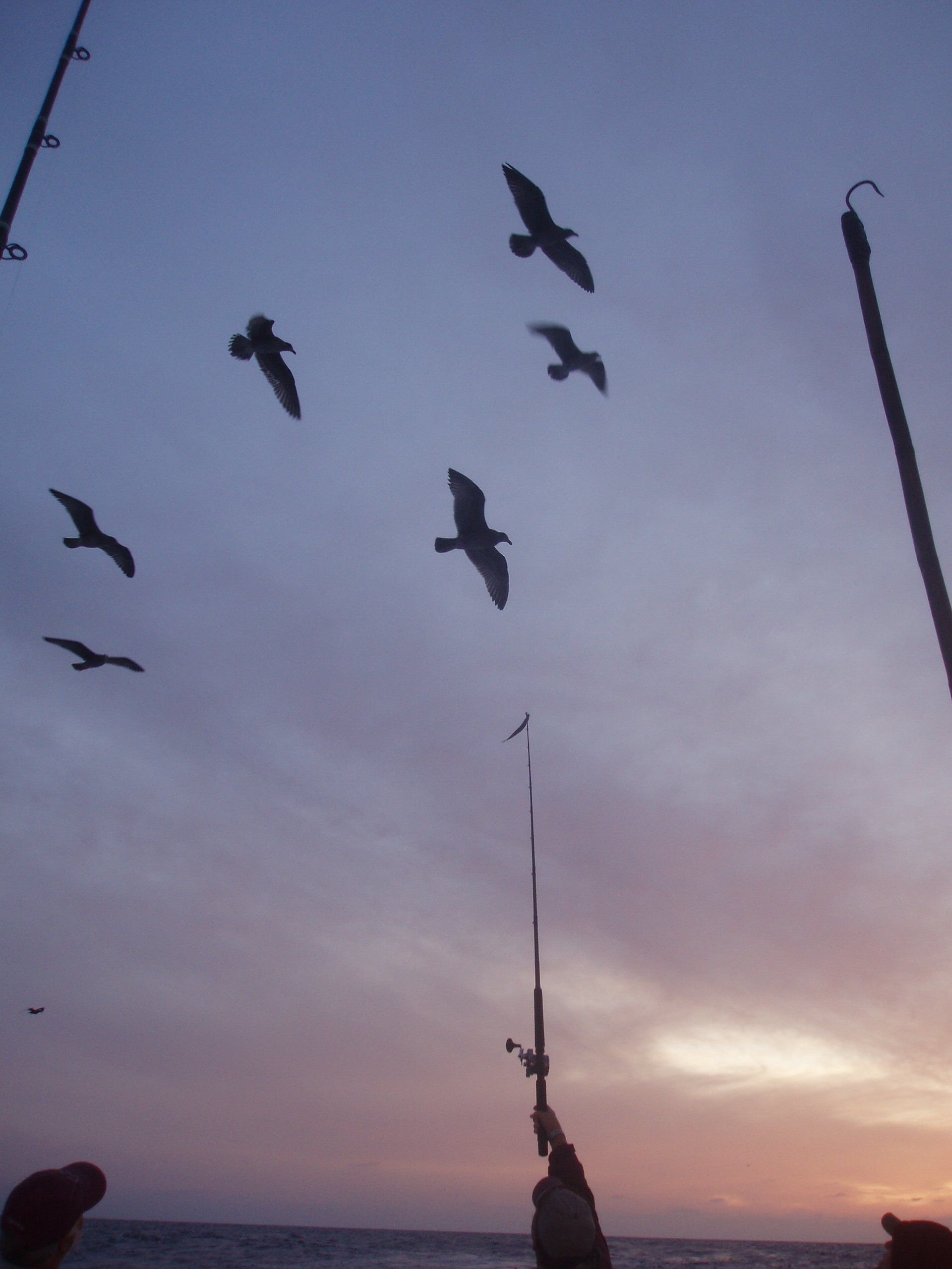 Trip #8: Boat: Thunderbird 1.5 day Departs: Thursday, October 2th Fishing: October 3th, 4th Returns: October 4th pm Thunderbird Crew: Capt. Jeff Capt. Chris Jose Nate Goofy Cast of Characters: Bill Parks Steve Morgan Riley Dyer Jim Bertella Justin Becker Jacob Richards Luke Burson Paul Morgan Mike Allen (Scribe) Patrick Thunyakij Bruce Granse Kevon Kong Michael Harris Ryan Burson Oscar Ochoa Ed Chutney Jeff Allen Andrew Ron Shrout Murphy Parks Romeo Ochoa James Harris Ozzie Baktiari Arriving for a trip in the month of October at Newport Landing is a far easier experience then one would have in the summer months of June – September. The dread of driving through the neighborhood in hopes of an empty space large enough to accommodate the larger trucks that many of the club members own seems to dissipate as the offerings are far more plentiful. While the welcomed views of summer also tend to be less abundant, the ensemble of club members arrived with plenty of time to catch-up on some conversations and enjoy a beverage or two.