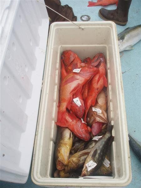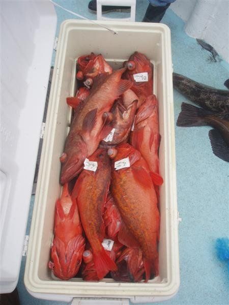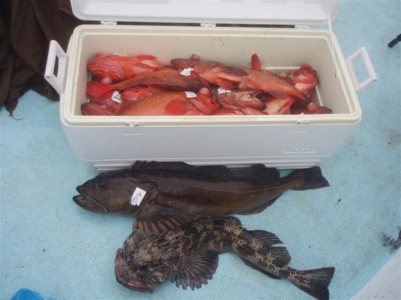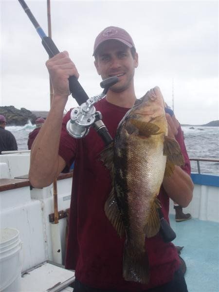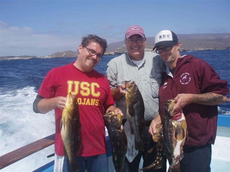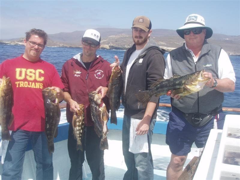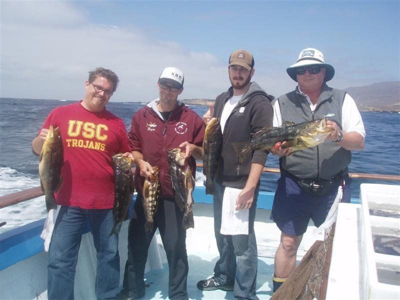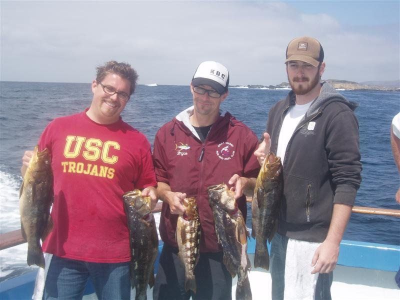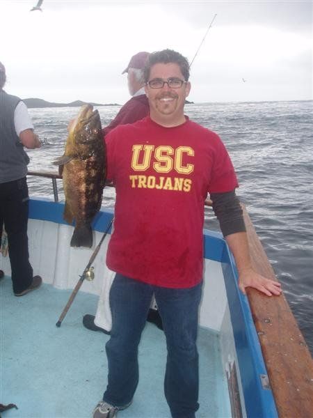 Trip #6: Boat: Thunderbird 1.5 day Departs: Firday September 5th Fishing: September 5th - September 6th Returns: September 6th, AM Thunderbird Crew: Jeff Markland- Captain Steve Raby- 2nd Captain Jose & Nate on deck Carmelo in the Galley To everyone’s surprise the first to arrive on Thursday to get head of the line privileges was of all people Tony Beall! Damn! As the afternoon wore on into the evening, the remainer of the group made their way to the dock. The Thunderbird rolled in around 6:30pm and it was clear, fishing had been thoroughly trashed due to poor weather offshore. They fished San Clemente Island for two days for a handful of yellowtail, but good calico bass fishing. After I wandered down to the boat, and speaking with Jeff, confirmed the weather was forecast to be poor where the tuna had been, and they disappeared, and we would be relegated to fishing “an island or two”. So what did that mean? Well a very reliable squid light boat source had reported to Jeff that day that he had seen a large volume of yellowtail at Santa Barbara Island that same day. So Jeff said we will head there first and check it out, then scour the previous tuna grounds west of San Clemente Island later as we head to San Clemente Island to fish for bass and hopefully some yellowtail there. So off we went. We already had a few scoops of squid on the boat and the sardines we got were very good. Travel out was rather sporty as we had wind and swell and were traveling at a poor angle due to the course line required. 60 miles of shit weather does not make for sleeping very well. We arrived at Santa Barbara Island around 4:10am on the squid grounds and fished a couple areas in the front and back of the island for nothing. Screaming current- Dropper loop needed 16 oz to hold bottom in only 100 feet of water. There was no sign of the yellowtail from the day before. It figures. Around 8:45am Jeff said he had enough, pulled the plug and we headed to the next island via the tuna grounds. An interesting note was the wind had backed off and by 9:00am, it was actually pretty pleasant on the water. Spent the next several hours traveling and scouting the tuna grounds where the fish had been. Stopped on one spot on the sonar and had some fish under the boat for one missed bite on Luke’s drop shot rig. Arrived at the “9” on the west end of San Clemente Island to start. Heavy current and every sea lion at the island were there. Saw a couple Yellowtail boils but no bites. Moved to the north kelp at Northwest Harbor and the bass bit well for 20 minutes or so until the current backed off and the kelp floated. After that fished a number of spots “spot hopping” down the front side the rest of the day, a couple good bass bites and some pick bites, but no yellowtail to be found. A couple boils here and there but no volume or any biters. And all the sea lions we wanted. We were the only sportfishing boat there so we couldn’t “share the wealth” with anyone. The wind had come up again around mid-afternoon and made things pretty difficult as it was wind against the current all afternoon. Ended up in Pyramid Cove and fished in there until it was time to head home. Carmelo put out a very good dinner of tri-tip, potatoes, asparagus and salad, topped off with our usual Klondike Bar desert. Left for home at 10:00pm and another “sporty”, no sleep ride until inside Catalina. Arrived at around 4:15am, everyone unloaded and that was it! Trip total-NO “gamefish”, near boat limits of calico bass, some kept and most released, 1 really micro bonito, 1 barracuda, TWO Blue Perch! Also some miscellaneous whitefish and sheephead mixed in. Needless to say the old fixing axiom does apply to this trip: “You should have been here yesterday, wait until tomorrow” JP & Patch winner- Bill Parks- 4.5 lb Calico Bass One item that I find encouraging is the calico bass fishing at the island. The percentage of legal (14 inch) and above fish is way up from the past, and although the bite is not fully consistent, if you work at it, you can get some decent ones. Also, it seems the quantity of calicos is increasing as compared to the last couple of years. I am convinced that the 14” size limit which allows the spawners to grow enough to spawn may actually be contributing. Time will tell. Well that’s it! Next up, 2.5 day trip leaving Tuesday 9/16 returning Friday early morning 9/19. Your Scribe (Again)- Gary Thompson