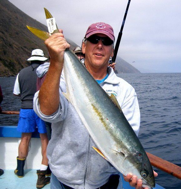 Trip #4: Boat: Thunderbird 2 day Departs: Thursday August 7th Fishing: August 8th, 9th Returns: August 9th pm Trip 4 started as usual with people arriving at Newport Landing at all hours of the day with anticipation of fishing. The preliminary reports from Gary Thompson were all too familiar to what we’ve seen this year. Bait was going to be an issue. And last but not least, was the fish seemed to pop up one day and then disappear the next. Nevertheless, everyone was ready to go. Friday morning saw us anchored at the usual cove off SCI. Weather was OK; fishable, but not a lot of fish. But the ones we caught were quality yellowtail and white sea bass. The sea lions provided ample entertainment …err I mean frustration. We hopped around to a few spots picking up the occasional calico but not much. Day 1 jackpot went to Alex Arthur (Justin Becker’s Guest) with the patch going to Nick Burson for some chunky YT’s Day 2 started much as it did Day 1 but the weather was worse than Day 1. We looked here and there with only 3 yellowtail to show for our efforts. Eventually, the Thunderbird turned towards offshore waters to try our luck at some bluefin. Unfortunately, the fish didn’t get the memo and we saw neither sign or had any bites. Mr, “Hey that’s my fish” Tom Hill was the lucky jackpot and patch winner for Day 2 with a 15# YT. So, there you have it, not a, “Hey you missed a great trip” kind ‘a trip but per usual, the members of our club all seemed to enjoy doing what we do. It’s not always about the fish; it’s about the people and the experience. LOL! Who am I kidding…we all want more fish. Until next time, step to the right/left and take up your slack.