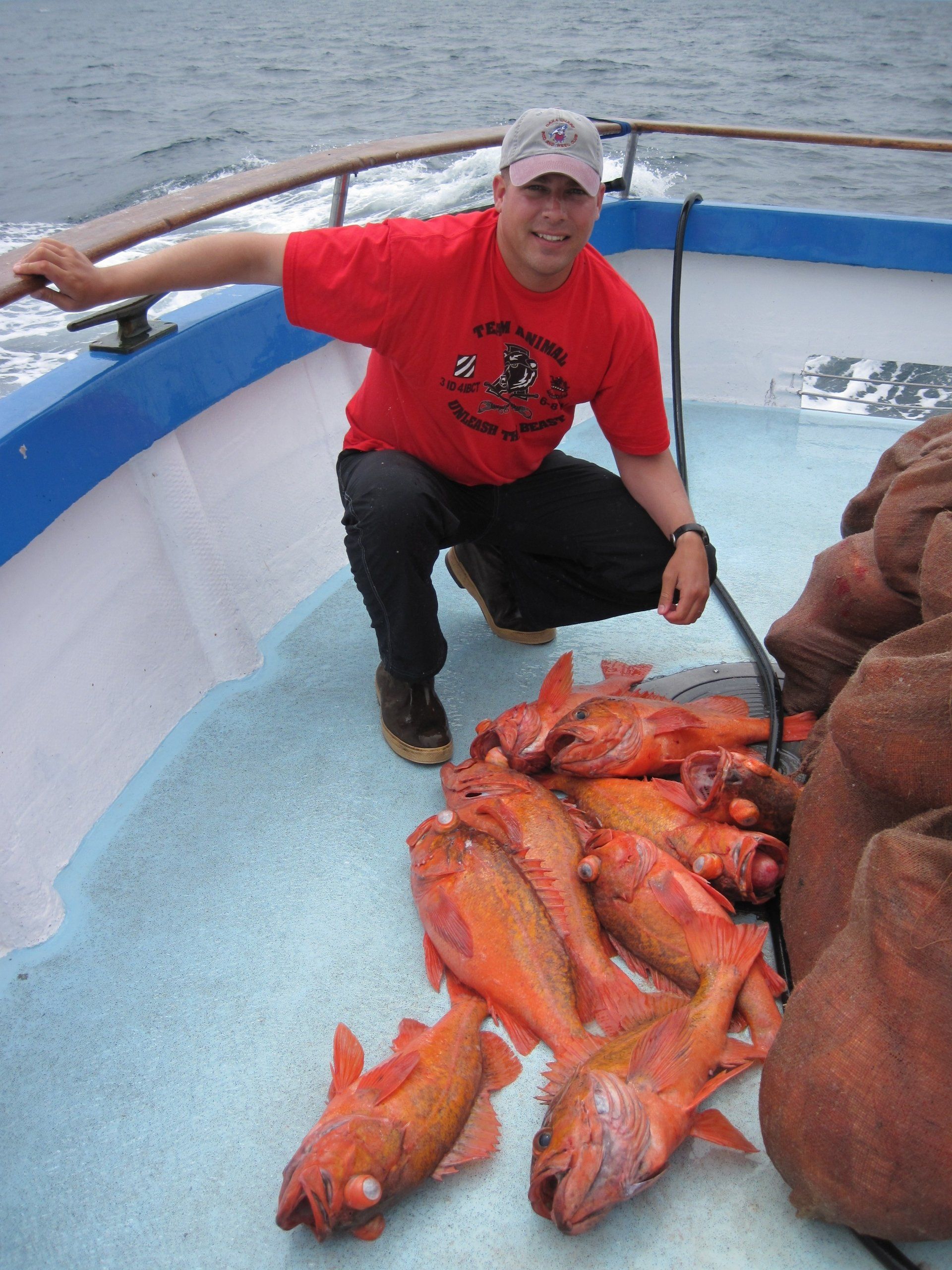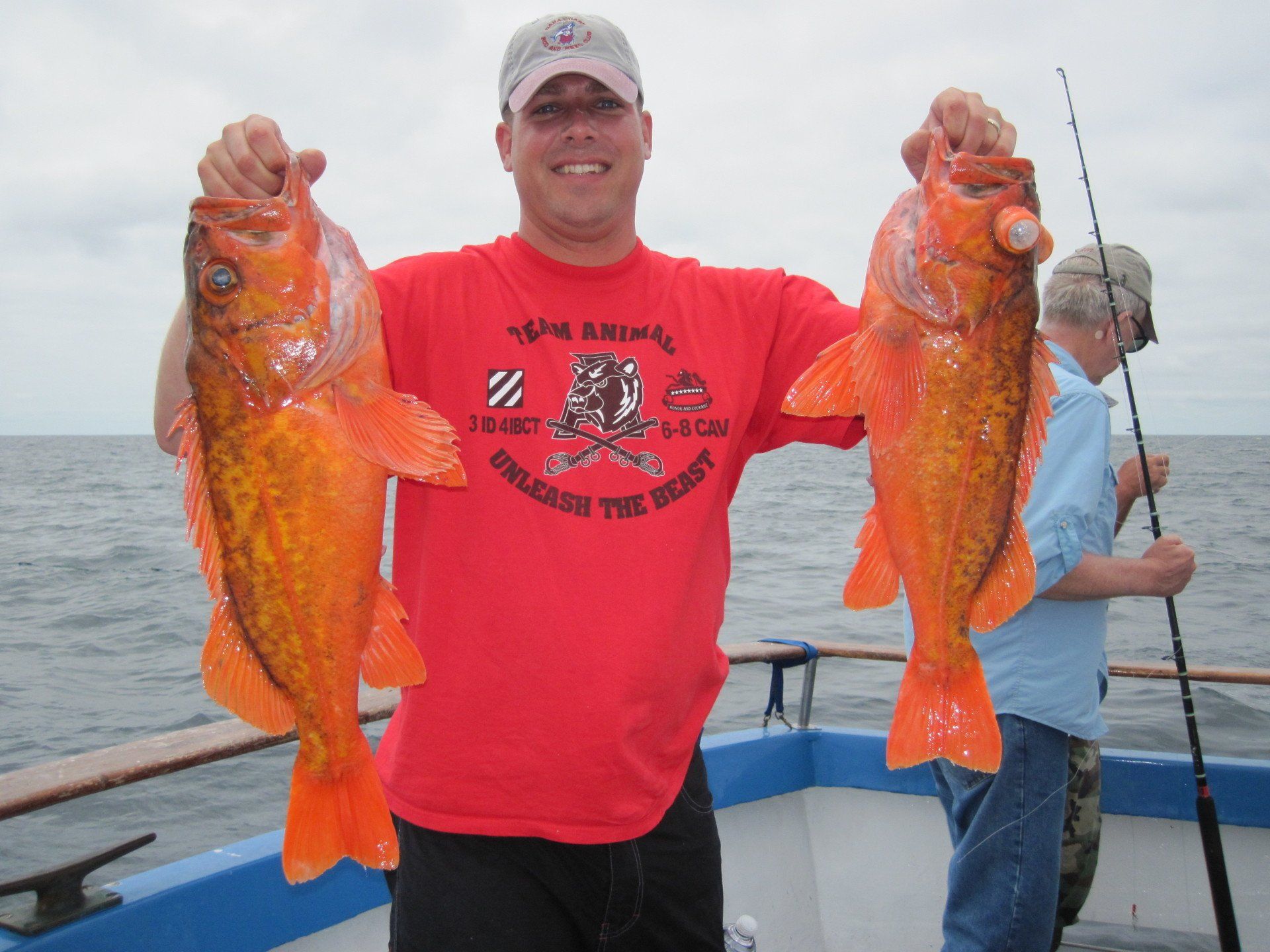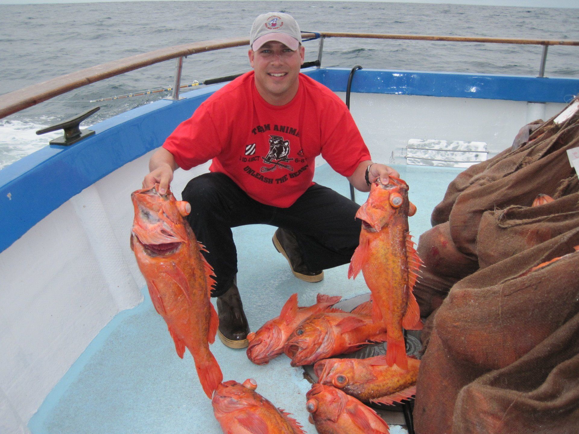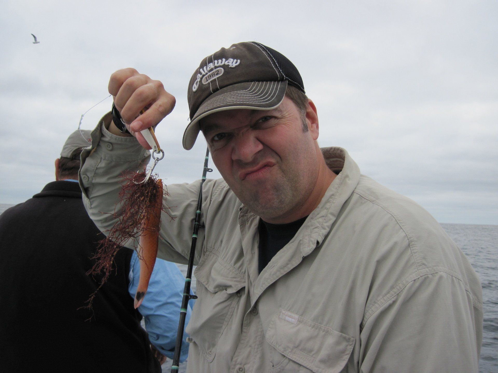Trip #6: Boat: Thunderbird 1.5 day Departs: Firday September 5th Fishing: September 5th - September 6th Returns: September 6th, AM Thunderbird Crew: Jeff Markland- Captain Steve Raby- 2nd Captain Jose & Nate on deck Carmelo in the Galley To everyone’s surprise the first to arrive on Thursday to get head of the line privileges was of all people Tony Beall! Damn! As the afternoon wore on into the evening, the remainer of the group made their way to the dock. The Thunderbird rolled in around 6:30pm and it was clear, fishing had been thoroughly trashed due to poor weather offshore. They fished San Clemente Island for two days for a handful of yellowtail, but good calico bass fishing. After I wandered down to the boat, and speaking with Jeff, confirmed the weather was forecast to be poor where the tuna had been, and they disappeared, and we would be relegated to fishing “an island or two”. So what did that mean? Well a very reliable squid light boat source had reported to Jeff that day that he had seen a large volume of yellowtail at Santa Barbara Island that same day. So Jeff said we will head there first and check it out, then scour the previous tuna grounds west of San Clemente Island later as we head to San Clemente Island to fish for bass and hopefully some yellowtail there. So off we went. We already had a few scoops of squid on the boat and the sardines we got were very good. Travel out was rather sporty as we had wind and swell and were traveling at a poor angle due to the course line required. 60 miles of shit weather does not make for sleeping very well. We arrived at Santa Barbara Island around 4:10am on the squid grounds and fished a couple areas in the front and back of the island for nothing. Screaming current- Dropper loop needed 16 oz to hold bottom in only 100 feet of water. There was no sign of the yellowtail from the day before. It figures. Around 8:45am Jeff said he had enough, pulled the plug and we headed to the next island via the tuna grounds. An interesting note was the wind had backed off and by 9:00am, it was actually pretty pleasant on the water. Spent the next several hours traveling and scouting the tuna grounds where the fish had been. Stopped on one spot on the sonar and had some fish under the boat for one missed bite on Luke’s drop shot rig. Arrived at the “9” on the west end of San Clemente Island to start. Heavy current and every sea lion at the island were there. Saw a couple Yellowtail boils but no bites. Moved to the north kelp at Northwest Harbor and the bass bit well for 20 minutes or so until the current backed off and the kelp floated. After that fished a number of spots “spot hopping” down the front side the rest of the day, a couple good bass bites and some pick bites, but no yellowtail to be found. A couple boils here and there but no volume or any biters. And all the sea lions we wanted. We were the only sportfishing boat there so we couldn’t “share the wealth” with anyone. The wind had come up again around mid-afternoon and made things pretty difficult as it was wind against the current all afternoon. Ended up in Pyramid Cove and fished in there until it was time to head home. Carmelo put out a very good dinner of tri-tip, potatoes, asparagus and salad, topped off with our usual Klondike Bar desert. Left for home at 10:00pm and another “sporty”, no sleep ride until inside Catalina. Arrived at around 4:15am, everyone unloaded and that was it! Trip total-NO “gamefish”, near boat limits of calico bass, some kept and most released, 1 really micro bonito, 1 barracuda, TWO Blue Perch! Also some miscellaneous whitefish and sheephead mixed in. Needless to say the old fixing axiom does apply to this trip: “You should have been here yesterday, wait until tomorrow” JP & Patch winner- Bill Parks- 4.5 lb Calico Bass One item that I find encouraging is the calico bass fishing at the island. The percentage of legal (14 inch) and above fish is way up from the past, and although the bite is not fully consistent, if you work at it, you can get some decent ones. Also, it seems the quantity of calicos is increasing as compared to the last couple of years. I am convinced that the 14” size limit which allows the spawners to grow enough to spawn may actually be contributing. Time will tell. Well that’s it! Next up, 2.5 day trip leaving Tuesday 9/16 returning Friday early morning 9/19. Your Scribe (Again)- Gary Thompson