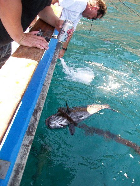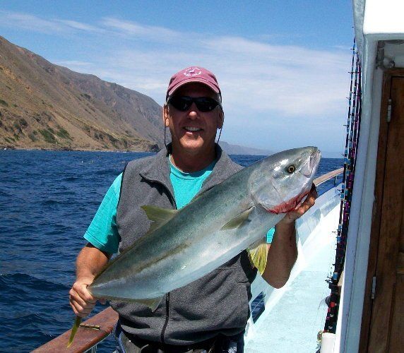 Trip #6: Boat: Thunderbird 1.5 day Departs: Firday September 5th Fishing: September 5th - September 6th Returns: September 6th, AM Thunderbird Crew: Jeff Markland- Captain Steve Raby- 2nd Captain Jose & Nate on deck Carmelo in the Galley To everyone’s surprise the first to arrive on Thursday to get head of the line privileges was of all people Tony Beall! Damn! As the afternoon wore on into the evening, the remainer of the group made their way to the dock. The Thunderbird rolled in around 6:30pm and it was clear, fishing had been thoroughly trashed due to poor weather offshore. They fished San Clemente Island for two days for a handful of yellowtail, but good calico bass fishing. After I wandered down to the boat, and speaking with Jeff, confirmed the weather was forecast to be poor where the tuna had been, and they disappeared, and we would be relegated to fishing “an island or two”. So what did that mean? Well a very reliable squid light boat source had reported to Jeff that day that he had seen a large volume of yellowtail at Santa Barbara Island that same day. So Jeff said we will head there first and check it out, then scour the previous tuna grounds west of San Clemente Island later as we head to San Clemente Island to fish for bass and hopefully some yellowtail there. So off we went. We already had a few scoops of squid on the boat and the sardines we got were very good. Travel out was rather sporty as we had wind and swell and were traveling at a poor angle due to the course line required. 60 miles of shit weather does not make for sleeping very well. We arrived at Santa Barbara Island around 4:10am on the squid grounds and fished a couple areas in the front and back of the island for nothing. Screaming current- Dropper loop needed 16 oz to hold bottom in only 100 feet of water. There was no sign of the yellowtail from the day before. It figures. Around 8:45am Jeff said he had enough, pulled the plug and we headed to the next island via the tuna grounds. An interesting note was the wind had backed off and by 9:00am, it was actually pretty pleasant on the water. Spent the next several hours traveling and scouting the tuna grounds where the fish had been. Stopped on one spot on the sonar and had some fish under the boat for one missed bite on Luke’s drop shot rig. Arrived at the “9” on the west end of San Clemente Island to start. Heavy current and every sea lion at the island were there. Saw a couple Yellowtail boils but no bites. Moved to the north kelp at Northwest Harbor and the bass bit well for 20 minutes or so until the current backed off and the kelp floated. After that fished a number of spots “spot hopping” down the front side the rest of the day, a couple good bass bites and some pick bites, but no yellowtail to be found. A couple boils here and there but no volume or any biters. And all the sea lions we wanted. We were the only sportfishing boat there so we couldn’t “share the wealth” with anyone. The wind had come up again around mid-afternoon and made things pretty difficult as it was wind against the current all afternoon. Ended up in Pyramid Cove and fished in there until it was time to head home. Carmelo put out a very good dinner of tri-tip, potatoes, asparagus and salad, topped off with our usual Klondike Bar desert. Left for home at 10:00pm and another “sporty”, no sleep ride until inside Catalina. Arrived at around 4:15am, everyone unloaded and that was it! Trip total-NO “gamefish”, near boat limits of calico bass, some kept and most released, 1 really micro bonito, 1 barracuda, TWO Blue Perch! Also some miscellaneous whitefish and sheephead mixed in. Needless to say the old fixing axiom does apply to this trip: “You should have been here yesterday, wait until tomorrow” JP & Patch winner- Bill Parks- 4.5 lb Calico Bass One item that I find encouraging is the calico bass fishing at the island. The percentage of legal (14 inch) and above fish is way up from the past, and although the bite is not fully consistent, if you work at it, you can get some decent ones. Also, it seems the quantity of calicos is increasing as compared to the last couple of years. I am convinced that the 14” size limit which allows the spawners to grow enough to spawn may actually be contributing. Time will tell. Well that’s it! Next up, 2.5 day trip leaving Tuesday 9/16 returning Friday early morning 9/19. Your Scribe (Again)- Gary Thompson