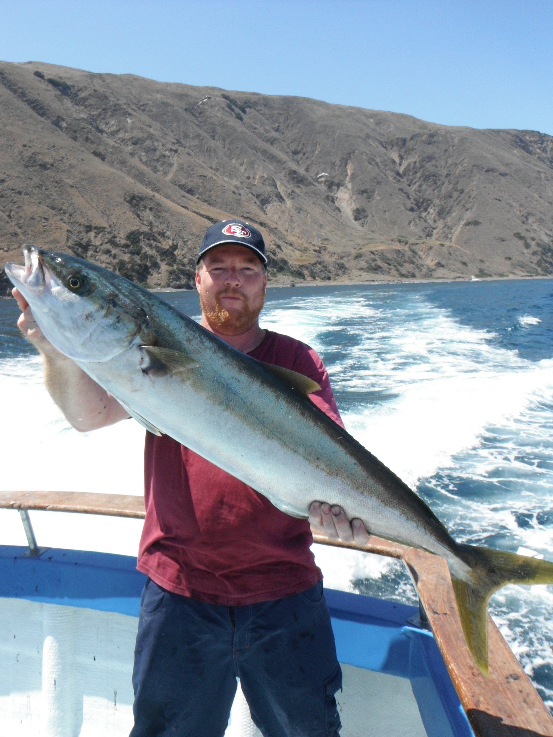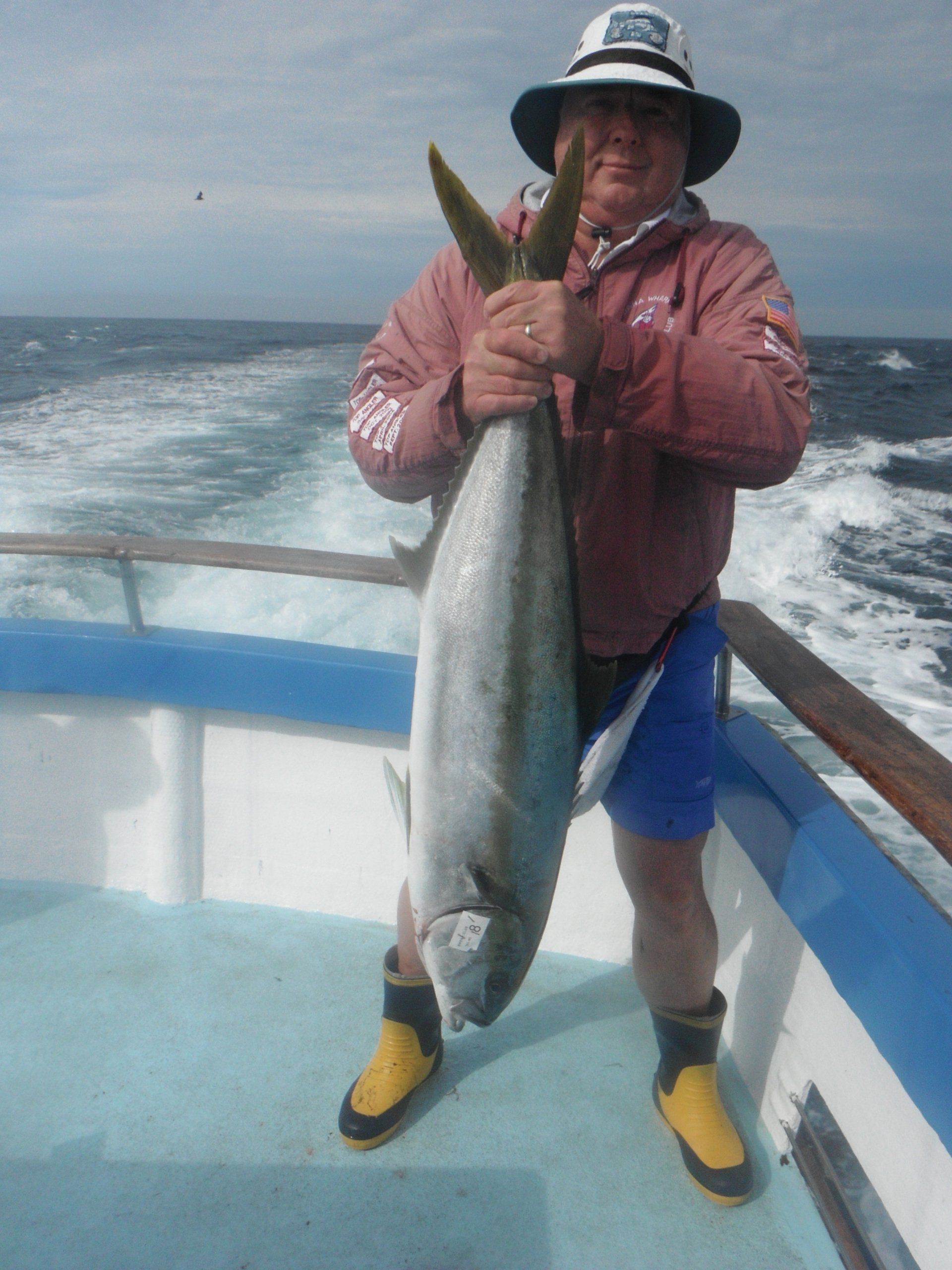 Trip #4: Boat: Thunderbird 2 day Departs: Thursday August 7th Fishing: August 8th, 9th Returns: August 9th pm Trip 4 started as usual with people arriving at Newport Landing at all hours of the day with anticipation of fishing. The preliminary reports from Gary Thompson were all too familiar to what we’ve seen this year. Bait was going to be an issue. And last but not least, was the fish seemed to pop up one day and then disappear the next. Nevertheless, everyone was ready to go. Friday morning saw us anchored at the usual cove off SCI. Weather was OK; fishable, but not a lot of fish. But the ones we caught were quality yellowtail and white sea bass. The sea lions provided ample entertainment …err I mean frustration. We hopped around to a few spots picking up the occasional calico but not much. Day 1 jackpot went to Alex Arthur (Justin Becker’s Guest) with the patch going to Nick Burson for some chunky YT’s Day 2 started much as it did Day 1 but the weather was worse than Day 1. We looked here and there with only 3 yellowtail to show for our efforts. Eventually, the Thunderbird turned towards offshore waters to try our luck at some bluefin. Unfortunately, the fish didn’t get the memo and we saw neither sign or had any bites. Mr, “Hey that’s my fish” Tom Hill was the lucky jackpot and patch winner for Day 2 with a 15# YT. So, there you have it, not a, “Hey you missed a great trip” kind ‘a trip but per usual, the members of our club all seemed to enjoy doing what we do. It’s not always about the fish; it’s about the people and the experience. LOL! Who am I kidding…we all want more fish. Until next time, step to the right/left and take up your slack.
