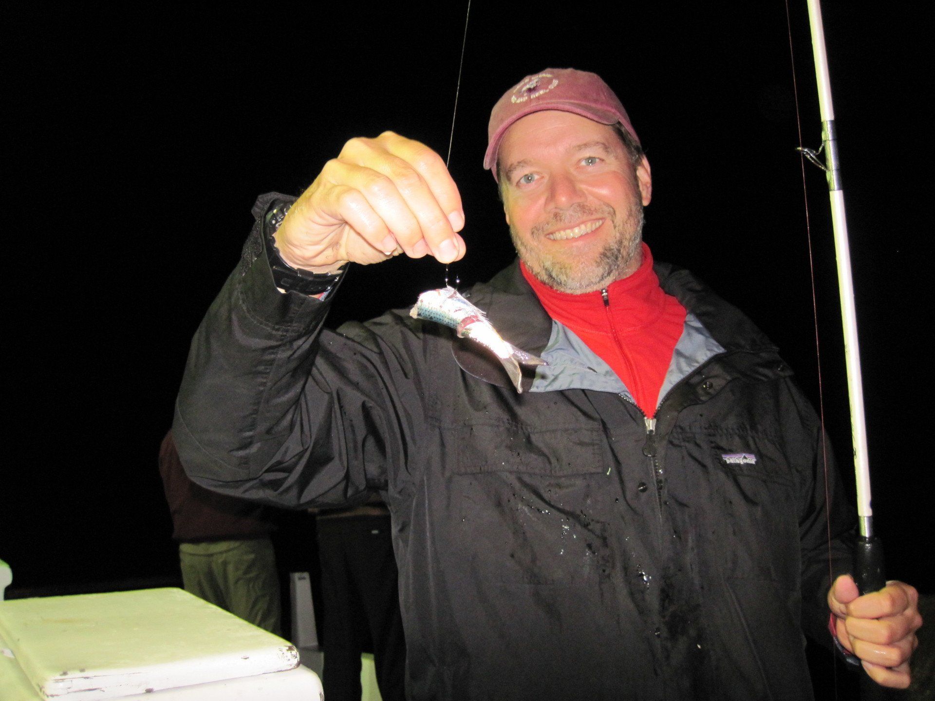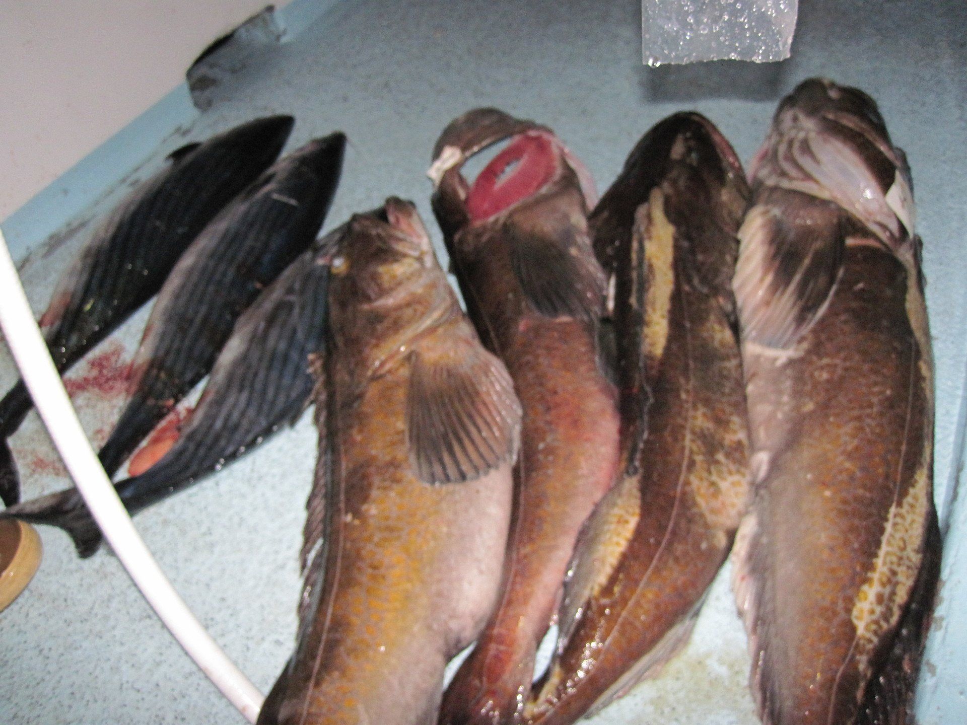 Trip #6: Boat: Thunderbird 1.5 day Departs: Firday September 5th Fishing: September 5th - September 6th Returns: September 6th, AM Thunderbird Crew: Jeff Markland- Captain Steve Raby- 2nd Captain Jose & Nate on deck Carmelo in the Galley To everyone’s surprise the first to arrive on Thursday to get head of the line privileges was of all people Tony Beall! Damn! As the afternoon wore on into the evening, the remainer of the group made their way to the dock. The Thunderbird rolled in around 6:30pm and it was clear, fishing had been thoroughly trashed due to poor weather offshore. They fished San Clemente Island for two days for a handful of yellowtail, but good calico bass fishing. After I wandered down to the boat, and speaking with Jeff, confirmed the weather was forecast to be poor where the tuna had been, and they disappeared, and we would be relegated to fishing “an island or two”. So what did that mean? Well a very reliable squid light boat source had reported to Jeff that day that he had seen a large volume of yellowtail at Santa Barbara Island that same day. So Jeff said we will head there first and check it out, then scour the previous tuna grounds west of San Clemente Island later as we head to San Clemente Island to fish for bass and hopefully some yellowtail there. So off we went. We already had a few scoops of squid on the boat and the sardines we got were very good. Travel out was rather sporty as we had wind and swell and were traveling at a poor angle due to the course line required. 60 miles of shit weather does not make for sleeping very well. We arrived at Santa Barbara Island around 4:10am on the squid grounds and fished a couple areas in the front and back of the island for nothing. Screaming current- Dropper loop needed 16 oz to hold bottom in only 100 feet of water. There was no sign of the yellowtail from the day before. It figures. Around 8:45am Jeff said he had enough, pulled the plug and we headed to the next island via the tuna grounds. An interesting note was the wind had backed off and by 9:00am, it was actually pretty pleasant on the water. Spent the next several hours traveling and scouting the tuna grounds where the fish had been. Stopped on one spot on the sonar and had some fish under the boat for one missed bite on Luke’s drop shot rig. Arrived at the “9” on the west end of San Clemente Island to start. Heavy current and every sea lion at the island were there. Saw a couple Yellowtail boils but no bites. Moved to the north kelp at Northwest Harbor and the bass bit well for 20 minutes or so until the current backed off and the kelp floated. After that fished a number of spots “spot hopping” down the front side the rest of the day, a couple good bass bites and some pick bites, but no yellowtail to be found. A couple boils here and there but no volume or any biters. And all the sea lions we wanted. We were the only sportfishing boat there so we couldn’t “share the wealth” with anyone. The wind had come up again around mid-afternoon and made things pretty difficult as it was wind against the current all afternoon. Ended up in Pyramid Cove and fished in there until it was time to head home. Carmelo put out a very good dinner of tri-tip, potatoes, asparagus and salad, topped off with our usual Klondike Bar desert. Left for home at 10:00pm and another “sporty”, no sleep ride until inside Catalina. Arrived at around 4:15am, everyone unloaded and that was it! Trip total-NO “gamefish”, near boat limits of calico bass, some kept and most released, 1 really micro bonito, 1 barracuda, TWO Blue Perch! Also some miscellaneous whitefish and sheephead mixed in. Needless to say the old fixing axiom does apply to this trip: “You should have been here yesterday, wait until tomorrow” JP & Patch winner- Bill Parks- 4.5 lb Calico Bass One item that I find encouraging is the calico bass fishing at the island. The percentage of legal (14 inch) and above fish is way up from the past, and although the bite is not fully consistent, if you work at it, you can get some decent ones. Also, it seems the quantity of calicos is increasing as compared to the last couple of years. I am convinced that the 14” size limit which allows the spawners to grow enough to spawn may actually be contributing. Time will tell. Well that’s it! Next up, 2.5 day trip leaving Tuesday 9/16 returning Friday early morning 9/19. Your Scribe (Again)- Gary Thompson