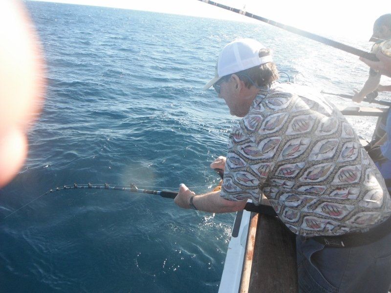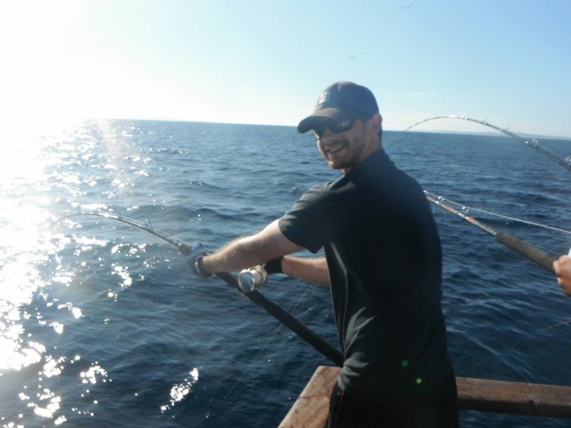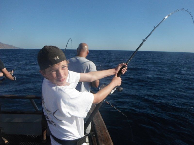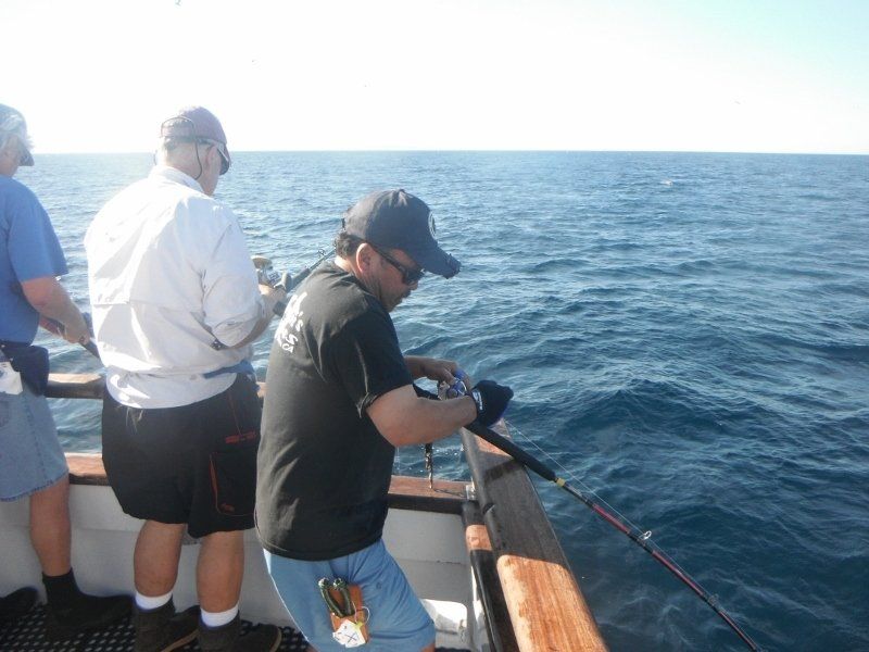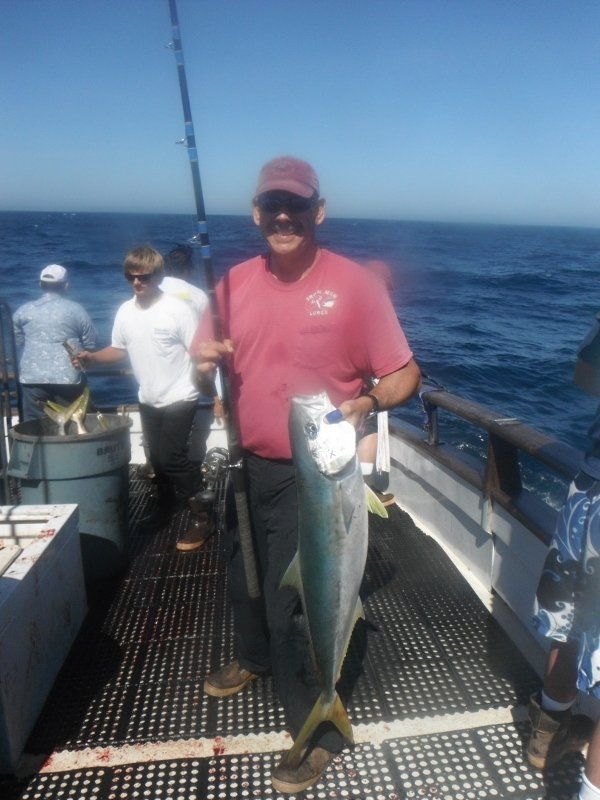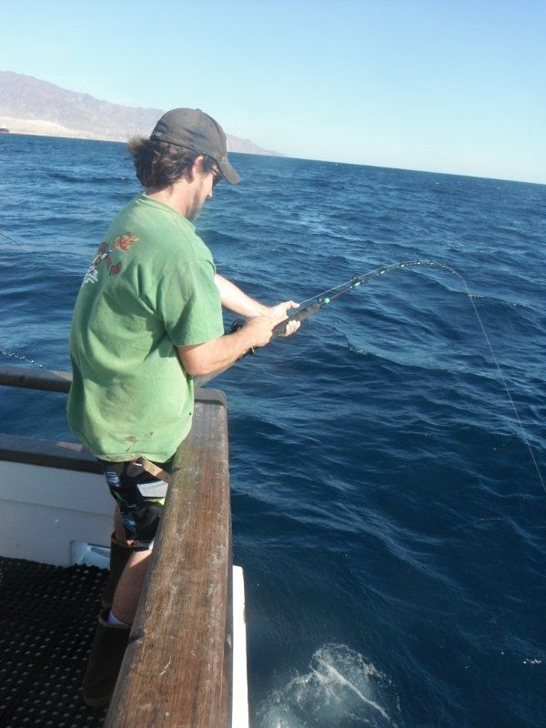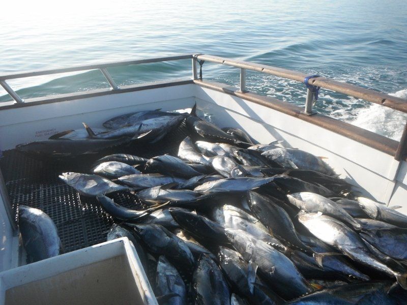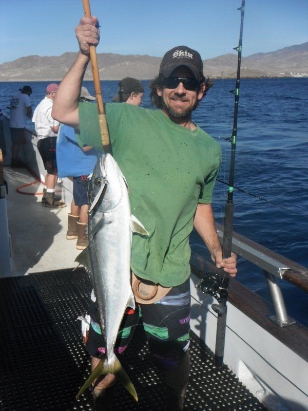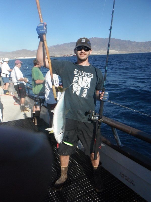 Trip #5: Boat: Thunderbird 2.5 day Departs: Tuesday August 19th Fishing: August 20th, 21th Returns: August 22th am Thunderbird Crew: Jeff Markland- Captain Steve Raby- 2nd Captain Jose, Jared & Nate on deck Goofy in his usual form in the Galley The usual suspects, newer club members and a slew of guests began gathering for the upcoming 2.5-day venture on board the Thunderbird on Tuesday afternoon/evening, a lot of discussion occurred around where will we fish, what is our bait, are we going to fish for tuna, and more importantly, the weather. Forecast was for pretty breezy on the outer banks and tuna grounds with somewhat better at the island. Thursday weather looked much improved everywhere. As it turned out, the weather turned out nice the first day, and even nicer the second day. Also the good news was we would have sardines for bait. When the boat returned from the fuel dock around 7:30, I wandered down to the boat and sat with Jeff and discussed our “options”. There was about 2 scoops of live squid on the boat and the squid at San Clemente Island was available but by jigging. Also, the yellowtail fishing was hit or miss at best early in the cove, and then really nothing to catch the rest of the day unless the bass decided to bite. The tuna grounds were in range to do some night fishing between the days, and daytime fishing was producing smaller fish. The Tanner Bank had the 10-15 lb variety which was spotty, and inside toward SCI were bigger 30-35lb variety with some larger mixed in. Getting bites though would be hard. The Cortez Bank coughed up 100 yellowtail for Jeff a few days before. There was also some white sea bass caught at San Nicholas Island so that was an option. Soooo, one more time, what to do. Jeff decided he will decide when we leave the bait receiver as I said give it your best shot. The final decision, with the weather forecast improving, we would head to the Cortez Bank since there had been some yellowtail there a few days before. And off we went. Travel out was not too bad. Day 1- Arrived at the Cortez Bank around 7:45 am, fished a couple areas for nothing except some of the jumbo bonito, large mackerel and a few bottom dwellers. There was no sign of yellowtail. Where the F**k did they go? Around 10:00am, Jeff pulled the plug and we headed back inside to the tuna grounds, about 30 miles away. Weather was getting much nicer, We ended up picking at the BFT not long after we arrived in the area around 2:00pm and joined “the fleet”. We had one decent plunker drift for 16 BFT, and scratched up 9 more at sundown. As dark fell, we headed into the island to try for the early morning yellowtail fishing at the Lost Point area. Day 1 fish count- 25 BFT, 4 Bonito kept, a few misc bottom dwellers kept JP winner- Bronson Noggle (Cory Steinwand Guest)- 30 plus lb BFT, Patch winner Cory Steinwand- 30 plus lb BFT (it was very close) Day 2- had a few yellowtail bites in the dark and grey light at Lost Point, all nice fish. Headed out after grey light for yesterday’s tuna grounds. Flat calm weather. Worked the area with “the fleet” for a couple of hours and covering a lot of water. Jeff finally pulled the plug and decided to take a gamble and head to the Tanner Bank since there were tuna there a few days before. And the gamble certainly paid off. We were greeted with boiling fish in the chum circle when we arrived, boiling fish on the anchor and steady fishing on the 10-15 lb BFT the rest of the afternoon. We fished a couple deep spots for decent reds and other stuff, one nice ling cod and headed back to the area west of SCI toward San Nicholas Island for some night fishing. We had several stops on spots of fish, and got a few anywhere from 30 plus lbs up to 100lbs. Around midnight, we headed home. We were able to fish that long because by chance, the boat was not scheduled to run a ¾ day trip when we got in, so we got to fish longer. Arrived at the dock around 7:20am, unloaded and that was it. Day 2 fish count- 6 Yellowtail, 40 BFT, 1 Halibut, 2 Barracuda, 100 plus mixed Reds and Rockfish, 1 Ling Cod JP & Patch winner- Cory Steinwand- 102 lb BFT Trip total- 65 BFT, 6 Yellowtail, 1 Halibut, 4 Bonito, 100 plus mixed Reds/Rockfish, 1 Ling Cod The weather for the entire trip was good. Temperature cool both days but very nice. Very little wind to flat calm the entire 2 days. One thing that was troubling was the amount of casualties on these smaller tuna. Seems like most everyone liberated one or two, or more. (We won’t mention my luck!). Small hooks and light line with too much pressure and these little guys were hot! All in all a good time had by all and a very good group of guests on this trip as well. That’s it! Your Scribe- Gary Thompson