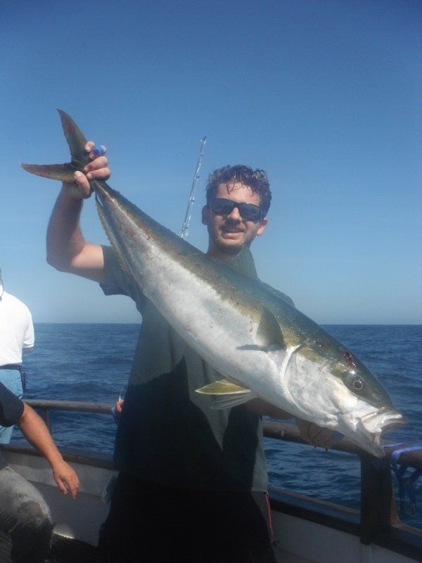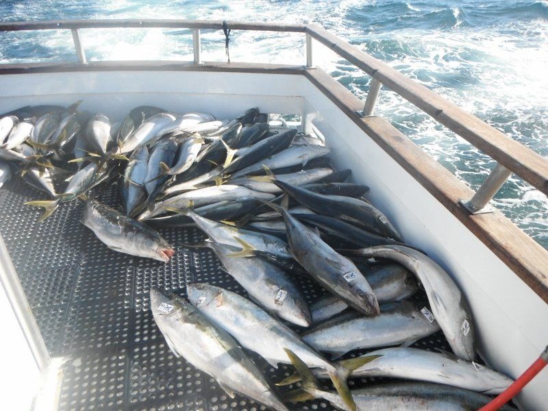 Trip #4: Boat: Thunderbird 2 day Departs: Thursday August 7th Fishing: August 8th, 9th Returns: August 9th pm Trip 4 started as usual with people arriving at Newport Landing at all hours of the day with anticipation of fishing. The preliminary reports from Gary Thompson were all too familiar to what we’ve seen this year. Bait was going to be an issue. And last but not least, was the fish seemed to pop up one day and then disappear the next. Nevertheless, everyone was ready to go. Friday morning saw us anchored at the usual cove off SCI. Weather was OK; fishable, but not a lot of fish. But the ones we caught were quality yellowtail and white sea bass. The sea lions provided ample entertainment …err I mean frustration. We hopped around to a few spots picking up the occasional calico but not much. Day 1 jackpot went to Alex Arthur (Justin Becker’s Guest) with the patch going to Nick Burson for some chunky YT’s Day 2 started much as it did Day 1 but the weather was worse than Day 1. We looked here and there with only 3 yellowtail to show for our efforts. Eventually, the Thunderbird turned towards offshore waters to try our luck at some bluefin. Unfortunately, the fish didn’t get the memo and we saw neither sign or had any bites. Mr, “Hey that’s my fish” Tom Hill was the lucky jackpot and patch winner for Day 2 with a 15# YT. So, there you have it, not a, “Hey you missed a great trip” kind ‘a trip but per usual, the members of our club all seemed to enjoy doing what we do. It’s not always about the fish; it’s about the people and the experience. LOL! Who am I kidding…we all want more fish. Until next time, step to the right/left and take up your slack.