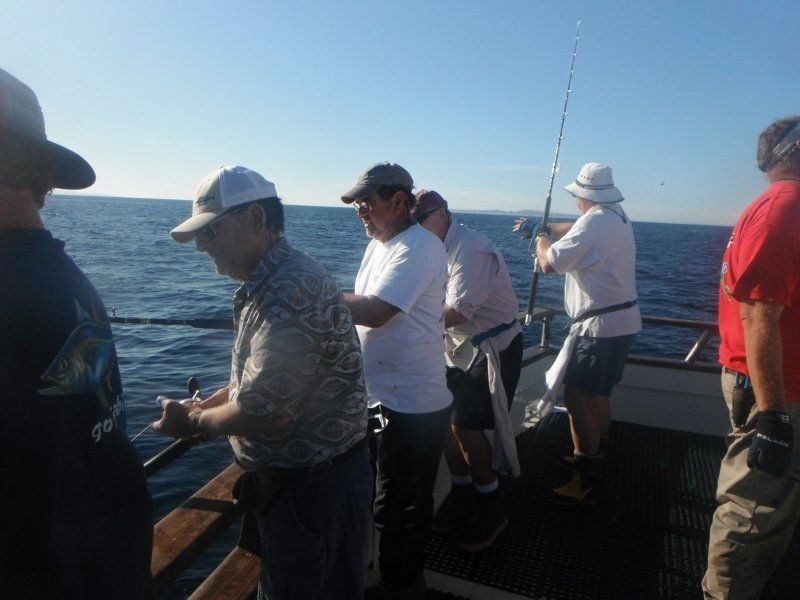 Trip #7: Boat: Thunderbird 2.5 day Departs: Tuesday, September 16th Fishing: September 17th, 18th Returns: September 19th am Thunderbird Crew: Jeff Markland- Captain Steve Raby- 2nd Captain Carmelo in the Galley Jose & Nate on deck The fishing schedule for 2025 has two 2 1/2 day trips and Trip #7 was the second one. Historically the 2 1/2 dayers fill quickly at the Annual Sign-Up Meeting. This was not the case this year as this trip only filled to about half during the Lottery and the rest of the spots were taken by guests. Here are the members who were on the trip: Gary Thompson, Steve Morgan, Mike Barton, Alex Mesko, Mike Higa, Bill Parks, John Lenker, Steve Lenker, Kyle Shimigawa, and Luke Burson (trip scribe). That is 10 members and the other 13 were all guests. The Club owns the following a big thank you for committing guests to this trip because without them this trip would have put a financial burden on the Club of $8,125. And the Club simply does not have those funds so the trip would have been cancelled. A special thank you to Mike Barton with 5 guests, Steve Lenker with 3, Mike Higa with 2, guests, Steve Morgan with 1 guest, Bryan Upcraft with 1 guest, and Luke Burson with 1 guest. And all the guests fit in perfectly and made it a good group to fish, sleep, and eat with for 2 1/2 days. As the trip approached Gary sent out information a week before with information about the trip. At that point the weather looked good and the fish counts were encouraging. As the trip got closer Gary sent out more information with the weather holding plus the Thunderbird getting limits on their weekend 2 1/2 dayer. All were feeling pretty optimistic about two things that had been missing on previous trips……nice weather and good fishing. On the day of departure, the usual members arrived early to ensure that they would board first to secure the tackle spots that are important to them, Others started to drift in throughout the afternoon. All were challenged with parking because of the local Wednesday street sweeping. Some were luckier than others but everyone found a parking spot. And then to our surprise the Thunderbird arrived close to 4 PM and it was obvious why…..very good fishing. To be specific they had back-to-back multi-day trips with limits of BF. And the buzz for all on the dock was pretty strong. They caught the fish at the Cortez, some at night near SCI but most during the day on bait. We asked about the bait and the group did not have good things to say. We quickly put two and two together that the fishing must be pretty good to do that well with poor bait. And another important item……NO STINKING FULL MOON! Jeff indicated we were headed back to Cortez and to save a little time we were going to take the direct course line around the east end of SCI. We’re expecting a flat smooth ride, we quickly learn that our course line had us in the rolley trough. It turned out to be anything but smooth. Our crew for the 2 1/2 trip was Jeff as our Captain, Steve as the 2nd Captain, Carmelo in the galley with Jose and Nat on deck. We have fished with them many times before so we knew we were in good hands for the 2 1/2 days. We stopped to load bait and to our surprise, that bait looked pretty good. The size could have been bigger as it was all medium to small-medium baits but it looked good. That even increased the anticipation of what was to come. As it turned out about 60% turned red while the rest was good bait. For the next two days, you really had to pick through what was in the hand wells to find the good ones. As we rolled into the “Bank” there was a pretty good electrical show to the west from about 3 AM to 5 AM plus some slight rain. And we could see some boats in the distance. We would learn that we would not be alone at Cortez Bank but because of the way the fish were spread out it would not make a difference. Jeff got the anchor down close to the position that they had success on the last trip and it took a little time for the fish to find us……and they did. It was a slow pick for the next 4 or 5 hours. Occasionally we would have 2 for 3 going but most of the time it was one at a time. The conditions were perfect, a strong current in the right direction and some breeze to keep the boat a little crossways to the current. Jeff said the conditions were perfect. As the morning continued there were two ways to get a bite: 1) hot bait close to the boat, or 2) long soak behind the boat. Although detailed records were not kept it seems that the hot baits close to the boat got 4 to 5 times the bites compared to the long soak. This getting bit close to the boat with hot baits was shared with all as it was working great for a few: light line (20#), small hooks (#6 or #8), the best bait in the well, and then give that bait 30 seconds, and if no bite wind in and do it again. And if the bait did not “swim” then cut your losses and wind in to do it again. Some fished that way and were rewarded, others continue to soak their baits. It was a little frustrating that so many were locked into soaking baits when the other method was working so well. It just must be too much work to change baits every 30 seconds and it is easier to soak them behind the boat. The few anglers who changed baits quickly did pretty very well while others did not……that’s fishing. The fish seem to leave us around 2 PM so Jeff decided to go looking in the direction of SCI. By heading back toward SCI we would have a shot at bigger fish at night. We ran all the way back to within 5 miles of SCI and never saw anything on the electronics. When it got dark the effort changed to working the area where the BF had been at night but after about 5 hours of looking without a single mark on the electronics Jeff decided to head back to Cortez to fish the same location we were in that morning. Carmelo prepared an excellent dinner of marinated chicken, basmati rice, and a Greek-style salad. And of course, it was finished 