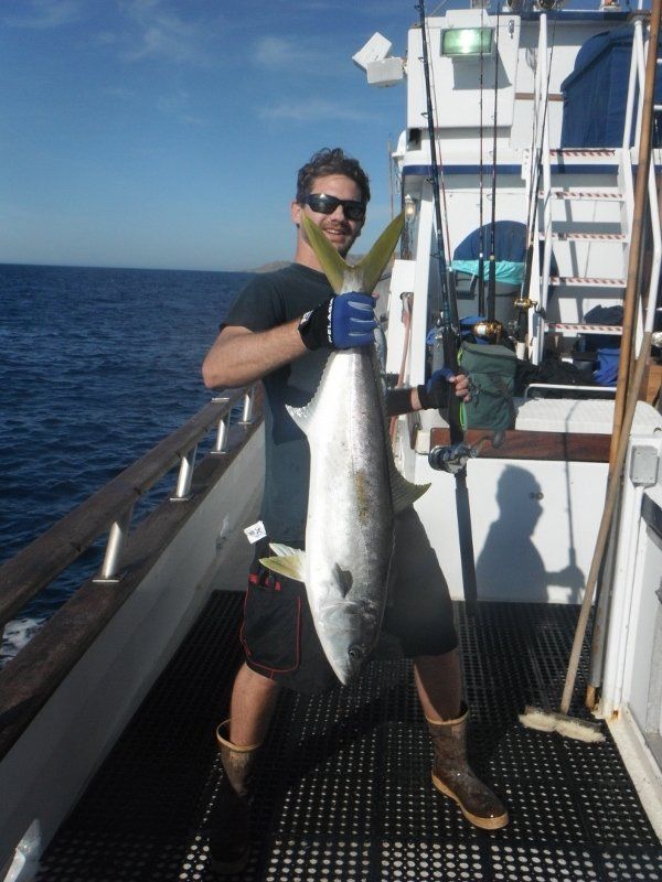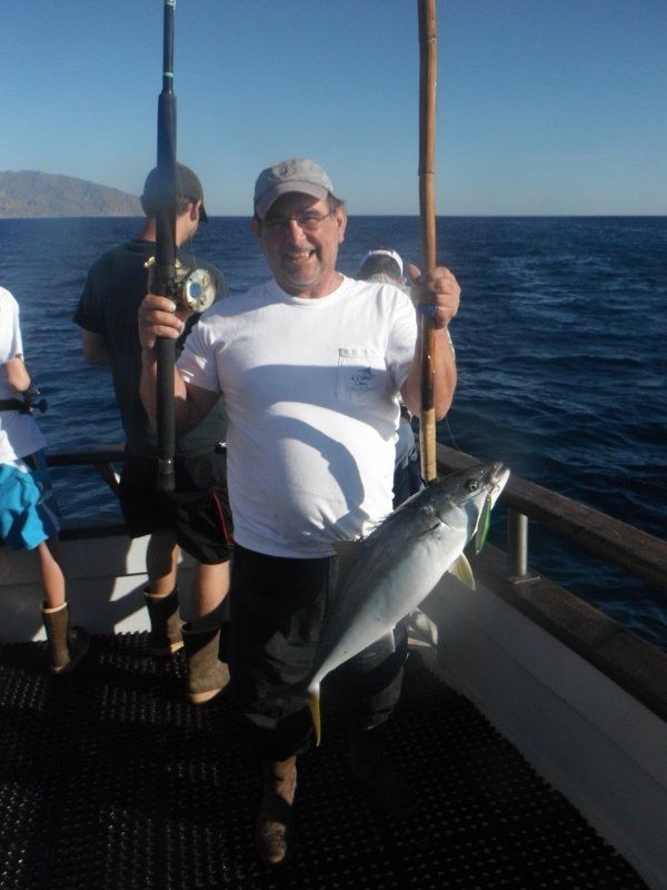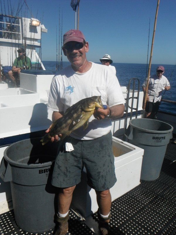 Trip #6: Boat: Thunderbird 1.5 day Departs: Firday September 5th Fishing: September 5th - September 6th Returns: September 6th, AM Thunderbird Crew: Jeff Markland- Captain Steve Raby- 2nd Captain Jose & Nate on deck Carmelo in the Galley To everyone’s surprise the first to arrive on Thursday to get head of the line privileges was of all people Tony Beall! Damn! As the afternoon wore on into the evening, the remainer of the group made their way to the dock. The Thunderbird rolled in around 6:30pm and it was clear, fishing had been thoroughly trashed due to poor weather offshore. They fished San Clemente Island for two days for a handful of yellowtail, but good calico bass fishing. After I wandered down to the boat, and speaking with Jeff, confirmed the weather was forecast to be poor where the tuna had been, and they disappeared, and we would be relegated to fishing “an island or two”. So what did that mean? Well a very reliable squid light boat source had reported to Jeff that day that he had seen a large volume of yellowtail at Santa Barbara Island that same day. So Jeff said we will head there first and check it out, then scour the previous tuna grounds west of San Clemente Island later as we head to San Clemente Island to fish for bass and hopefully some yellowtail there. So off we went. We already had a few scoops of squid on the boat and the sardines we got were very good. Travel out was rather sporty as we had wind and swell and were traveling at a poor angle due to the course line required. 60 miles of shit weather does not make for sleeping very well. We arrived at Santa Barbara Island around 4:10am on the squid grounds and fished a couple areas in the front and back of the island for nothing. Screaming current- Dropper loop needed 16 oz to hold bottom in only 100 feet of water. There was no sign of the yellowtail from the day before. It figures. Around 8:45am Jeff said he had enough, pulled the plug and we headed to the next island via the tuna grounds. An interesting note was the wind had backed off and by 9:00am, it was actually pretty pleasant on the water. Spent the next several hours traveling and scouting the tuna grounds where the fish had been. Stopped on one spot on the sonar and had some fish under the boat for one missed bite on Luke’s drop shot rig. Arrived at the “9” on the west end of San Clemente Island to start. Heavy current and every sea lion at the island were there. Saw a couple Yellowtail boils but no bites. Moved to the north kelp at Northwest Harbor and the bass bit well for 20 minutes or so until the current backed off and the kelp floated. After that fished a number of spots “spot hopping” down the front side the rest of the day, a couple good bass bites and some pick bites, but no yellowtail to be found. A couple boils here and there but no volume or any biters. And all the sea lions we wanted. We were the only sportfishing boat there so we couldn’t “share the wealth” with anyone. The wind had come up again around mid-afternoon and made things pretty difficult as it was wind against the current all afternoon. Ended up in Pyramid Cove and fished in there until it was time to head home. Carmelo put out a very good dinner of tri-tip, potatoes, asparagus and salad, topped off with our usual Klondike Bar desert. Left for home at 10:00pm and another “sporty”, no sleep ride until inside Catalina. Arrived at around 4:15am, everyone unloaded and that was it! Trip total-NO “gamefish”, near boat limits of calico bass, some kept and most released, 1 really micro bonito, 1 barracuda, TWO Blue Perch! Also some miscellaneous whitefish and sheephead mixed in. Needless to say the old fixing axiom does apply to this trip: “You should have been here yesterday, wait until tomorrow” JP & Patch winner- Bill Parks- 4.5 lb Calico Bass One item that I find encouraging is the calico bass fishing at the island. The percentage of legal (14 inch) and above fish is way up from the past, and although the bite is not fully consistent, if you work at it, you can get some decent ones. Also, it seems the quantity of calicos is increasing as compared to the last couple of years. I am convinced that the 14” size limit which allows the spawners to grow enough to spawn may actually be contributing. Time will tell. Well that’s it! Next up, 2.5 day trip leaving Tuesday 9/16 returning Friday early morning 9/19. Your Scribe (Again)- Gary Thompson
