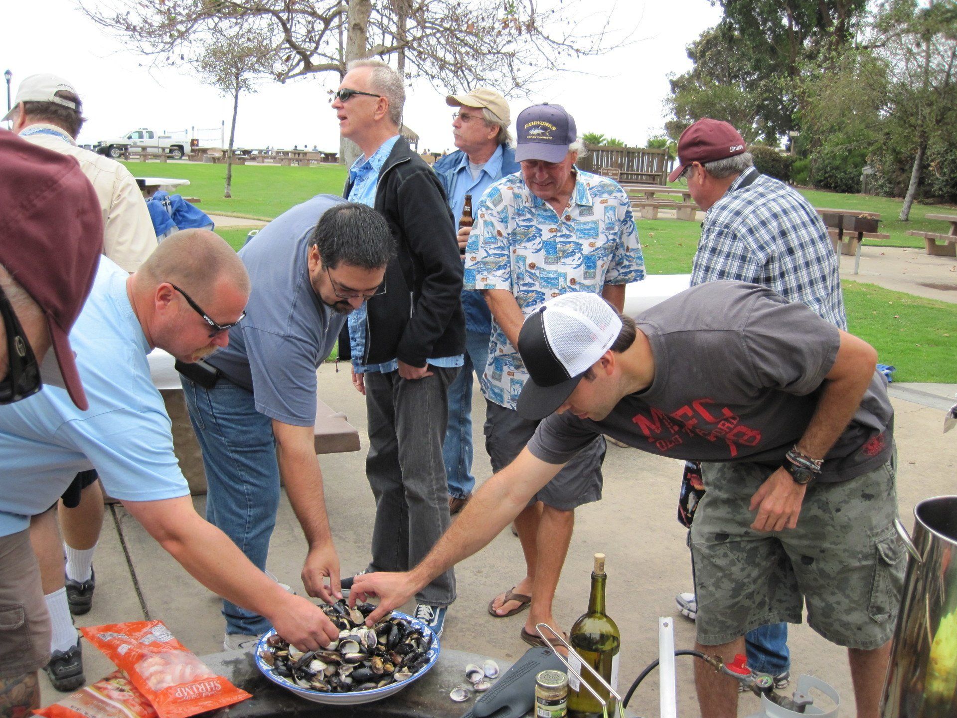 Trip #8: Boat: Thunderbird 1.5 day Departs: Thursday, October 2th Fishing: October 3th, 4th Returns: October 4th pm Thunderbird Crew: Capt. Jeff Capt. Chris Jose Nate Goofy Cast of Characters: Bill Parks Steve Morgan Riley Dyer Jim Bertella Justin Becker Jacob Richards Luke Burson Paul Morgan Mike Allen (Scribe) Patrick Thunyakij Bruce Granse Kevon Kong Michael Harris Ryan Burson Oscar Ochoa Ed Chutney Jeff Allen Andrew Ron Shrout Murphy Parks Romeo Ochoa James Harris Ozzie Baktiari Arriving for a trip in the month of October at Newport Landing is a far easier experience then one would have in the summer months of June – September. The dread of driving through the neighborhood in hopes of an empty space large enough to accommodate the larger trucks that many of the club members own seems to dissipate as the offerings are far more plentiful. While the welcomed views of summer also tend to be less abundant, the ensemble of club members arrived with plenty of time to catch-up on some conversations and enjoy a beverage or two.