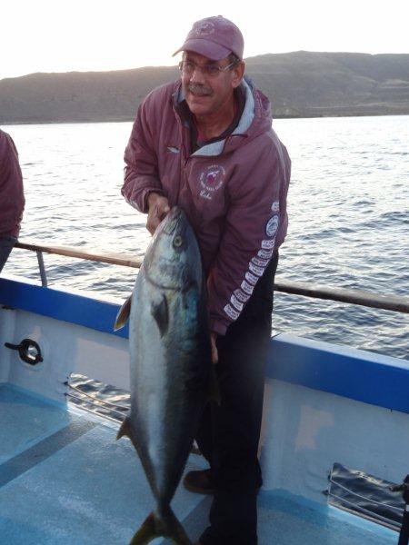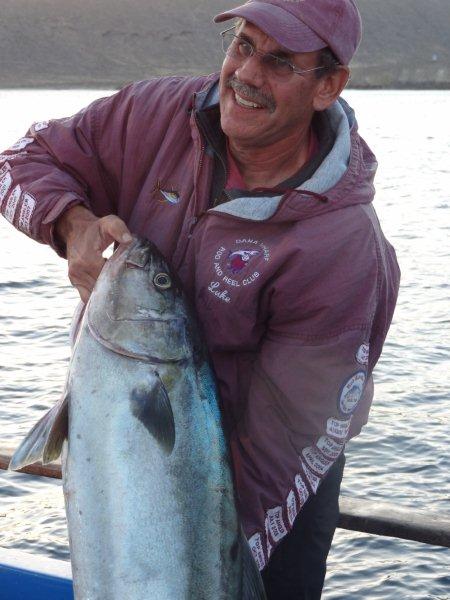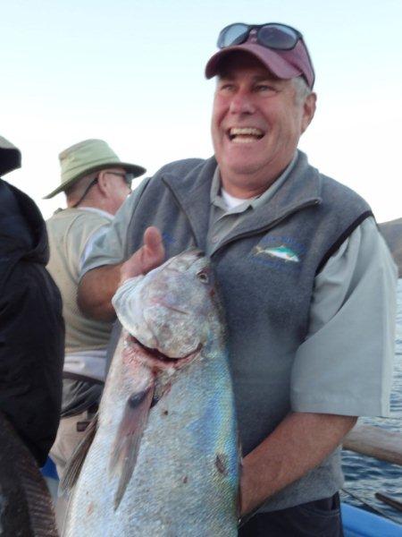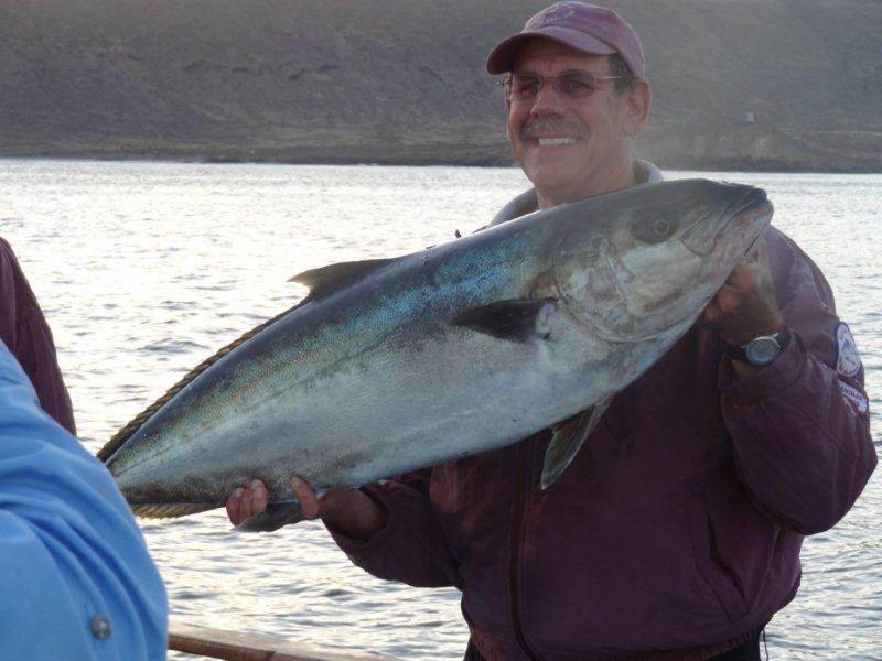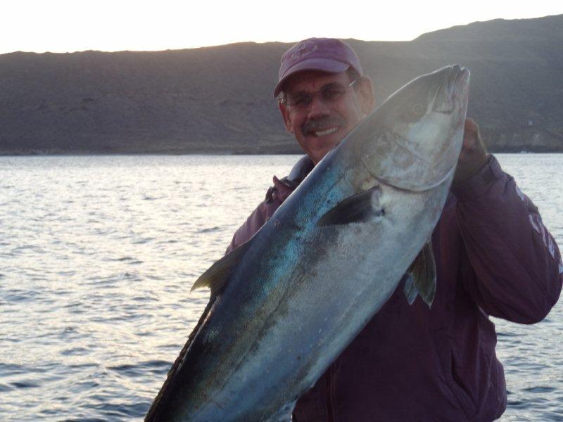 Trip #6: Boat: Thunderbird 1.5 day Departs: Firday September 5th Fishing: September 5th - September 6th Returns: September 6th, AM Thunderbird Crew: Jeff Markland- Captain Steve Raby- 2nd Captain Jose & Nate on deck Carmelo in the Galley To everyone’s surprise the first to arrive on Thursday to get head of the line privileges was of all people Tony Beall! Damn! As the afternoon wore on into the evening, the remainer of the group made their way to the dock. The Thunderbird rolled in around 6:30pm and it was clear, fishing had been thoroughly trashed due to poor weather offshore. They fished San Clemente Island for two days for a handful of yellowtail, but good calico bass fishing. After I wandered down to the boat, and speaking with Jeff, confirmed the weather was forecast to be poor where the tuna had been, and they disappeared, and we would be relegated to fishing “an island or two”. So what did that mean? Well a very reliable squid light boat source had reported to Jeff that day that he had seen a large volume of yellowtail at Santa Barbara Island that same day. So Jeff said we will head there first and check it out, then scour the previous tuna grounds west of San Clemente Island later as we head to San Clemente Island to fish for bass and hopefully some yellowtail there. So off we went. We already had a few scoops of squid on the boat and the sardines we got were very good. Travel out was rather sporty as we had wind and swell and were traveling at a poor angle due to the course line required. 60 miles of shit weather does not make for sleeping very well. We arrived at Santa Barbara Island around 4:10am on the squid grounds and fished a couple areas in the front and back of the island for nothing. Screaming current- Dropper loop needed 16 oz to hold bottom in only 100 feet of water. There was no sign of the yellowtail from the day before. It figures. Around 8:45am Jeff said he had enough, pulled the plug and we headed to the next island via the tuna grounds. An interesting note was the wind had backed off and by 9:00am, it was actually pretty pleasant on the water. Spent the next several hours traveling and scouting the tuna grounds where the fish had been. Stopped on one spot on the sonar and had some fish under the boat for one missed bite on Luke’s drop shot rig. Arrived at the “9” on the west end of San Clemente Island to start. Heavy current and every sea lion at the island were there. Saw a couple Yellowtail boils but no bites. Moved to the north kelp at Northwest Harbor and the bass bit well for 20 minutes or so until the current backed off and the kelp floated. After that fished a number of spots “spot hopping” down the front side the rest of the day, a couple good bass bites and some pick bites, but no yellowtail to be found. A couple boils here and there but no volume or any biters. And all the sea lions we wanted. We were the only sportfishing boat there so we couldn’t “share the wealth” with anyone. The wind had come up again around mid-afternoon and made things pretty difficult as it was wind against the current all afternoon. Ended up in Pyramid Cove and fished in there until it was time to head home. Carmelo put out a very good dinner of tri-tip, potatoes, asparagus and salad, topped off with our usual Klondike Bar desert. Left for home at 10:00pm and another “sporty”, no sleep ride until inside Catalina. Arrived at around 4:15am, everyone unloaded and that was it! Trip total-NO “gamefish”, near boat limits of calico bass, some kept and most released, 1 really micro bonito, 1 barracuda, TWO Blue Perch! Also some miscellaneous whitefish and sheephead mixed in. Needless to say the old fixing axiom does apply to this trip: “You should have been here yesterday, wait until tomorrow” JP & Patch winner- Bill Parks- 4.5 lb Calico Bass One item that I find encouraging is the calico bass fishing at the island. The percentage of legal (14 inch) and above fish is way up from the past, and although the bite is not fully consistent, if you work at it, you can get some decent ones. Also, it seems the quantity of calicos is increasing as compared to the last couple of years. I am convinced that the 14” size limit which allows the spawners to grow enough to spawn may actually be contributing. Time will tell. Well that’s it! Next up, 2.5 day trip leaving Tuesday 9/16 returning Friday early morning 9/19. Your Scribe (Again)- Gary Thompson