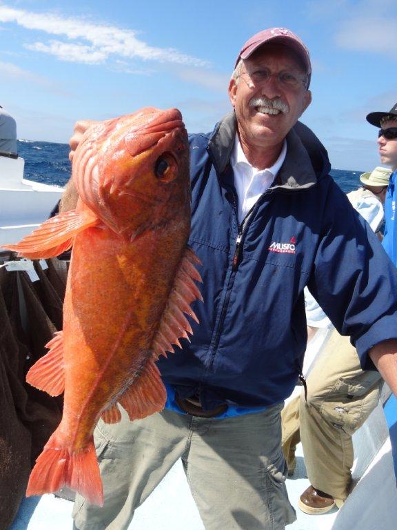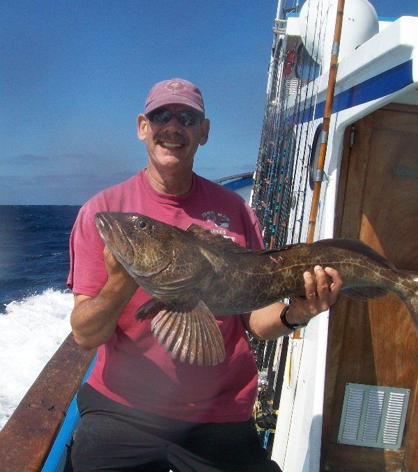 Trip #6: Boat: Thunderbird 1.5 day Departs: Firday September 5th Fishing: September 5th - September 6th Returns: September 6th, AM Thunderbird Crew: Jeff Markland- Captain Steve Raby- 2nd Captain Jose & Nate on deck Carmelo in the Galley To everyone’s surprise the first to arrive on Thursday to get head of the line privileges was of all people Tony Beall! Damn! As the afternoon wore on into the evening, the remainer of the group made their way to the dock. The Thunderbird rolled in around 6:30pm and it was clear, fishing had been thoroughly trashed due to poor weather offshore. They fished San Clemente Island for two days for a handful of yellowtail, but good calico bass fishing. After I wandered down to the boat, and speaking with Jeff, confirmed the weather was forecast to be poor where the tuna had been, and they disappeared, and we would be relegated to fishing “an island or two”. So what did that mean? Well a very reliable squid light boat source had reported to Jeff that day that he had seen a large volume of yellowtail at Santa Barbara Island that same day. So Jeff said we will head there first and check it out, then scour the previous tuna grounds west of San Clemente Island later as we head to San Clemente Island to fish for bass and hopefully some yellowtail there. So off we went. We already had a few scoops of squid on the boat and the sardines we got were very good. Travel out was rather sporty as we had wind and swell and were traveling at a poor angle due to the course line required. 60 miles of shit weather does not make for sleeping very well. We arrived at Santa Barbara Island around 4:10am on the squid grounds and fished a couple areas in the front and back of the island for nothing. Screaming current- Dropper loop needed 16 oz to hold bottom in only 100 feet of water. There was no sign of the yellowtail from the day before. It figures. Around 8:45am Jeff said he had enough, pulled the plug and we headed to the next island via the tuna grounds. An interesting note was the wind had backed off and by 9:00am, it was actually pretty pleasant on the water. Spent the next several hours traveling and scouting the tuna grounds where the fish had been. Stopped on one spot on the sonar and had some fish under the boat for one missed bite on Luke’s drop shot rig. Arrived at the “9” on the west end of San Clemente Island to start. Heavy current and every sea lion at the island were there. Saw a couple Yellowtail boils but no bites. Moved to the north kelp at Northwest Harbor and the bass bit well for 20 minutes or so until the current backed off and the kelp floated. After that fished a number of spots “spot hopping” down the front side the rest of the day, a couple good bass bites and some pick bites, but no yellowtail to be found. A couple boils here and there but no volume or any biters. And all the sea lions we wanted. We were the only sportfishing boat there so we couldn’t “share the wealth” with anyone. The wind had come up again around mid-afternoon and made things pretty difficult as it was wind against the current all afternoon. Ended up in Pyramid Cove and fished in there until it was time to head home. Carmelo put out a very good dinner of tri-tip, potatoes, asparagus and salad, topped off with our usual Klondike Bar desert. Left for home at 10:00pm and another “sporty”, no sleep ride until inside Catalina. Arrived at around 4:15am, everyone unloaded and that was it! Trip total-NO “gamefish”, near boat limits of calico bass, some kept and most released, 1 really micro bonito, 1 barracuda, TWO Blue Perch! Also some miscellaneous whitefish and sheephead mixed in. Needless to say the old fixing axiom does apply to this trip: “You should have been here yesterday, wait until tomorrow” JP & Patch winner- Bill Parks- 4.5 lb Calico Bass One item that I find encouraging is the calico bass fishing at the island. The percentage of legal (14 inch) and above fish is way up from the past, and although the bite is not fully consistent, if you work at it, you can get some decent ones. Also, it seems the quantity of calicos is increasing as compared to the last couple of years. I am convinced that the 14” size limit which allows the spawners to grow enough to spawn may actually be contributing. Time will tell. Well that’s it! Next up, 2.5 day trip leaving Tuesday 9/16 returning Friday early morning 9/19. Your Scribe (Again)- Gary Thompson