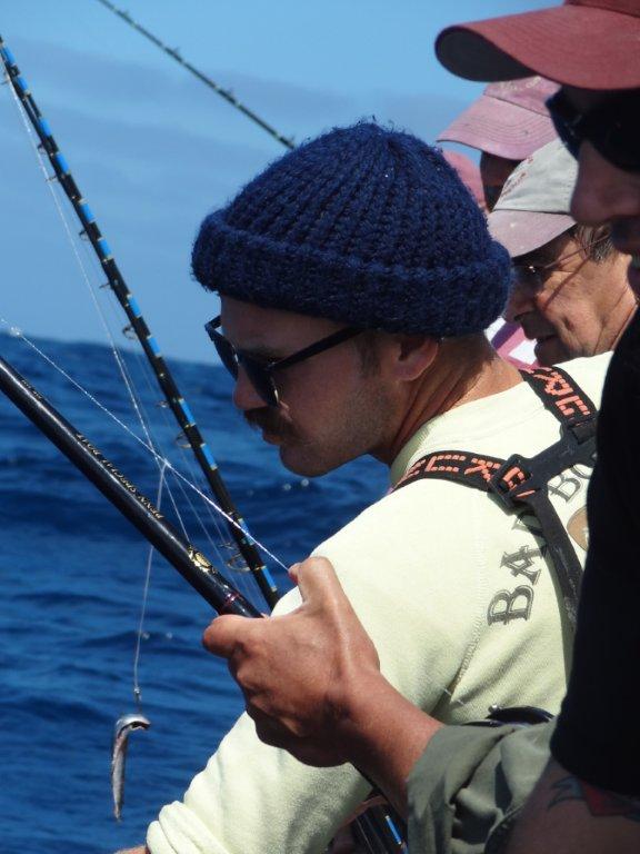 Trip #5: Boat: Thunderbird 2.5 day Departs: Tuesday August 19th Fishing: August 20th, 21th Returns: August 22th am Thunderbird Crew: Jeff Markland- Captain Steve Raby- 2nd Captain Jose, Jared & Nate on deck Goofy in his usual form in the Galley The usual suspects, newer club members and a slew of guests began gathering for the upcoming 2.5-day venture on board the Thunderbird on Tuesday afternoon/evening, a lot of discussion occurred around where will we fish, what is our bait, are we going to fish for tuna, and more importantly, the weather. Forecast was for pretty breezy on the outer banks and tuna grounds with somewhat better at the island. Thursday weather looked much improved everywhere. As it turned out, the weather turned out nice the first day, and even nicer the second day. Also the good news was we would have sardines for bait. When the boat returned from the fuel dock around 7:30, I wandered down to the boat and sat with Jeff and discussed our “options”. There was about 2 scoops of live squid on the boat and the squid at San Clemente Island was available but by jigging. Also, the yellowtail fishing was hit or miss at best early in the cove, and then really nothing to catch the rest of the day unless the bass decided to bite. The tuna grounds were in range to do some night fishing between the days, and daytime fishing was producing smaller fish. The Tanner Bank had the 10-15 lb variety which was spotty, and inside toward SCI were bigger 30-35lb variety with some larger mixed in. Getting bites though would be hard. The Cortez Bank coughed up 100 yellowtail for Jeff a few days before. There was also some white sea bass caught at San Nicholas Island so that was an option. Soooo, one more time, what to do. Jeff decided he will decide when we leave the bait receiver as I said give it your best shot. The final decision, with the weather forecast improving, we would head to the Cortez Bank since there had been some yellowtail there a few days before. And off we went. Travel out was not too bad. Day 1- Arrived at the Cortez Bank around 7:45 am, fished a couple areas for nothing except some of the jumbo bonito, large mackerel and a few bottom dwellers. There was no sign of yellowtail. Where the F**k did they go? Around 10:00am, Jeff pulled the plug and we headed back inside to the tuna grounds, about 30 miles away. Weather was getting much nicer, We ended up picking at the BFT not long after we arrived in the area around 2:00pm and joined “the fleet”. We had one decent plunker drift for 16 BFT, and scratched up 9 more at sundown. As dark fell, we headed into the island to try for the early morning yellowtail fishing at the Lost Point area. Day 1 fish count- 25 BFT, 4 Bonito kept, a few misc bottom dwellers kept JP winner- Bronson Noggle (Cory Steinwand Guest)- 30 plus lb BFT, Patch winner Cory Steinwand- 30 plus lb BFT (it was very close) Day 2- had a few yellowtail bites in the dark and grey light at Lost Point, all nice fish. Headed out after grey light for yesterday’s tuna grounds. Flat calm weather. Worked the area with “the fleet” for a couple of hours and covering a lot of water. Jeff finally pulled the plug and decided to take a gamble and head to the Tanner Bank since there were tuna there a few days before. And the gamble certainly paid off. We were greeted with boiling fish in the chum circle when we arrived, boiling fish on the anchor and steady fishing on the 10-15 lb BFT the rest of the afternoon. We fished a couple deep spots for decent reds and other stuff, one nice ling cod and headed back to the area west of SCI toward San Nicholas Island for some night fishing. We had several stops on spots of fish, and got a few anywhere from 30 plus lbs up to 100lbs. Around midnight, we headed home. We were able to fish that long because by chance, the boat was not scheduled to run a ¾ day trip when we got in, so we got to fish longer. Arrived at the dock around 7:20am, unloaded and that was it. Day 2 fish count- 6 Yellowtail, 40 BFT, 1 Halibut, 2 Barracuda, 100 plus mixed Reds and Rockfish, 1 Ling Cod JP & Patch winner- Cory Steinwand- 102 lb BFT Trip total- 65 BFT, 6 Yellowtail, 1 Halibut, 4 Bonito, 100 plus mixed Reds/Rockfish, 1 Ling Cod The weather for the entire trip was good. Temperature cool both days but very nice. Very little wind to flat calm the entire 2 days. One thing that was troubling was the amount of casualties on these smaller tuna. Seems like most everyone liberated one or two, or more. (We won’t mention my luck!). Small hooks and light line with too much pressure and these little guys were hot! All in all a good time had by all and a very good group of guests on this trip as well. That’s it! Your Scribe- Gary Thompson