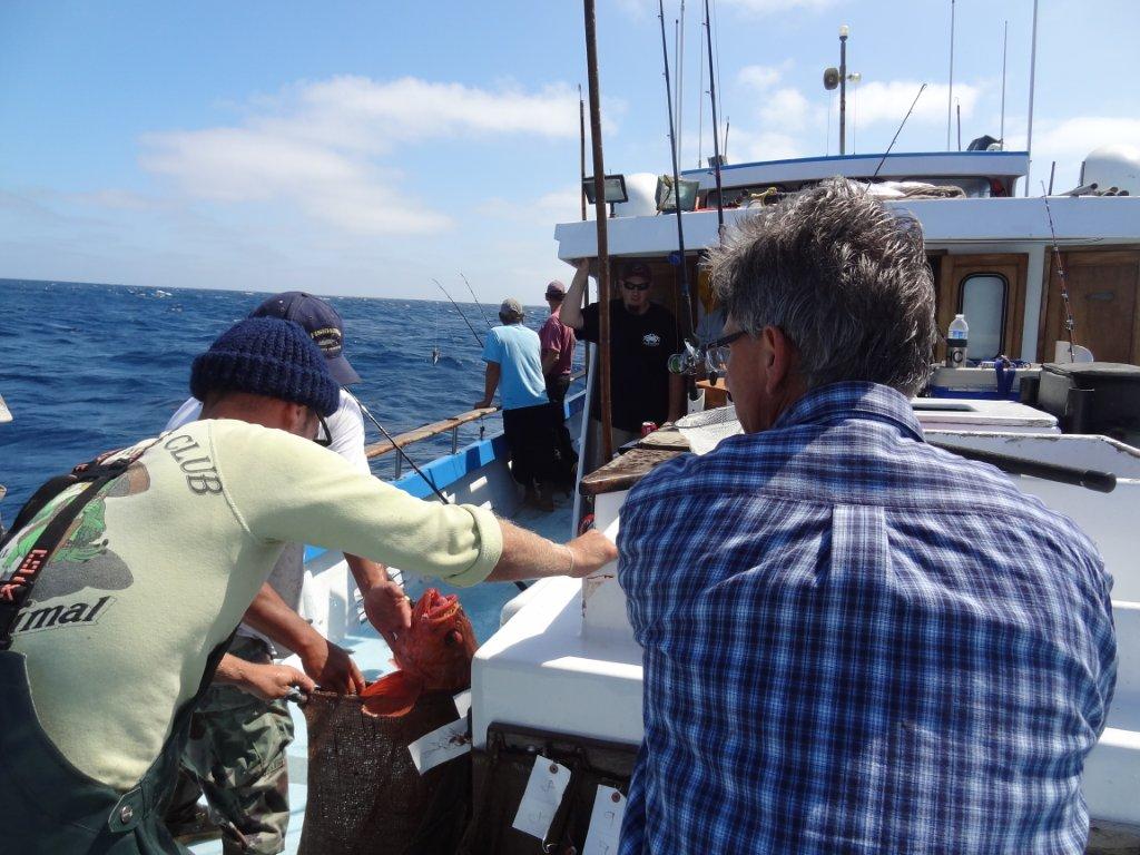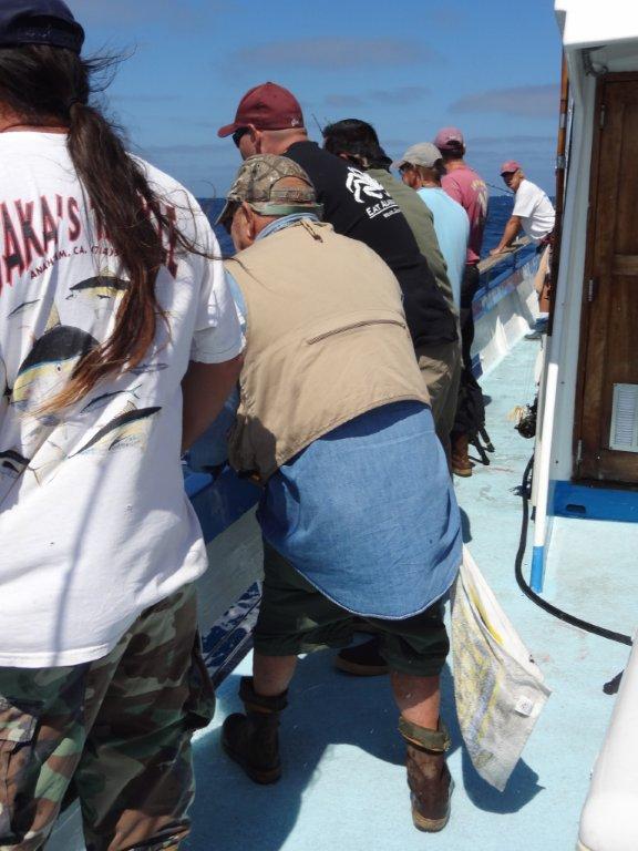 Trip #8: Boat: Thunderbird 1.5 day Departs: Thursday, October 2th Fishing: October 3th, 4th Returns: October 4th pm Thunderbird Crew: Capt. Jeff Capt. Chris Jose Nate Goofy Cast of Characters: Bill Parks Steve Morgan Riley Dyer Jim Bertella Justin Becker Jacob Richards Luke Burson Paul Morgan Mike Allen (Scribe) Patrick Thunyakij Bruce Granse Kevon Kong Michael Harris Ryan Burson Oscar Ochoa Ed Chutney Jeff Allen Andrew Ron Shrout Murphy Parks Romeo Ochoa James Harris Ozzie Baktiari Arriving for a trip in the month of October at Newport Landing is a far easier experience then one would have in the summer months of June – September. The dread of driving through the neighborhood in hopes of an empty space large enough to accommodate the larger trucks that many of the club members own seems to dissipate as the offerings are far more plentiful. While the welcomed views of summer also tend to be less abundant, the ensemble of club members arrived with plenty of time to catch-up on some conversations and enjoy a beverage or two.