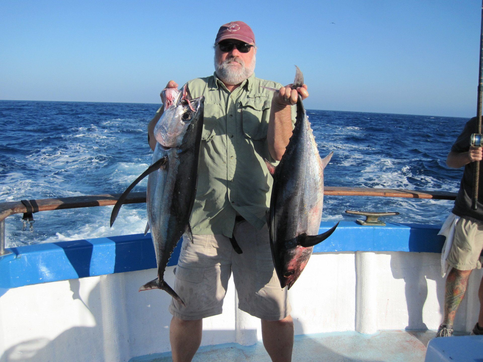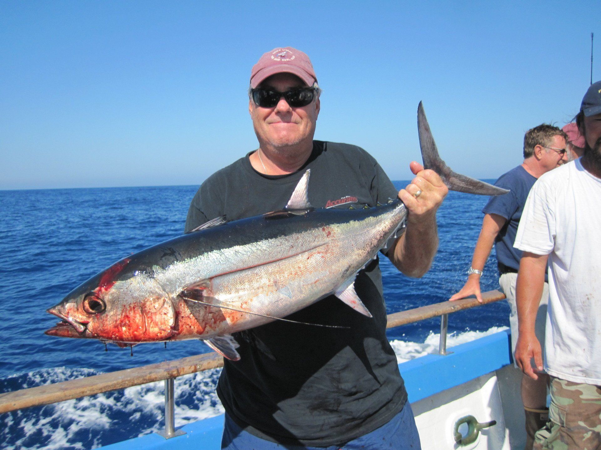 Trip #7: Boat: Thunderbird 2.5 day Departs: Tuesday, September 16th Fishing: September 17th, 18th Returns: September 19th am Thunderbird Crew: Jeff Markland- Captain Steve Raby- 2nd Captain Carmelo in the Galley Jose & Nate on deck The fishing schedule for 2025 has two 2 1/2 day trips and Trip #7 was the second one. Historically the 2 1/2 dayers fill quickly at the Annual Sign-Up Meeting. This was not the case this year as this trip only filled to about half during the Lottery and the rest of the spots were taken by guests. Here are the members who were on the trip: Gary Thompson, Steve Morgan, Mike Barton, Alex Mesko, Mike Higa, Bill Parks, John Lenker, Steve Lenker, Kyle Shimigawa, and Luke Burson (trip scribe). That is 10 members and the other 13 were all guests. The Club owns the following a big thank you for committing guests to this trip because without them this trip would have put a financial burden on the Club of $8,125. And the Club simply does not have those funds so the trip would have been cancelled. A special thank you to Mike Barton with 5 guests, Steve Lenker with 3, Mike Higa with 2, guests, Steve Morgan with 1 guest, Bryan Upcraft with 1 guest, and Luke Burson with 1 guest. And all the guests fit in perfectly and made it a good group to fish, sleep, and eat with for 2 1/2 days. As the trip approached Gary sent out information a week before with information about the trip. At that point the weather looked good and the fish counts were encouraging. As the trip got closer Gary sent out more information with the weather holding plus the Thunderbird getting limits on their weekend 2 1/2 dayer. All were feeling pretty optimistic about two things that had been missing on previous trips……nice weather and good fishing. On the day of departure, the usual members arrived early to ensure that they would board first to secure the tackle spots that are important to them, Others started to drift in throughout the afternoon. All were challenged with parking because of the local Wednesday street sweeping. Some were luckier than others but everyone found a parking spot. And then to our surprise the Thunderbird arrived close to 4 PM and it was obvious why…..very good fishing. To be specific they had back-to-back multi-day trips with limits of BF. And the buzz for all on the dock was pretty strong. They caught the fish at the Cortez, some at night near SCI but most during the day on bait. We asked about the bait and the group did not have good things to say. We quickly put two and two together that the fishing must be pretty good to do that well with poor bait. And another important item……NO STINKING FULL MOON! Jeff indicated we were headed back to Cortez and to save a little time we were going to take the direct course line around the east end of SCI. We’re expecting a flat smooth ride, we quickly learn that our course line had us in the rolley trough. It turned out to be anything but smooth. Our crew for the 2 1/2 trip was Jeff as our Captain, Steve as the 2nd Captain, Carmelo in the galley with Jose and Nat on deck. We have fished with them many times before so we knew we were in good hands for the 2 1/2 days. We stopped to load bait and to our surprise, that bait looked pretty good. The size could have been bigger as it was all medium to small-medium baits but it looked good. That even increased the anticipation of what was to come. As it turned out about 60% turned red while the rest was good bait. For the next two days, you really had to pick through what was in the hand wells to find the good ones. As we rolled into the “Bank” there was a pretty good electrical show to the west from about 3 AM to 5 AM plus some slight rain. And we could see some boats in the distance. We would learn that we would not be alone at Cortez Bank but because of the way the fish were spread out it would not make a difference. Jeff got the anchor down close to the position that they had success on the last trip and it took a little time for the fish to find us……and they did. It was a slow pick for the next 4 or 5 hours. Occasionally we would have 2 for 3 going but most of the time it was one at a time. The conditions were perfect, a strong current in the right direction and some breeze to keep the boat a little crossways to the current. Jeff said the conditions were perfect. As the morning continued there were two ways to get a bite: 1) hot bait close to the boat, or 2) long soak behind the boat. Although detailed records were not kept it seems that the hot baits close to the boat got 4 to 5 times the bites compared to the long soak. This getting bit close to the boat with hot baits was shared with all as it was working great for a few: light line (20#), small hooks (#6 or #8), the best bait in the well, and then give that bait 30 seconds, and if no bite wind in and do it again. And if the bait did not “swim” then cut your losses and wind in to do it again. Some fished that way and were rewarded, others continue to soak their baits. It was a little frustrating that so many were locked into soaking baits when the other method was working so well. It just must be too much work to change baits every 30 seconds and it is easier to soak them behind the boat. The few anglers who changed baits quickly did pretty very well while others did not……that’s fishing. The fish seem to leave us around 2 PM so Jeff decided to go looking in the direction of SCI. By heading back toward SCI we would have a shot at bigger fish at night. We ran all the way back to within 5 miles of SCI and never saw anything on the electronics. When it got dark the effort changed to working the area where the BF had been at night but after about 5 hours of looking without a single mark on the electronics Jeff decided to head back to Cortez to fish the same location we were in that morning. Carmelo prepared an excellent dinner of marinated chicken, basmati rice, and a Greek-style salad. And of course, it was finished 