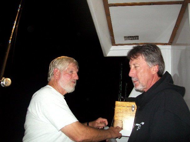 Trip #7: Boat: Thunderbird 2.5 day Departs: Tuesday, September 16th Fishing: September 17th, 18th Returns: September 19th am Thunderbird Crew: Jeff Markland- Captain Steve Raby- 2nd Captain Carmelo in the Galley Jose & Nate on deck The fishing schedule for 2025 has two 2 1/2 day trips and Trip #7 was the second one. Historically the 2 1/2 dayers fill quickly at the Annual Sign-Up Meeting. This was not the case this year as this trip only filled to about half during the Lottery and the rest of the spots were taken by guests. Here are the members who were on the trip: Gary Thompson, Steve Morgan, Mike Barton, Alex Mesko, Mike Higa, Bill Parks, John Lenker, Steve Lenker, Kyle Shimigawa, and Luke Burson (trip scribe). That is 10 members and the other 13 were all guests. The Club owns the following a big thank you for committing guests to this trip because without them this trip would have put a financial burden on the Club of $8,125. And the Club simply does not have those funds so the trip would have been cancelled. A special thank you to Mike Barton with 5 guests, Steve Lenker with 3, Mike Higa with 2, guests, Steve Morgan with 1 guest, Bryan Upcraft with 1 guest, and Luke Burson with 1 guest. And all the guests fit in perfectly and made it a good group to fish, sleep, and eat with for 2 1/2 days. As the trip approached Gary sent out information a week before with information about the trip. At that point the weather looked good and the fish counts were encouraging. As the trip got closer Gary sent out more information with the weather holding plus the Thunderbird getting limits on their weekend 2 1/2 dayer. All were feeling pretty optimistic about two things that had been missing on previous trips……nice weather and good fishing. On the day of departure, the usual members arrived early to ensure that they would board first to secure the tackle spots that are important to them, Others started to drift in throughout the afternoon. All were challenged with parking because of the local Wednesday street sweeping. Some were luckier than others but everyone found a parking spot. And then to our surprise the Thunderbird arrived close to 4 PM and it was obvious why…..very good fishing. To be specific they had back-to-back multi-day trips with limits of BF. And the buzz for all on the dock was pretty strong. They caught the fish at the Cortez, some at night near SCI but most during the day on bait. We asked about the bait and the group did not have good things to say. We quickly put two and two together that the fishing must be pretty good to do that well with poor bait. And another important item……NO STINKING FULL MOON! Jeff indicated we were headed back to Cortez and to save a little time we were going to take the direct course line around the east end of SCI. We’re expecting a flat smooth ride, we quickly learn that our course line had us in the rolley trough. It turned out to be anything but smooth. Our crew for the 2 1/2 trip was Jeff as our Captain, Steve as the 2nd Captain, Carmelo in the galley with Jose and Nat on deck. We have fished with them many times before so we knew we were in good hands for the 2 1/2 days. We stopped to load bait and to our surprise, that bait looked pretty good. The size could have been bigger as it was all medium to small-medium baits but it looked good. That even increased the anticipation of what was to come. As it turned out about 60% turned red while the rest was good bait. For the next two days, you really had to pick through what was in the hand wells to find the good ones. As we rolled into the “Bank” there was a pretty good electrical show to the west from about 3 AM to 5 AM plus some slight rain. And we could see some boats in the distance. We would learn that we would not be alone at Cortez Bank but because of the way the fish were spread out it would not make a difference. Jeff got the anchor down close to the position that they had success on the last trip and it took a little time for the fish to find us……and they did. It was a slow pick for the next 4 or 5 hours. Occasionally we would have 2 for 3 going but most of the time it was one at a time. The conditions were perfect, a strong current in the right direction and some breeze to keep the boat a little crossways to the current. Jeff said the conditions were perfect. As the morning continued there were two ways to get a bite: 1) hot bait close to the boat, or 2) long soak behind the boat. Although detailed records were not kept it seems that the hot baits close to the boat got 4 to 5 times the bites compared to the long soak. This getting bit close to the boat with hot baits was shared with all as it was working great for a few: light line (20#), small hooks (#6 or #8), the best bait in the well, and then give that bait 30 seconds, and if no bite wind in and do it again. And if the bait did not “swim” then cut your losses and wind in to do it again. Some fished that way and were rewarded, others continue to soak their baits. It was a little frustrating that so many were locked into soaking baits when the other method was working so well. It just must be too much work to change baits every 30 seconds and it is easier to soak them behind the boat. The few anglers who changed baits quickly did pretty very well while others did not……that’s fishing. The fish seem to leave us around 2 PM so Jeff decided to go looking in the direction of SCI. By heading back toward SCI we would have a shot at bigger fish at night. We ran all the way back to within 5 miles of SCI and never saw anything on the electronics. When it got dark the effort changed to working the area where the BF had been at night but after about 5 hours of looking without a single mark on the electronics Jeff decided to head back to Cortez to fish the same location we were in that morning. Carmelo prepared an excellent dinner of marinated chicken, basmati rice, and a Greek-style salad. And of course, it was finished 