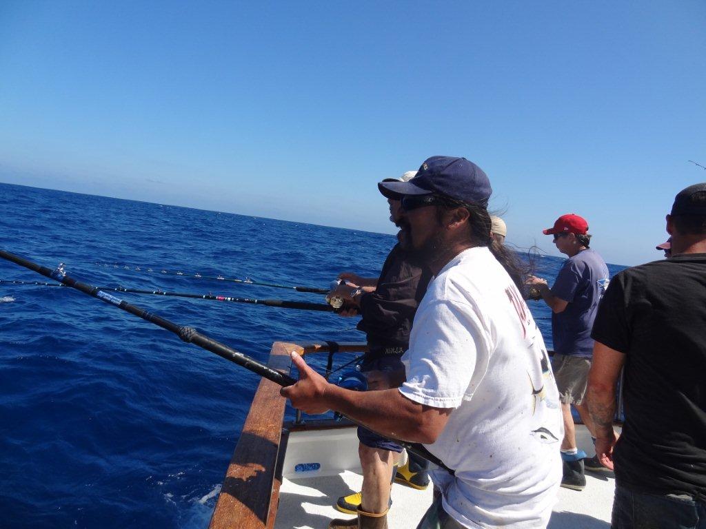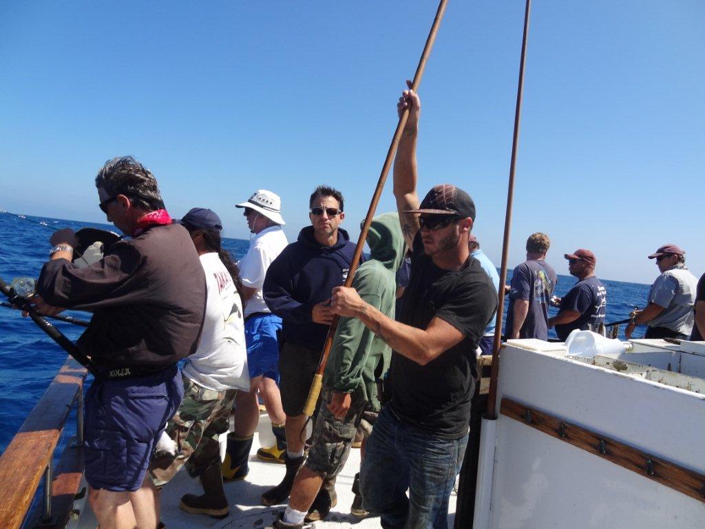 Trip #8: Boat: Thunderbird 1.5 day Departs: Thursday, October 2th Fishing: October 3th, 4th Returns: October 4th pm Thunderbird Crew: Capt. Jeff Capt. Chris Jose Nate Goofy Cast of Characters: Bill Parks Steve Morgan Riley Dyer Jim Bertella Justin Becker Jacob Richards Luke Burson Paul Morgan Mike Allen (Scribe) Patrick Thunyakij Bruce Granse Kevon Kong Michael Harris Ryan Burson Oscar Ochoa Ed Chutney Jeff Allen Andrew Ron Shrout Murphy Parks Romeo Ochoa James Harris Ozzie Baktiari Arriving for a trip in the month of October at Newport Landing is a far easier experience then one would have in the summer months of June – September. The dread of driving through the neighborhood in hopes of an empty space large enough to accommodate the larger trucks that many of the club members own seems to dissipate as the offerings are far more plentiful. While the welcomed views of summer also tend to be less abundant, the ensemble of club members arrived with plenty of time to catch-up on some conversations and enjoy a beverage or two.