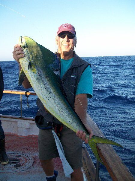Trip #6: Boat: Thunderbird 1.5 day Departs: Firday September 5th Fishing: September 5th - September 6th Returns: September 6th, AM Thunderbird Crew: Jeff Markland- Captain Steve Raby- 2nd Captain Jose & Nate on deck Carmelo in the Galley To everyone’s surprise the first to arrive on Thursday to get head of the line privileges was of all people Tony Beall! Damn! As the afternoon wore on into the evening, the remainer of the group made their way to the dock. The Thunderbird rolled in around 6:30pm and it was clear, fishing had been thoroughly trashed due to poor weather offshore. They fished San Clemente Island for two days for a handful of yellowtail, but good calico bass fishing. After I wandered down to the boat, and speaking with Jeff, confirmed the weather was forecast to be poor where the tuna had been, and they disappeared, and we would be relegated to fishing “an island or two”. So what did that mean? Well a very reliable squid light boat source had reported to Jeff that day that he had seen a large volume of yellowtail at Santa Barbara Island that same day. So Jeff said we will head there first and check it out, then scour the previous tuna grounds west of San Clemente Island later as we head to San Clemente Island to fish for bass and hopefully some yellowtail there. So off we went. We already had a few scoops of squid on the boat and the sardines we got were very good. Travel out was rather sporty as we had wind and swell and were traveling at a poor angle due to the course line required. 60 miles of shit weather does not make for sleeping very well. We arrived at Santa Barbara Island around 4:10am on the squid grounds and fished a couple areas in the front and back of the island for nothing. Screaming current- Dropper loop needed 16 oz to hold bottom in only 100 feet of water. There was no sign of the yellowtail from the day before. It figures. Around 8:45am Jeff said he had enough, pulled the plug and we headed to the next island via the tuna grounds. An interesting note was the wind had backed off and by 9:00am, it was actually pretty pleasant on the water. Spent the next several hours traveling and scouting the tuna grounds where the fish had been. Stopped on one spot on the sonar and had some fish under the boat for one missed bite on Luke’s drop shot rig. Arrived at the “9” on the west end of San Clemente Island to start. Heavy current and every sea lion at the island were there. Saw a couple Yellowtail boils but no bites. Moved to the north kelp at Northwest Harbor and the bass bit well for 20 minutes or so until the current backed off and the kelp floated. After that fished a number of spots “spot hopping” down the front side the rest of the day, a couple good bass bites and some pick bites, but no yellowtail to be found. A couple boils here and there but no volume or any biters. And all the sea lions we wanted. We were the only sportfishing boat there so we couldn’t “share the wealth” with anyone. The wind had come up again around mid-afternoon and made things pretty difficult as it was wind against the current all afternoon. Ended up in Pyramid Cove and fished in there until it was time to head home. Carmelo put out a very good dinner of tri-tip, potatoes, asparagus and salad, topped off with our usual Klondike Bar desert. Left for home at 10:00pm and another “sporty”, no sleep ride until inside Catalina. Arrived at around 4:15am, everyone unloaded and that was it! Trip total-NO “gamefish”, near boat limits of calico bass, some kept and most released, 1 really micro bonito, 1 barracuda, TWO Blue Perch! Also some miscellaneous whitefish and sheephead mixed in. Needless to say the old fixing axiom does apply to this trip: “You should have been here yesterday, wait until tomorrow” JP & Patch winner- Bill Parks- 4.5 lb Calico Bass One item that I find encouraging is the calico bass fishing at the island. The percentage of legal (14 inch) and above fish is way up from the past, and although the bite is not fully consistent, if you work at it, you can get some decent ones. Also, it seems the quantity of calicos is increasing as compared to the last couple of years. I am convinced that the 14” size limit which allows the spawners to grow enough to spawn may actually be contributing. Time will tell. Well that’s it! Next up, 2.5 day trip leaving Tuesday 9/16 returning Friday early morning 9/19. Your Scribe (Again)- Gary Thompson
