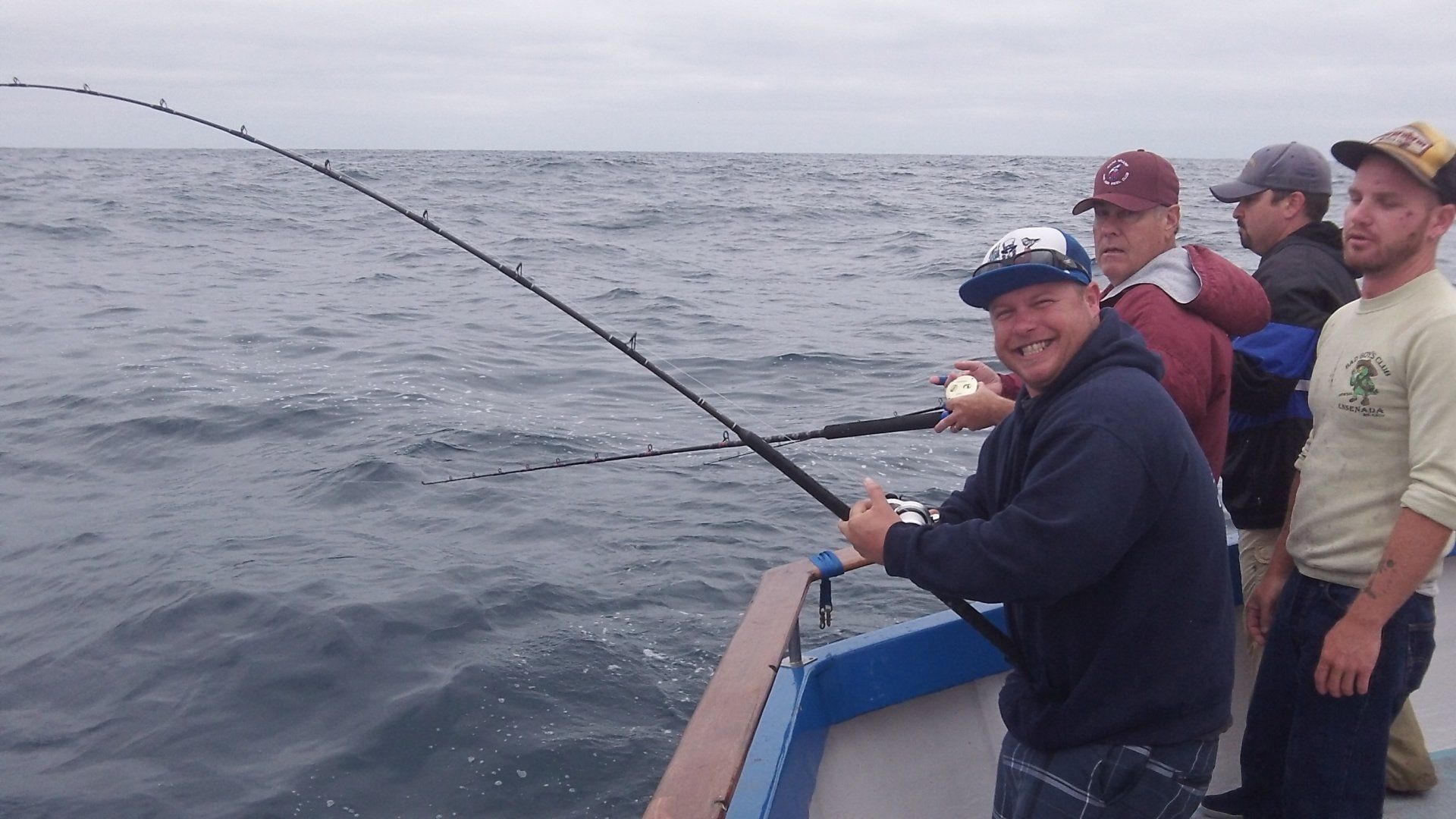 Trip #8: Boat: Thunderbird 1.5 day Departs: Thursday, October 2th Fishing: October 3th, 4th Returns: October 4th pm Thunderbird Crew: Capt. Jeff Capt. Chris Jose Nate Goofy Cast of Characters: Bill Parks Steve Morgan Riley Dyer Jim Bertella Justin Becker Jacob Richards Luke Burson Paul Morgan Mike Allen (Scribe) Patrick Thunyakij Bruce Granse Kevon Kong Michael Harris Ryan Burson Oscar Ochoa Ed Chutney Jeff Allen Andrew Ron Shrout Murphy Parks Romeo Ochoa James Harris Ozzie Baktiari Arriving for a trip in the month of October at Newport Landing is a far easier experience then one would have in the summer months of June – September. The dread of driving through the neighborhood in hopes of an empty space large enough to accommodate the larger trucks that many of the club members own seems to dissipate as the offerings are far more plentiful. While the welcomed views of summer also tend to be less abundant, the ensemble of club members arrived with plenty of time to catch-up on some conversations and enjoy a beverage or two.
