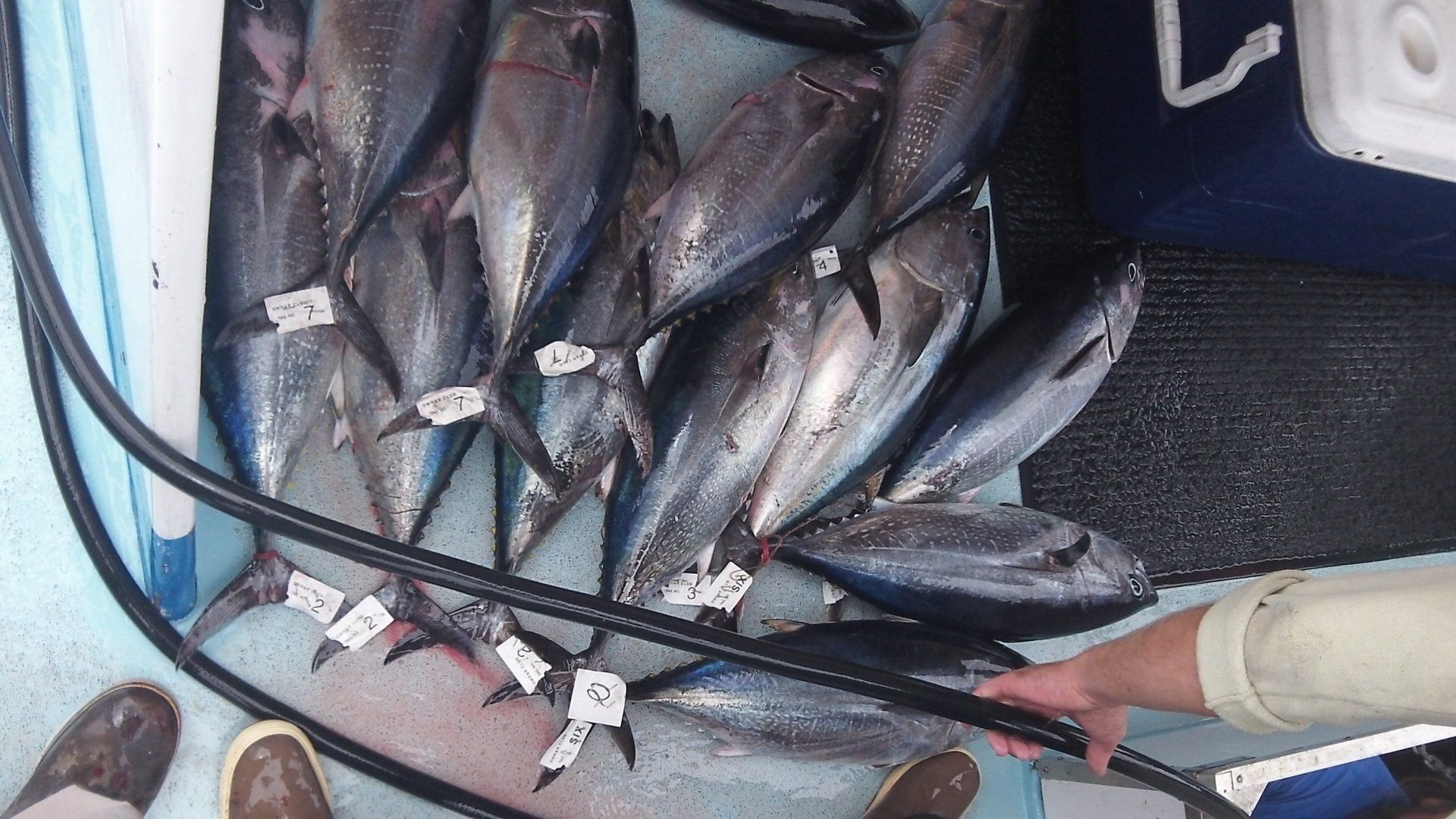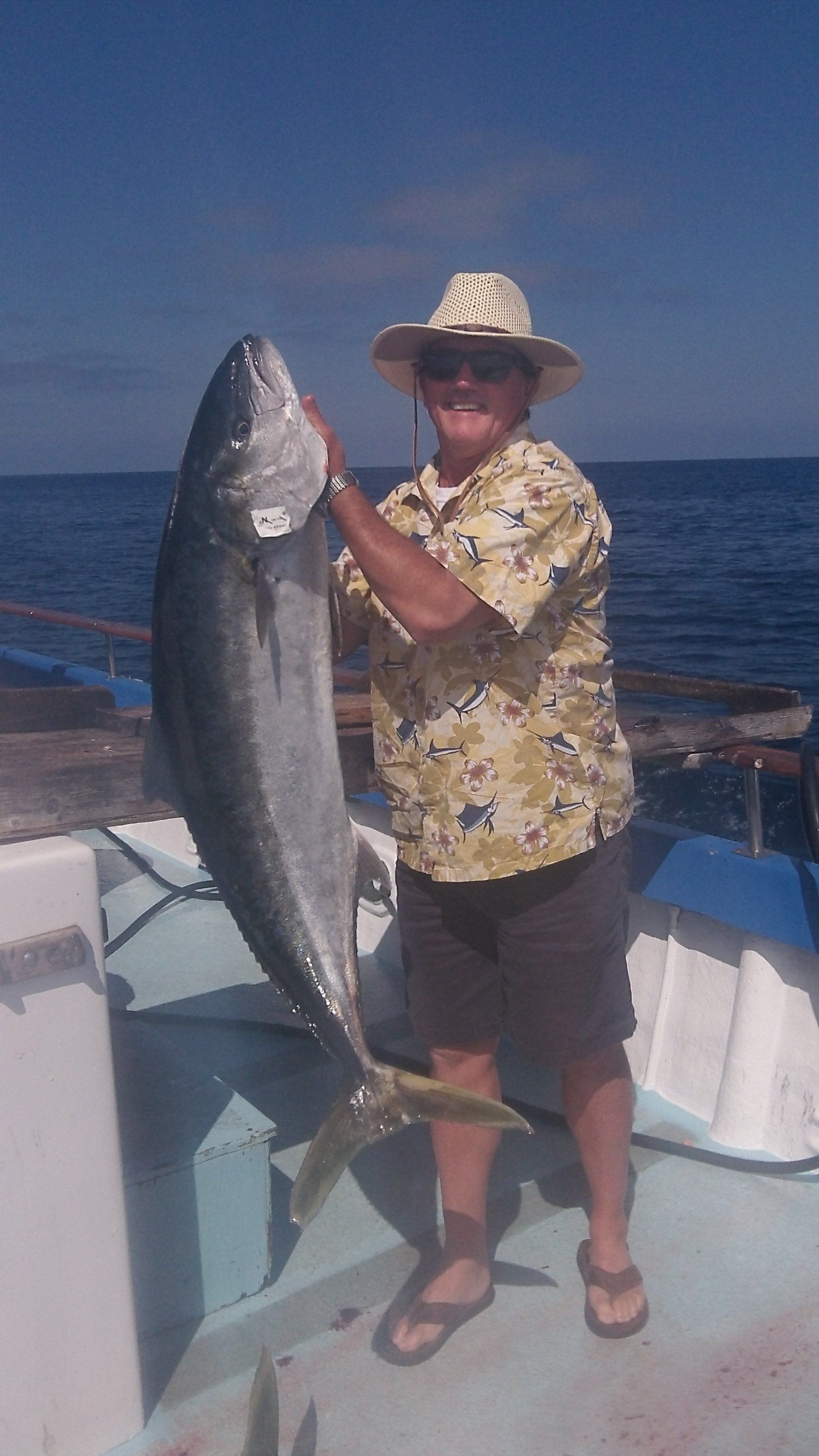 Trip #3: Boat: Thunderbird 2 day Departs: Thursday July 24 Fishing: July 25 and 26 Returns: July 26 pm Trip 3 started as usual with people arriving at Newport Landing at all hours of the day and anticipation for fishing high. The preliminary reports from Gary Thompson were not great. Bait was going to be an issue. Anchovies were sick, too hot for squid, and no sardines. Nevertheless, everyone was ready to go. Due to some late cancellations (bummer), there were 21 passengers on the trip. Gary gave the pre-trip update before boarding with the news that we would make the ride down to Dana Wharf, where there were good sardines for bait. That was the good news. The bad news was that it was going to be a bumpy ride out and wind was going to be an issue, and we probably wouldn’t make it to San Clemente Island. Our initial destination would be Catalina. So, at 9pm off we went. Friday morning saw us anchored at China cove at Catalina. I haven’t been with the club long, but my understanding from some of the older members is that the club hasn’t fished Catalina in many years. I was up at 3:30ish and there were a few hearty souls trying to make squid bait. 2-3 at a time on squid jigs, and eventually we had a decent amount of squid to go along with the sardines. Possibly a good sign. Gradually all the fisherman got lines in the water, with most people dropping down by 5am, waiting for the fish to bite. Well, the yellowtail and white seabass were a no show. We did have a pretty incredible black seabass bite. A total of 6 were hooked, 3 broke off, and 3 were landed (all by Jim Bertella) and released. At 7:30 Captain Chris decided to make the move over to San Clemente Island. We looked for kelp patties and bluefin on the way. Again, fish were a no show (there’s a theme happening here). Made it to Clemente about 11:30. We spent the rest of the day fighting winds at Clemente. Most of the fishing was close to the island with catch and release calico fishing, although a few nice ones were kept. A few small yellowtail were caught on bait, and one on a surface iron. On any other trip these probably would have been released, but beggars can’t be choosers. Final count for day 1 was 9 yellowtail. Gary Thompson won jackpot. We anchored at Clemente for Friday night. Overnight the squid came up and we woke to plenty of squid in the bait tanks. We started fishing early Saturday morning by dropping down for yellowtail. Once again, the fish were a no show. It wasn’t for lack of trying. All the passengers dropped lines and were giving it the best effort. Enthusiasm remained high. A small halibut was caught, along with a few barracuda. At 7:30 we pulled anchor and started looking for bluefin. At 8, a small bluefin was caught on the troll by one of our guests. No other fish were willing to bite and we kept looking. No luck. At mid-morning, Chris set us up for some rockfishing drifts. Most of the fish caught were salmon grouper, but people at least had a shot to fill their bags. After the rockfishing, we were back on the troll. We covered a wide area of ground. I believe at one point we may have entered into Mexican waters. We saw no bluefin during the troll. Finally, we had to start heading back to the landing. As we were heading north, we saw one our first and last kelp patty. It would be our last stop for the trip. On the stop, one yellowtail was caught using a colt sniper. Like the yellowtail on day 1, it wasn’t big (generous to call it 8 pounds), but it was a keeper and the jackpot fish (sad but true). Final count for day 2 was 1 yellowtail, 1 bluefin on the troll, 1 halibut, and a couple of barracuda. Brian Drazba won jackpot. Despite the rough weather and challenging fishing conditions. Captain and crew were great as always. Never gave up. And I believe all club members and guests had a good time. We can’t always have great days and it just gets us ready for the next trip. Submitted respectfully, Brian Drazba