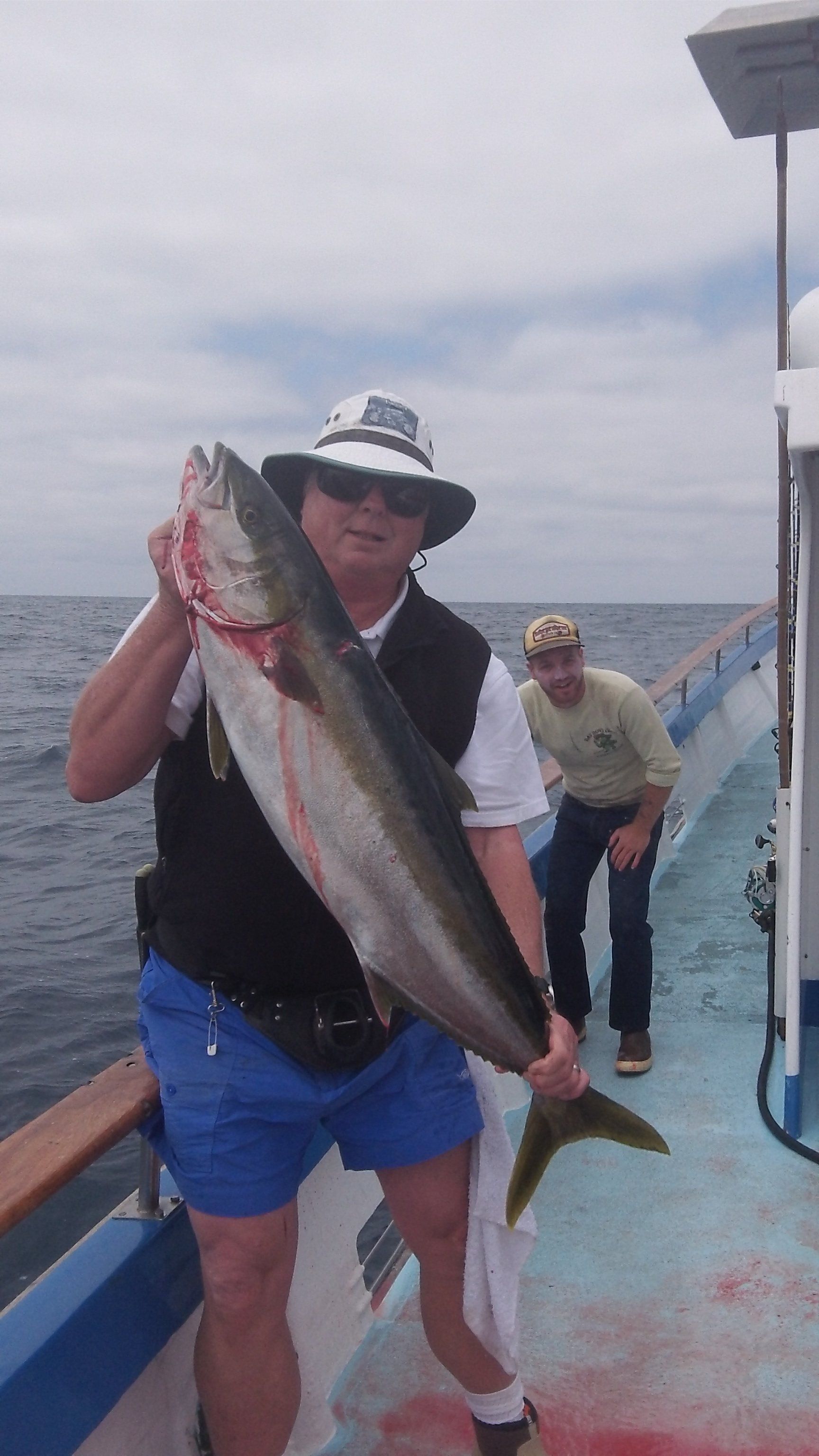 Trip #4: Boat: Thunderbird 2 day Departs: Thursday August 7th Fishing: August 8th, 9th Returns: August 9th pm Trip 4 started as usual with people arriving at Newport Landing at all hours of the day with anticipation of fishing. The preliminary reports from Gary Thompson were all too familiar to what we’ve seen this year. Bait was going to be an issue. And last but not least, was the fish seemed to pop up one day and then disappear the next. Nevertheless, everyone was ready to go. Friday morning saw us anchored at the usual cove off SCI. Weather was OK; fishable, but not a lot of fish. But the ones we caught were quality yellowtail and white sea bass. The sea lions provided ample entertainment …err I mean frustration. We hopped around to a few spots picking up the occasional calico but not much. Day 1 jackpot went to Alex Arthur (Justin Becker’s Guest) with the patch going to Nick Burson for some chunky YT’s Day 2 started much as it did Day 1 but the weather was worse than Day 1. We looked here and there with only 3 yellowtail to show for our efforts. Eventually, the Thunderbird turned towards offshore waters to try our luck at some bluefin. Unfortunately, the fish didn’t get the memo and we saw neither sign or had any bites. Mr, “Hey that’s my fish” Tom Hill was the lucky jackpot and patch winner for Day 2 with a 15# YT. So, there you have it, not a, “Hey you missed a great trip” kind ‘a trip but per usual, the members of our club all seemed to enjoy doing what we do. It’s not always about the fish; it’s about the people and the experience. LOL! Who am I kidding…we all want more fish. Until next time, step to the right/left and take up your slack.