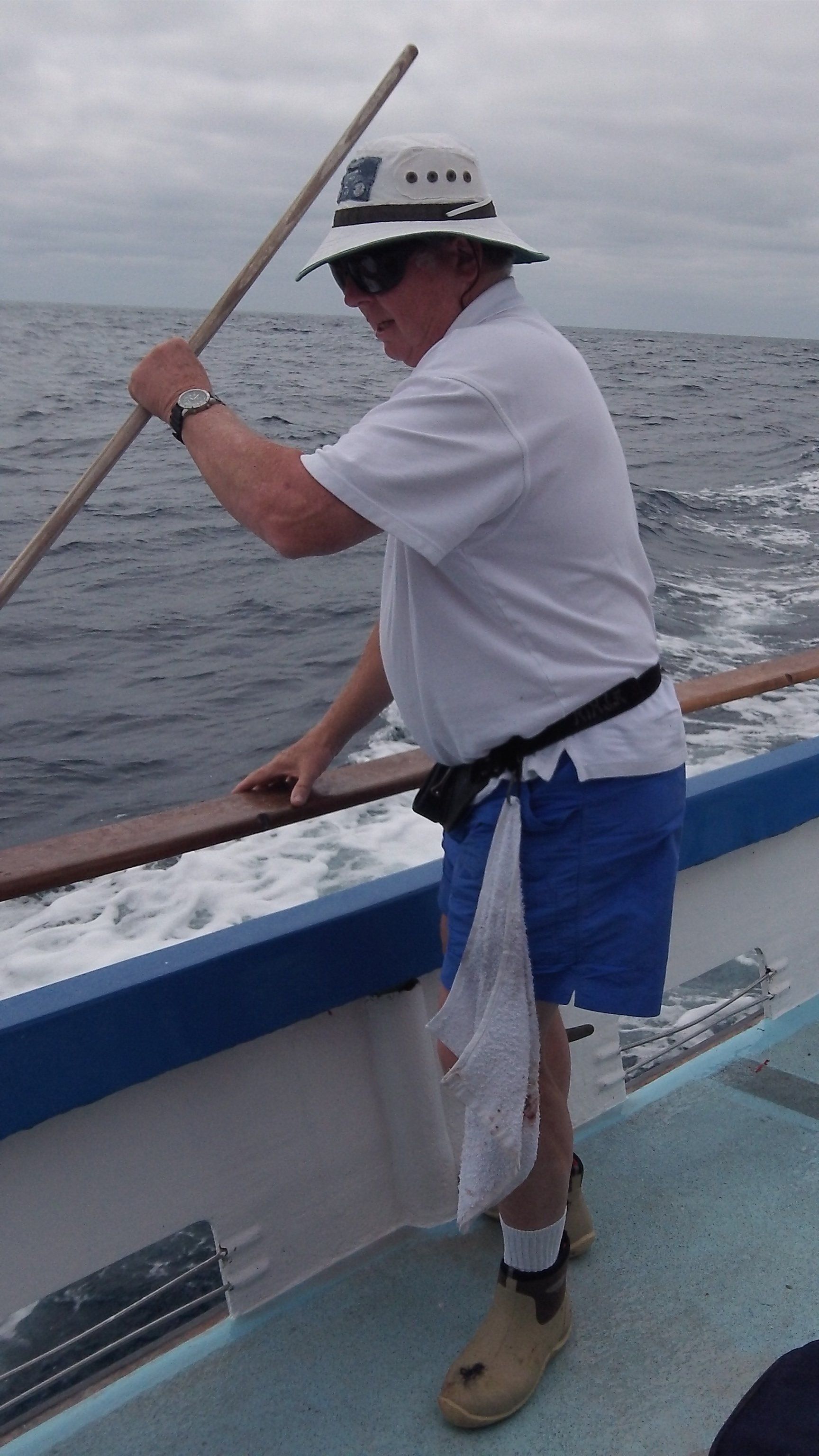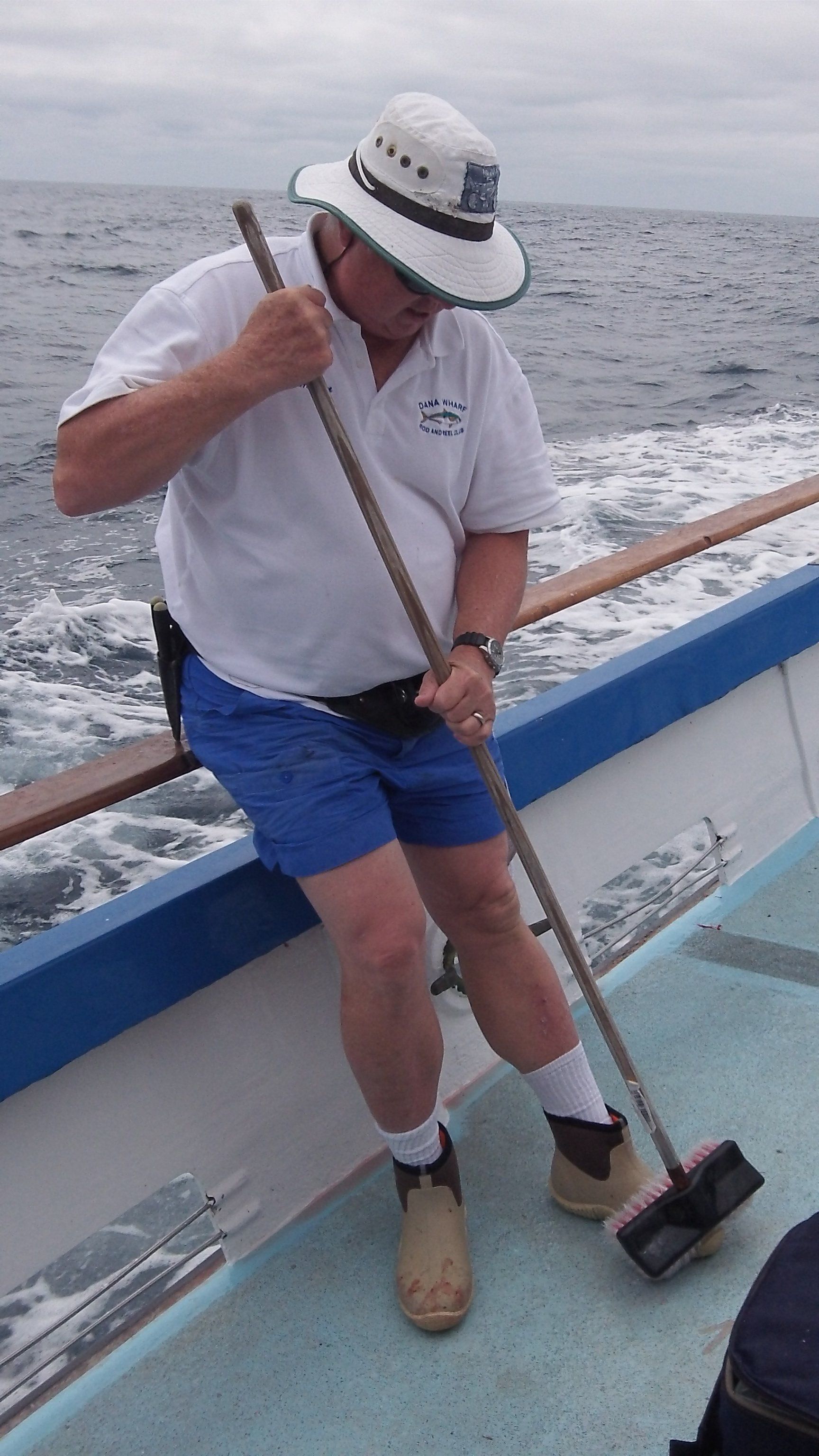 Trip #6: Boat: Thunderbird 1.5 day Departs: Firday September 5th Fishing: September 5th - September 6th Returns: September 6th, AM Thunderbird Crew: Jeff Markland- Captain Steve Raby- 2nd Captain Jose & Nate on deck Carmelo in the Galley To everyone’s surprise the first to arrive on Thursday to get head of the line privileges was of all people Tony Beall! Damn! As the afternoon wore on into the evening, the remainer of the group made their way to the dock. The Thunderbird rolled in around 6:30pm and it was clear, fishing had been thoroughly trashed due to poor weather offshore. They fished San Clemente Island for two days for a handful of yellowtail, but good calico bass fishing. After I wandered down to the boat, and speaking with Jeff, confirmed the weather was forecast to be poor where the tuna had been, and they disappeared, and we would be relegated to fishing “an island or two”. So what did that mean? Well a very reliable squid light boat source had reported to Jeff that day that he had seen a large volume of yellowtail at Santa Barbara Island that same day. So Jeff said we will head there first and check it out, then scour the previous tuna grounds west of San Clemente Island later as we head to San Clemente Island to fish for bass and hopefully some yellowtail there. So off we went. We already had a few scoops of squid on the boat and the sardines we got were very good. Travel out was rather sporty as we had wind and swell and were traveling at a poor angle due to the course line required. 60 miles of shit weather does not make for sleeping very well. We arrived at Santa Barbara Island around 4:10am on the squid grounds and fished a couple areas in the front and back of the island for nothing. Screaming current- Dropper loop needed 16 oz to hold bottom in only 100 feet of water. There was no sign of the yellowtail from the day before. It figures. Around 8:45am Jeff said he had enough, pulled the plug and we headed to the next island via the tuna grounds. An interesting note was the wind had backed off and by 9:00am, it was actually pretty pleasant on the water. Spent the next several hours traveling and scouting the tuna grounds where the fish had been. Stopped on one spot on the sonar and had some fish under the boat for one missed bite on Luke’s drop shot rig. Arrived at the “9” on the west end of San Clemente Island to start. Heavy current and every sea lion at the island were there. Saw a couple Yellowtail boils but no bites. Moved to the north kelp at Northwest Harbor and the bass bit well for 20 minutes or so until the current backed off and the kelp floated. After that fished a number of spots “spot hopping” down the front side the rest of the day, a couple good bass bites and some pick bites, but no yellowtail to be found. A couple boils here and there but no volume or any biters. And all the sea lions we wanted. We were the only sportfishing boat there so we couldn’t “share the wealth” with anyone. The wind had come up again around mid-afternoon and made things pretty difficult as it was wind against the current all afternoon. Ended up in Pyramid Cove and fished in there until it was time to head home. Carmelo put out a very good dinner of tri-tip, potatoes, asparagus and salad, topped off with our usual Klondike Bar desert. Left for home at 10:00pm and another “sporty”, no sleep ride until inside Catalina. Arrived at around 4:15am, everyone unloaded and that was it! Trip total-NO “gamefish”, near boat limits of calico bass, some kept and most released, 1 really micro bonito, 1 barracuda, TWO Blue Perch! Also some miscellaneous whitefish and sheephead mixed in. Needless to say the old fixing axiom does apply to this trip: “You should have been here yesterday, wait until tomorrow” JP & Patch winner- Bill Parks- 4.5 lb Calico Bass One item that I find encouraging is the calico bass fishing at the island. The percentage of legal (14 inch) and above fish is way up from the past, and although the bite is not fully consistent, if you work at it, you can get some decent ones. Also, it seems the quantity of calicos is increasing as compared to the last couple of years. I am convinced that the 14” size limit which allows the spawners to grow enough to spawn may actually be contributing. Time will tell. Well that’s it! Next up, 2.5 day trip leaving Tuesday 9/16 returning Friday early morning 9/19. Your Scribe (Again)- Gary Thompson