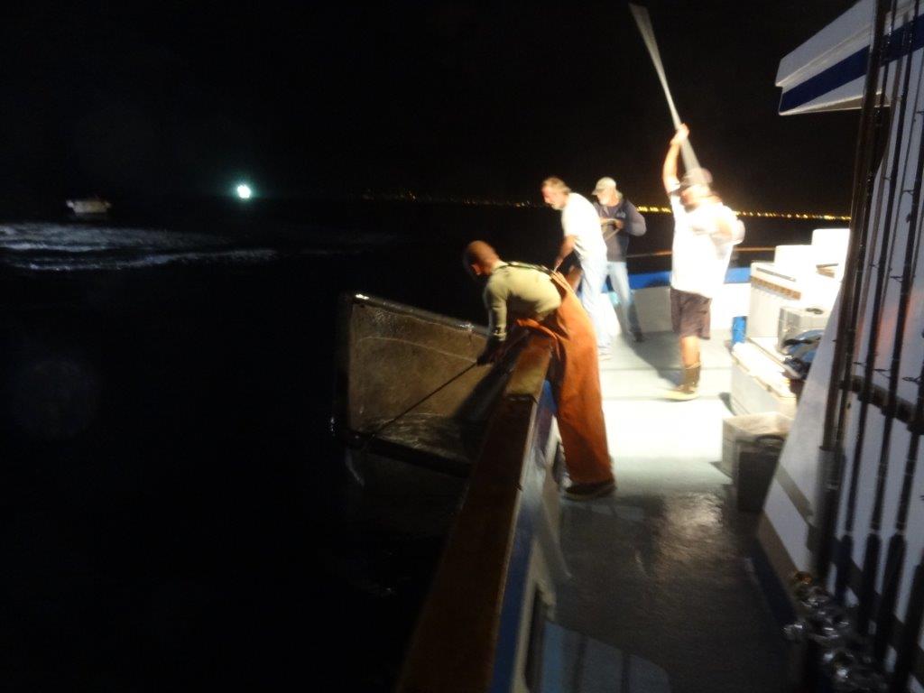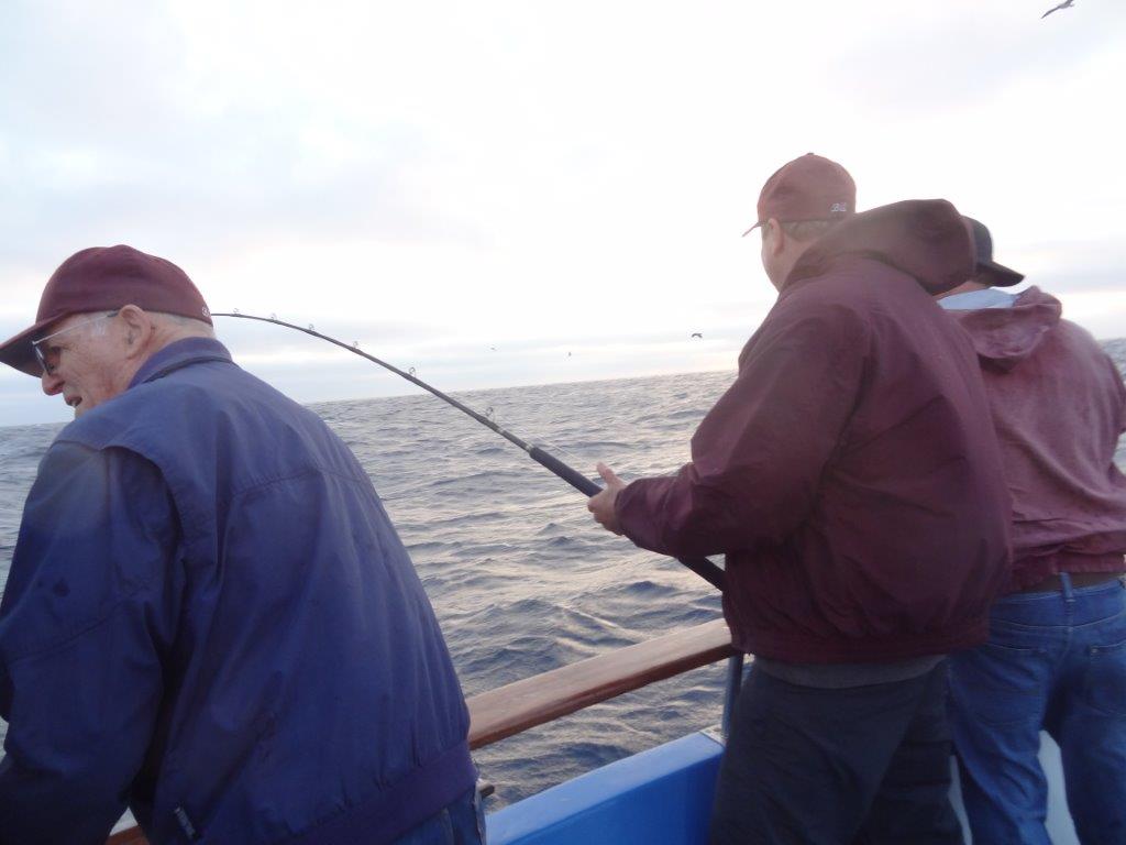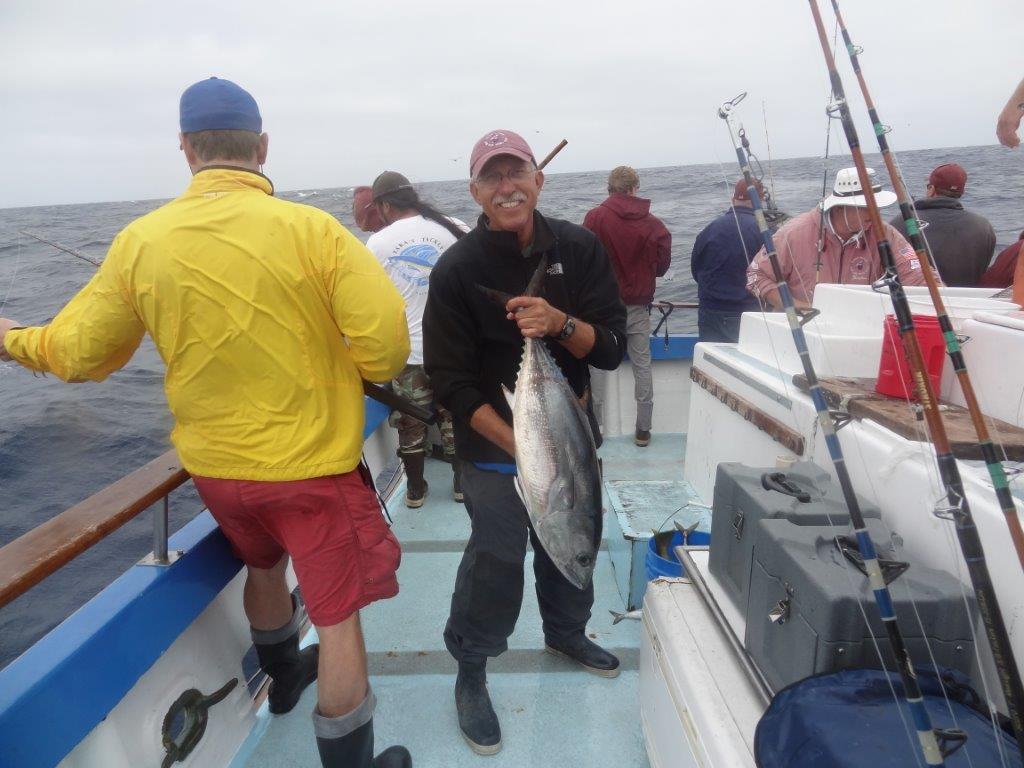 Trip #8: Boat: Thunderbird 1.5 day Departs: Thursday, October 2th Fishing: October 3th, 4th Returns: October 4th pm Thunderbird Crew: Capt. Jeff Capt. Chris Jose Nate Goofy Cast of Characters: Bill Parks Steve Morgan Riley Dyer Jim Bertella Justin Becker Jacob Richards Luke Burson Paul Morgan Mike Allen (Scribe) Patrick Thunyakij Bruce Granse Kevon Kong Michael Harris Ryan Burson Oscar Ochoa Ed Chutney Jeff Allen Andrew Ron Shrout Murphy Parks Romeo Ochoa James Harris Ozzie Baktiari Arriving for a trip in the month of October at Newport Landing is a far easier experience then one would have in the summer months of June – September. The dread of driving through the neighborhood in hopes of an empty space large enough to accommodate the larger trucks that many of the club members own seems to dissipate as the offerings are far more plentiful. While the welcomed views of summer also tend to be less abundant, the ensemble of club members arrived with plenty of time to catch-up on some conversations and enjoy a beverage or two.
