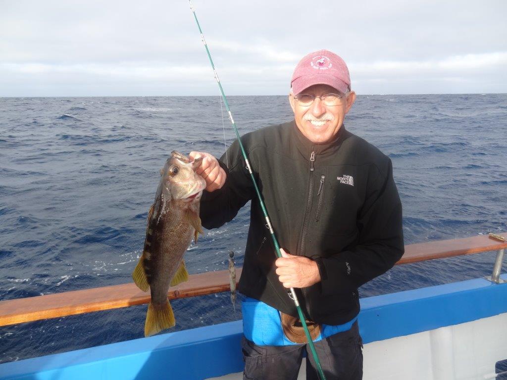 Trip #6: Boat: Thunderbird 1.5 day Departs: Firday September 5th Fishing: September 5th - September 6th Returns: September 6th, AM Thunderbird Crew: Jeff Markland- Captain Steve Raby- 2nd Captain Jose & Nate on deck Carmelo in the Galley To everyone’s surprise the first to arrive on Thursday to get head of the line privileges was of all people Tony Beall! Damn! As the afternoon wore on into the evening, the remainer of the group made their way to the dock. The Thunderbird rolled in around 6:30pm and it was clear, fishing had been thoroughly trashed due to poor weather offshore. They fished San Clemente Island for two days for a handful of yellowtail, but good calico bass fishing. After I wandered down to the boat, and speaking with Jeff, confirmed the weather was forecast to be poor where the tuna had been, and they disappeared, and we would be relegated to fishing “an island or two”. So what did that mean? Well a very reliable squid light boat source had reported to Jeff that day that he had seen a large volume of yellowtail at Santa Barbara Island that same day. So Jeff said we will head there first and check it out, then scour the previous tuna grounds west of San Clemente Island later as we head to San Clemente Island to fish for bass and hopefully some yellowtail there. So off we went. We already had a few scoops of squid on the boat and the sardines we got were very good. Travel out was rather sporty as we had wind and swell and were traveling at a poor angle due to the course line required. 60 miles of shit weather does not make for sleeping very well. We arrived at Santa Barbara Island around 4:10am on the squid grounds and fished a couple areas in the front and back of the island for nothing. Screaming current- Dropper loop needed 16 oz to hold bottom in only 100 feet of water. There was no sign of the yellowtail from the day before. It figures. Around 8:45am Jeff said he had enough, pulled the plug and we headed to the next island via the tuna grounds. An interesting note was the wind had backed off and by 9:00am, it was actually pretty pleasant on the water. Spent the next several hours traveling and scouting the tuna grounds where the fish had been. Stopped on one spot on the sonar and had some fish under the boat for one missed bite on Luke’s drop shot rig. Arrived at the “9” on the west end of San Clemente Island to start. Heavy current and every sea lion at the island were there. Saw a couple Yellowtail boils but no bites. Moved to the north kelp at Northwest Harbor and the bass bit well for 20 minutes or so until the current backed off and the kelp floated. After that fished a number of spots “spot hopping” down the front side the rest of the day, a couple good bass bites and some pick bites, but no yellowtail to be found. A couple boils here and there but no volume or any biters. And all the sea lions we wanted. We were the only sportfishing boat there so we couldn’t “share the wealth” with anyone. The wind had come up again around mid-afternoon and made things pretty difficult as it was wind against the current all afternoon. Ended up in Pyramid Cove and fished in there until it was time to head home. Carmelo put out a very good dinner of tri-tip, potatoes, asparagus and salad, topped off with our usual Klondike Bar desert. Left for home at 10:00pm and another “sporty”, no sleep ride until inside Catalina. Arrived at around 4:15am, everyone unloaded and that was it! Trip total-NO “gamefish”, near boat limits of calico bass, some kept and most released, 1 really micro bonito, 1 barracuda, TWO Blue Perch! Also some miscellaneous whitefish and sheephead mixed in. Needless to say the old fixing axiom does apply to this trip: “You should have been here yesterday, wait until tomorrow” JP & Patch winner- Bill Parks- 4.5 lb Calico Bass One item that I find encouraging is the calico bass fishing at the island. The percentage of legal (14 inch) and above fish is way up from the past, and although the bite is not fully consistent, if you work at it, you can get some decent ones. Also, it seems the quantity of calicos is increasing as compared to the last couple of years. I am convinced that the 14” size limit which allows the spawners to grow enough to spawn may actually be contributing. Time will tell. Well that’s it! Next up, 2.5 day trip leaving Tuesday 9/16 returning Friday early morning 9/19. Your Scribe (Again)- Gary Thompson