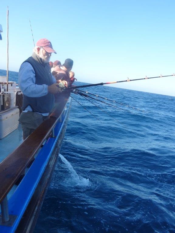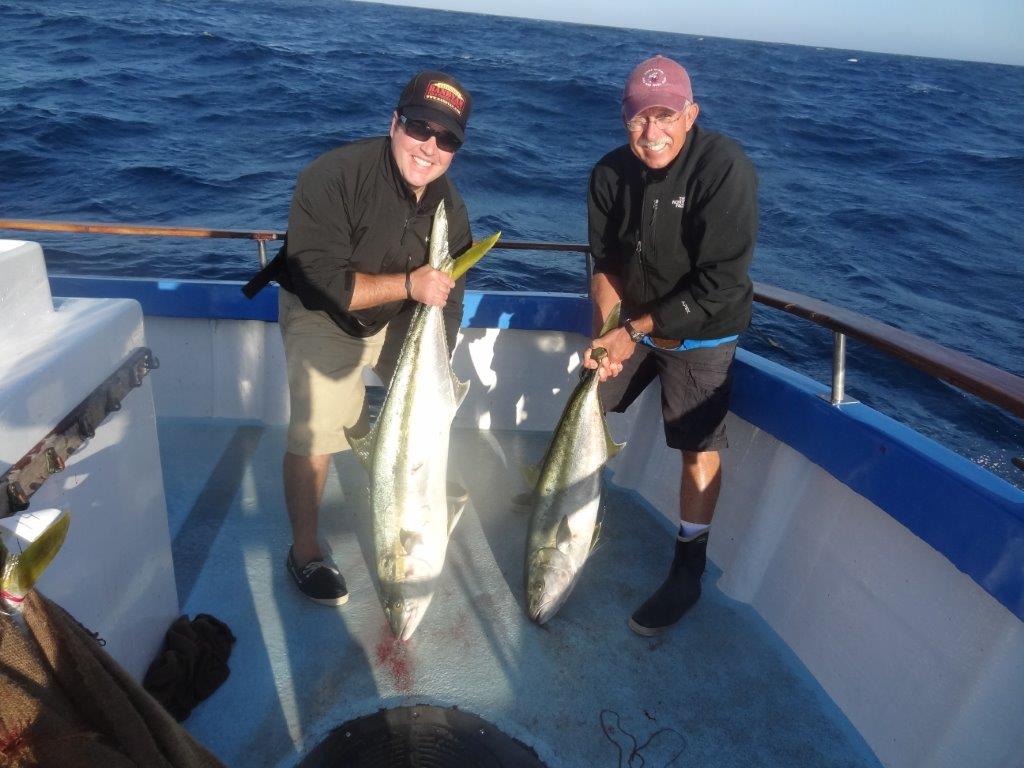 Trip #7: Boat: Thunderbird 2.5 day Departs: Tuesday, September 16th Fishing: September 17th, 18th Returns: September 19th am Thunderbird Crew: Jeff Markland- Captain Steve Raby- 2nd Captain Carmelo in the Galley Jose & Nate on deck The fishing schedule for 2025 has two 2 1/2 day trips and Trip #7 was the second one. Historically the 2 1/2 dayers fill quickly at the Annual Sign-Up Meeting. This was not the case this year as this trip only filled to about half during the Lottery and the rest of the spots were taken by guests. Here are the members who were on the trip: Gary Thompson, Steve Morgan, Mike Barton, Alex Mesko, Mike Higa, Bill Parks, John Lenker, Steve Lenker, Kyle Shimigawa, and Luke Burson (trip scribe). That is 10 members and the other 13 were all guests. The Club owns the following a big thank you for committing guests to this trip because without them this trip would have put a financial burden on the Club of $8,125. And the Club simply does not have those funds so the trip would have been cancelled. A special thank you to Mike Barton with 5 guests, Steve Lenker with 3, Mike Higa with 2, guests, Steve Morgan with 1 guest, Bryan Upcraft with 1 guest, and Luke Burson with 1 guest. And all the guests fit in perfectly and made it a good group to fish, sleep, and eat with for 2 1/2 days. As the trip approached Gary sent out information a week before with information about the trip. At that point the weather looked good and the fish counts were encouraging. As the trip got closer Gary sent out more information with the weather holding plus the Thunderbird getting limits on their weekend 2 1/2 dayer. All were feeling pretty optimistic about two things that had been missing on previous trips……nice weather and good fishing. On the day of departure, the usual members arrived early to ensure that they would board first to secure the tackle spots that are important to them, Others started to drift in throughout the afternoon. All were challenged with parking because of the local Wednesday street sweeping. Some were luckier than others but everyone found a parking spot. And then to our surprise the Thunderbird arrived close to 4 PM and it was obvious why…..very good fishing. To be specific they had back-to-back multi-day trips with limits of BF. And the buzz for all on the dock was pretty strong. They caught the fish at the Cortez, some at night near SCI but most during the day on bait. We asked about the bait and the group did not have good things to say. We quickly put two and two together that the fishing must be pretty good to do that well with poor bait. And another important item……NO STINKING FULL MOON! Jeff indicated we were headed back to Cortez and to save a little time we were going to take the direct course line around the east end of SCI. We’re expecting a flat smooth ride, we quickly learn that our course line had us in the rolley trough. It turned out to be anything but smooth. Our crew for the 2 1/2 trip was Jeff as our Captain, Steve as the 2nd Captain, Carmelo in the galley with Jose and Nat on deck. We have fished with them many times before so we knew we were in good hands for the 2 1/2 days. We stopped to load bait and to our surprise, that bait looked pretty good. The size could have been bigger as it was all medium to small-medium baits but it looked good. That even increased the anticipation of what was to come. As it turned out about 60% turned red while the rest was good bait. For the next two days, you really had to pick through what was in the hand wells to find the good ones. As we rolled into the “Bank” there was a pretty good electrical show to the west from about 3 AM to 5 AM plus some slight rain. And we could see some boats in the distance. We would learn that we would not be alone at Cortez Bank but because of the way the fish were spread out it would not make a difference. Jeff got the anchor down close to the position that they had success on the last trip and it took a little time for the fish to find us……and they did. It was a slow pick for the next 4 or 5 hours. Occasionally we would have 2 for 3 going but most of the time it was one at a time. The conditions were perfect, a strong current in the right direction and some breeze to keep the boat a little crossways to the current. Jeff said the conditions were perfect. As the morning continued there were two ways to get a bite: 1) hot bait close to the boat, or 2) long soak behind the boat. Although detailed records were not kept it seems that the hot baits close to the boat got 4 to 5 times the bites compared to the long soak. This getting bit close to the boat with hot baits was shared with all as it was working great for a few: light line (20#), small hooks (#6 or #8), the best bait in the well, and then give that bait 30 seconds, and if no bite wind in and do it again. And if the bait did not “swim” then cut your losses and wind in to do it again. Some fished that way and were rewarded, others continue to soak their baits. It was a little frustrating that so many were locked into soaking baits when the other method was working so well. It just must be too much work to change baits every 30 seconds and it is easier to soak them behind the boat. The few anglers who changed baits quickly did pretty very well while others did not……that’s fishing. The fish seem to leave us around 2 PM so Jeff decided to go looking in the direction of SCI. By heading back toward SCI we would have a shot at bigger fish at night. We ran all the way back to within 5 miles of SCI and never saw anything on the electronics. When it got dark the effort changed to working the area where the BF had been at night but after about 5 hours of looking without a single mark on the electronics Jeff decided to head back to Cortez to fish the same location we were in that morning. Carmelo prepared an excellent dinner of marinated chicken, basmati rice, and a Greek-style salad. And of course, it was finished 