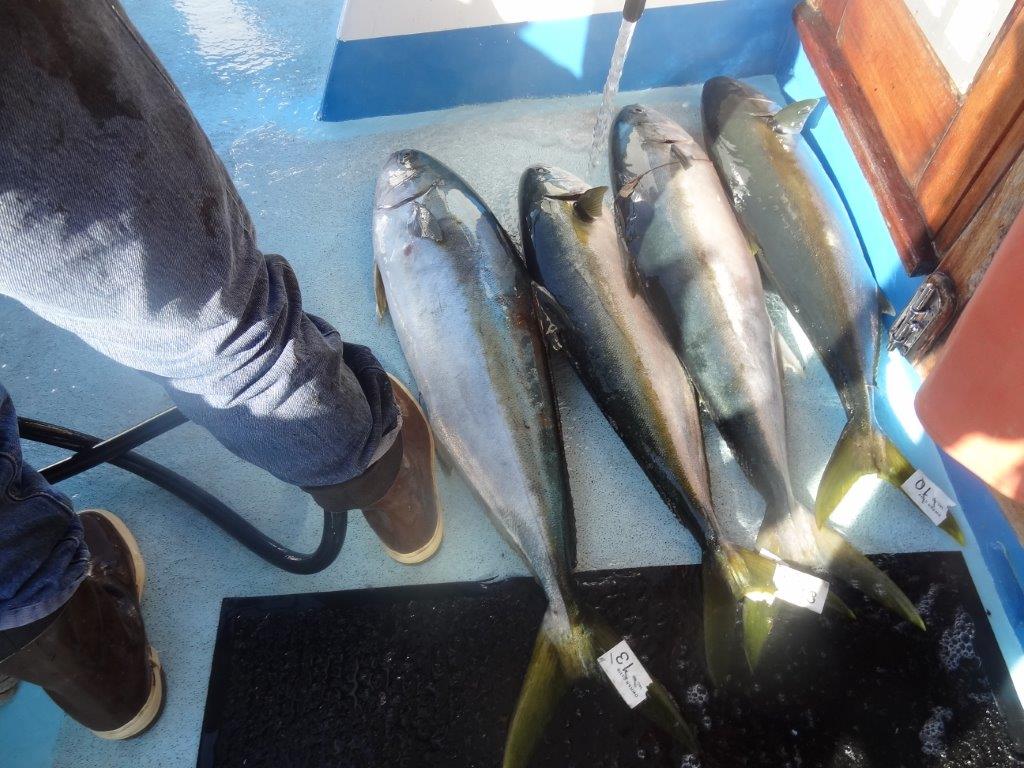 Trip #4: Boat: Thunderbird 2 day Departs: Thursday August 7th Fishing: August 8th, 9th Returns: August 9th pm Trip 4 started as usual with people arriving at Newport Landing at all hours of the day with anticipation of fishing. The preliminary reports from Gary Thompson were all too familiar to what we’ve seen this year. Bait was going to be an issue. And last but not least, was the fish seemed to pop up one day and then disappear the next. Nevertheless, everyone was ready to go. Friday morning saw us anchored at the usual cove off SCI. Weather was OK; fishable, but not a lot of fish. But the ones we caught were quality yellowtail and white sea bass. The sea lions provided ample entertainment …err I mean frustration. We hopped around to a few spots picking up the occasional calico but not much. Day 1 jackpot went to Alex Arthur (Justin Becker’s Guest) with the patch going to Nick Burson for some chunky YT’s Day 2 started much as it did Day 1 but the weather was worse than Day 1. We looked here and there with only 3 yellowtail to show for our efforts. Eventually, the Thunderbird turned towards offshore waters to try our luck at some bluefin. Unfortunately, the fish didn’t get the memo and we saw neither sign or had any bites. Mr, “Hey that’s my fish” Tom Hill was the lucky jackpot and patch winner for Day 2 with a 15# YT. So, there you have it, not a, “Hey you missed a great trip” kind ‘a trip but per usual, the members of our club all seemed to enjoy doing what we do. It’s not always about the fish; it’s about the people and the experience. LOL! Who am I kidding…we all want more fish. Until next time, step to the right/left and take up your slack.