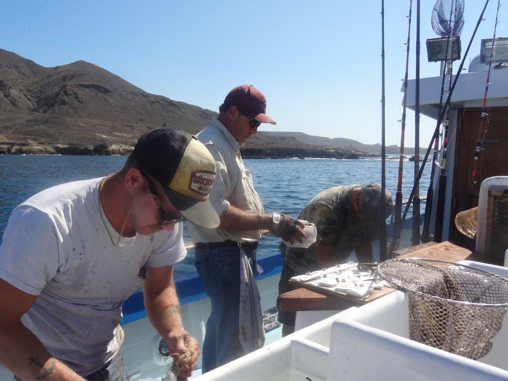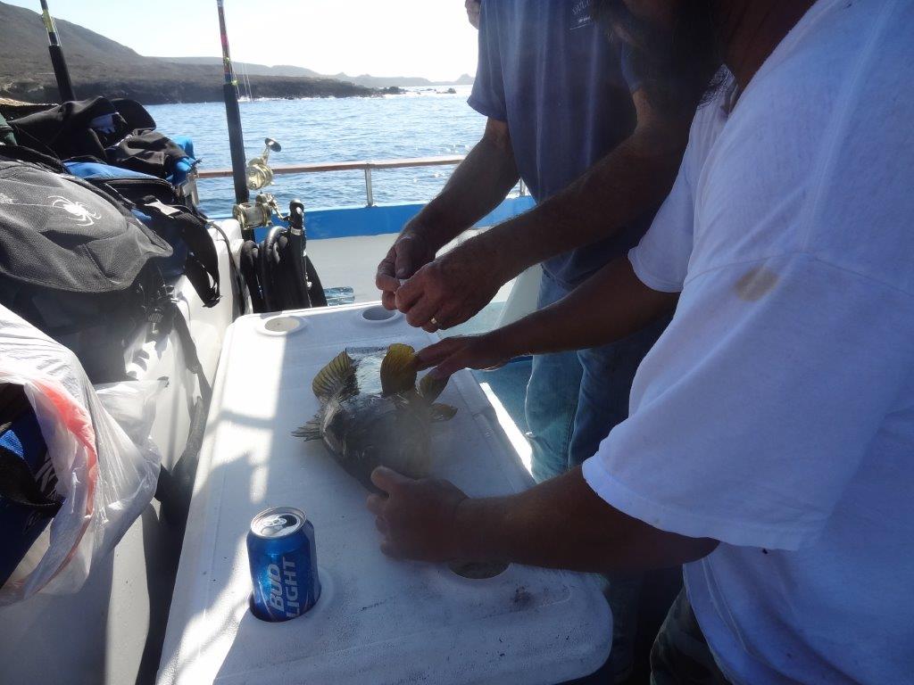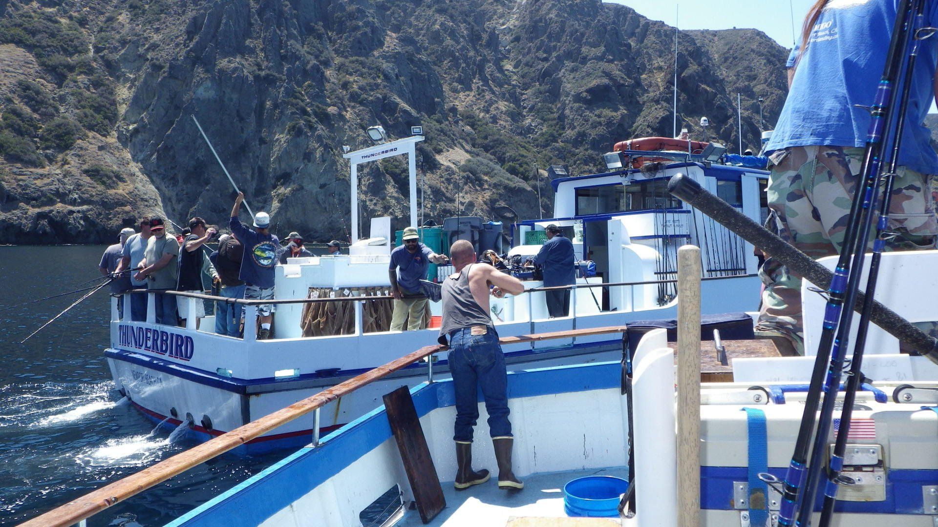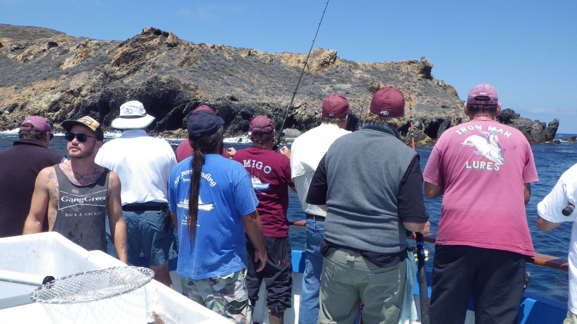 Trip #8: Boat: Thunderbird 1.5 day Departs: Thursday, October 2th Fishing: October 3th, 4th Returns: October 4th pm Thunderbird Crew: Capt. Jeff Capt. Chris Jose Nate Goofy Cast of Characters: Bill Parks Steve Morgan Riley Dyer Jim Bertella Justin Becker Jacob Richards Luke Burson Paul Morgan Mike Allen (Scribe) Patrick Thunyakij Bruce Granse Kevon Kong Michael Harris Ryan Burson Oscar Ochoa Ed Chutney Jeff Allen Andrew Ron Shrout Murphy Parks Romeo Ochoa James Harris Ozzie Baktiari Arriving for a trip in the month of October at Newport Landing is a far easier experience then one would have in the summer months of June – September. The dread of driving through the neighborhood in hopes of an empty space large enough to accommodate the larger trucks that many of the club members own seems to dissipate as the offerings are far more plentiful. While the welcomed views of summer also tend to be less abundant, the ensemble of club members arrived with plenty of time to catch-up on some conversations and enjoy a beverage or two.