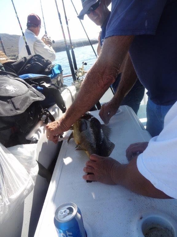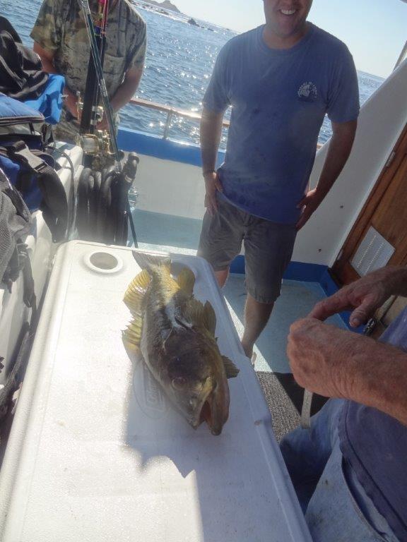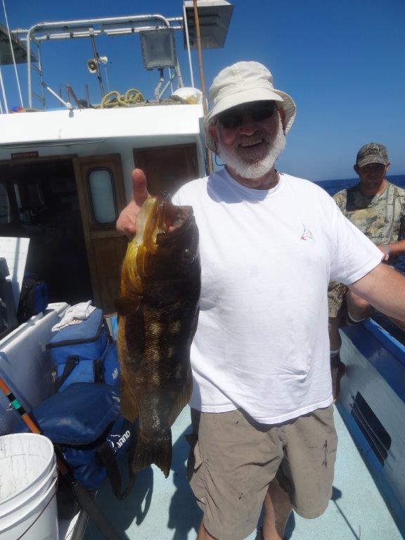Trip #6: Boat: Thunderbird 1.5 day Departs: Firday September 5th Fishing: September 5th - September 6th Returns: September 6th, AM Thunderbird Crew: Jeff Markland- Captain Steve Raby- 2nd Captain Jose & Nate on deck Carmelo in the Galley To everyone’s surprise the first to arrive on Thursday to get head of the line privileges was of all people Tony Beall! Damn! As the afternoon wore on into the evening, the remainer of the group made their way to the dock. The Thunderbird rolled in around 6:30pm and it was clear, fishing had been thoroughly trashed due to poor weather offshore. They fished San Clemente Island for two days for a handful of yellowtail, but good calico bass fishing. After I wandered down to the boat, and speaking with Jeff, confirmed the weather was forecast to be poor where the tuna had been, and they disappeared, and we would be relegated to fishing “an island or two”. So what did that mean? Well a very reliable squid light boat source had reported to Jeff that day that he had seen a large volume of yellowtail at Santa Barbara Island that same day. So Jeff said we will head there first and check it out, then scour the previous tuna grounds west of San Clemente Island later as we head to San Clemente Island to fish for bass and hopefully some yellowtail there. So off we went. We already had a few scoops of squid on the boat and the sardines we got were very good. Travel out was rather sporty as we had wind and swell and were traveling at a poor angle due to the course line required. 60 miles of shit weather does not make for sleeping very well. We arrived at Santa Barbara Island around 4:10am on the squid grounds and fished a couple areas in the front and back of the island for nothing. Screaming current- Dropper loop needed 16 oz to hold bottom in only 100 feet of water. There was no sign of the yellowtail from the day before. It figures. Around 8:45am Jeff said he had enough, pulled the plug and we headed to the next island via the tuna grounds. An interesting note was the wind had backed off and by 9:00am, it was actually pretty pleasant on the water. Spent the next several hours traveling and scouting the tuna grounds where the fish had been. Stopped on one spot on the sonar and had some fish under the boat for one missed bite on Luke’s drop shot rig. Arrived at the “9” on the west end of San Clemente Island to start. Heavy current and every sea lion at the island were there. Saw a couple Yellowtail boils but no bites. Moved to the north kelp at Northwest Harbor and the bass bit well for 20 minutes or so until the current backed off and the kelp floated. After that fished a number of spots “spot hopping” down the front side the rest of the day, a couple good bass bites and some pick bites, but no yellowtail to be found. A couple boils here and there but no volume or any biters. And all the sea lions we wanted. We were the only sportfishing boat there so we couldn’t “share the wealth” with anyone. The wind had come up again around mid-afternoon and made things pretty difficult as it was wind against the current all afternoon. Ended up in Pyramid Cove and fished in there until it was time to head home. Carmelo put out a very good dinner of tri-tip, potatoes, asparagus and salad, topped off with our usual Klondike Bar desert. Left for home at 10:00pm and another “sporty”, no sleep ride until inside Catalina. Arrived at around 4:15am, everyone unloaded and that was it! Trip total-NO “gamefish”, near boat limits of calico bass, some kept and most released, 1 really micro bonito, 1 barracuda, TWO Blue Perch! Also some miscellaneous whitefish and sheephead mixed in. Needless to say the old fixing axiom does apply to this trip: “You should have been here yesterday, wait until tomorrow” JP & Patch winner- Bill Parks- 4.5 lb Calico Bass One item that I find encouraging is the calico bass fishing at the island. The percentage of legal (14 inch) and above fish is way up from the past, and although the bite is not fully consistent, if you work at it, you can get some decent ones. Also, it seems the quantity of calicos is increasing as compared to the last couple of years. I am convinced that the 14” size limit which allows the spawners to grow enough to spawn may actually be contributing. Time will tell. Well that’s it! Next up, 2.5 day trip leaving Tuesday 9/16 returning Friday early morning 9/19. Your Scribe (Again)- Gary Thompson