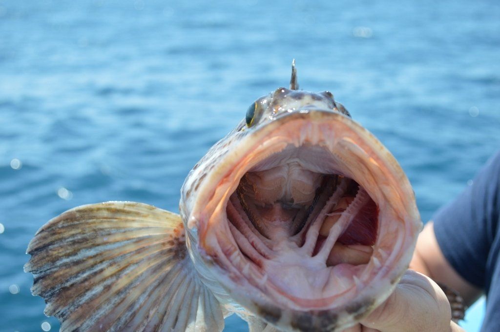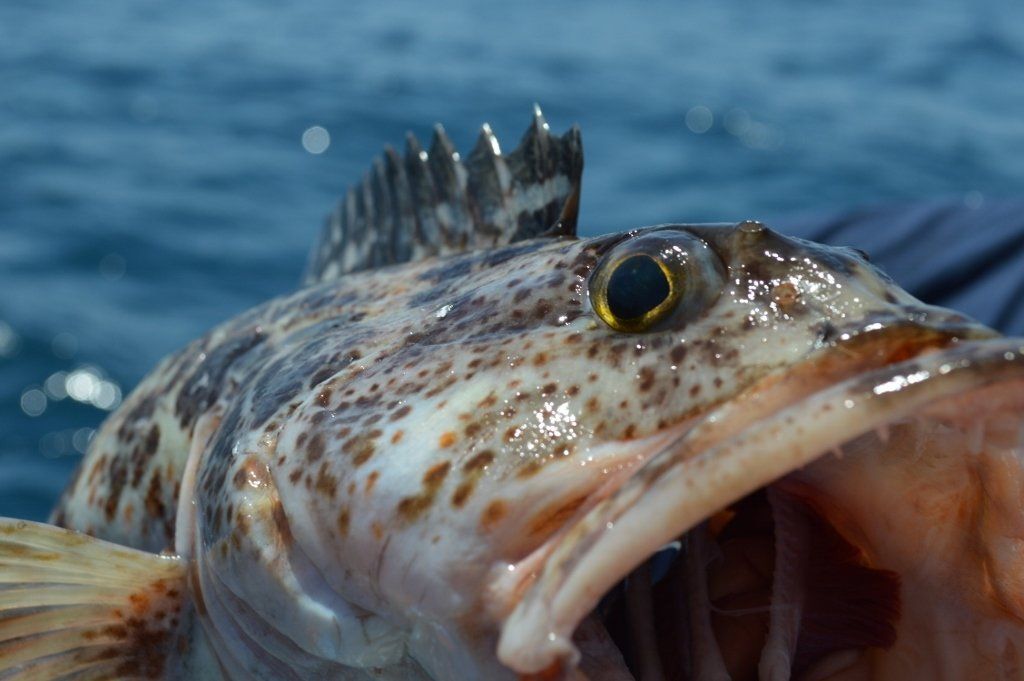 10:40 and 11:20 am - we make small moves. The sky remains clear and the seas calm. Several kings arise from our ranks: Charlie – bocaccio king; Andy W – ling king; Roy – johnny bass king; and Andy S – backlash king. 12:30 pm - surface and bottom fishing yield sculpin (scorpionfish). The Amigo moves and we turn our attention to lunch; thick burgers prepared by Ichiro, who has perfected this skill over a 20-year stint commanding the Amigo galley.