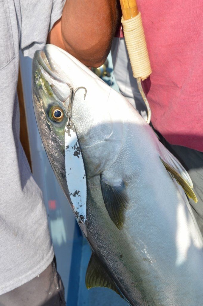 By 8:20 am, the Amigo moves past the Cortez Buoy to 63 degree water about 100 feet deep. Luke picks up what would be the jackpot yellowtail; a 16 ½ pound fish caught on surface iron. Roy catches a 4.3 pound calico bass, setting the bar for future club trips.