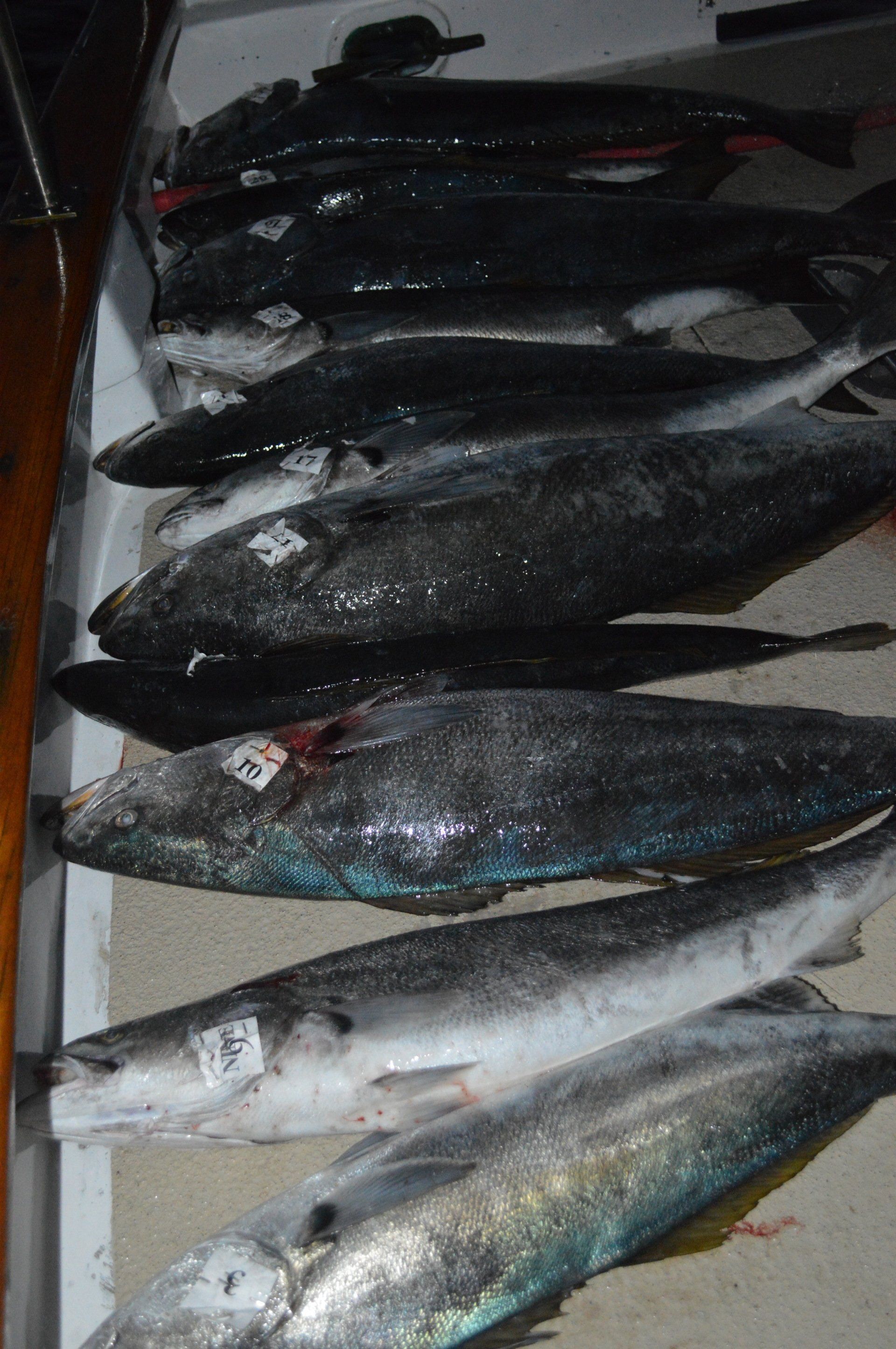 Trip #4: Boat: Thunderbird 2 day Departs: Thursday August 7th Fishing: August 8th, 9th Returns: August 9th pm Trip 4 started as usual with people arriving at Newport Landing at all hours of the day with anticipation of fishing. The preliminary reports from Gary Thompson were all too familiar to what we’ve seen this year. Bait was going to be an issue. And last but not least, was the fish seemed to pop up one day and then disappear the next. Nevertheless, everyone was ready to go. Friday morning saw us anchored at the usual cove off SCI. Weather was OK; fishable, but not a lot of fish. But the ones we caught were quality yellowtail and white sea bass. The sea lions provided ample entertainment …err I mean frustration. We hopped around to a few spots picking up the occasional calico but not much. Day 1 jackpot went to Alex Arthur (Justin Becker’s Guest) with the patch going to Nick Burson for some chunky YT’s Day 2 started much as it did Day 1 but the weather was worse than Day 1. We looked here and there with only 3 yellowtail to show for our efforts. Eventually, the Thunderbird turned towards offshore waters to try our luck at some bluefin. Unfortunately, the fish didn’t get the memo and we saw neither sign or had any bites. Mr, “Hey that’s my fish” Tom Hill was the lucky jackpot and patch winner for Day 2 with a 15# YT. So, there you have it, not a, “Hey you missed a great trip” kind ‘a trip but per usual, the members of our club all seemed to enjoy doing what we do. It’s not always about the fish; it’s about the people and the experience. LOL! Who am I kidding…we all want more fish. Until next time, step to the right/left and take up your slack.