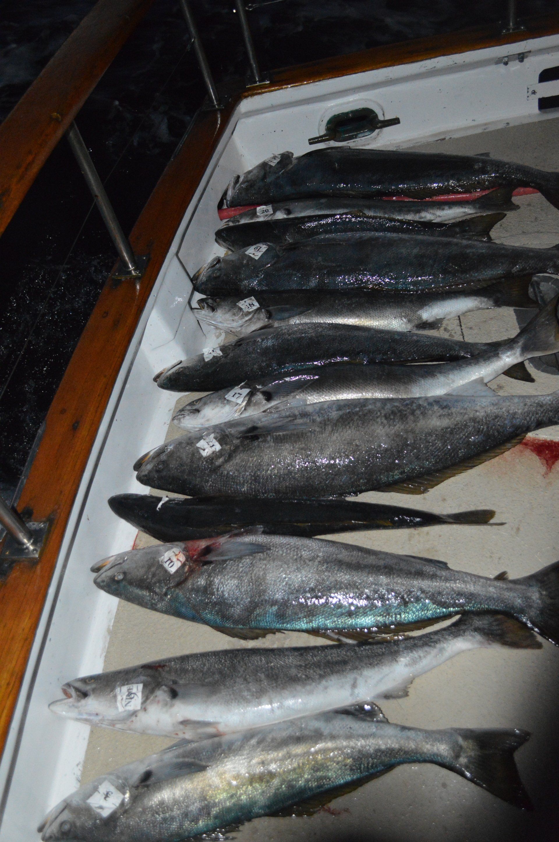 Trip #7: Boat: Thunderbird 2.5 day Departs: Tuesday, September 16th Fishing: September 17th, 18th Returns: September 19th am Thunderbird Crew: Jeff Markland- Captain Steve Raby- 2nd Captain Carmelo in the Galley Jose & Nate on deck The fishing schedule for 2025 has two 2 1/2 day trips and Trip #7 was the second one. Historically the 2 1/2 dayers fill quickly at the Annual Sign-Up Meeting. This was not the case this year as this trip only filled to about half during the Lottery and the rest of the spots were taken by guests. Here are the members who were on the trip: Gary Thompson, Steve Morgan, Mike Barton, Alex Mesko, Mike Higa, Bill Parks, John Lenker, Steve Lenker, Kyle Shimigawa, and Luke Burson (trip scribe). That is 10 members and the other 13 were all guests. The Club owns the following a big thank you for committing guests to this trip because without them this trip would have put a financial burden on the Club of $8,125. And the Club simply does not have those funds so the trip would have been cancelled. A special thank you to Mike Barton with 5 guests, Steve Lenker with 3, Mike Higa with 2, guests, Steve Morgan with 1 guest, Bryan Upcraft with 1 guest, and Luke Burson with 1 guest. And all the guests fit in perfectly and made it a good group to fish, sleep, and eat with for 2 1/2 days. As the trip approached Gary sent out information a week before with information about the trip. At that point the weather looked good and the fish counts were encouraging. As the trip got closer Gary sent out more information with the weather holding plus the Thunderbird getting limits on their weekend 2 1/2 dayer. All were feeling pretty optimistic about two things that had been missing on previous trips……nice weather and good fishing. On the day of departure, the usual members arrived early to ensure that they would board first to secure the tackle spots that are important to them, Others started to drift in throughout the afternoon. All were challenged with parking because of the local Wednesday street sweeping. Some were luckier than others but everyone found a parking spot. And then to our surprise the Thunderbird arrived close to 4 PM and it was obvious why…..very good fishing. To be specific they had back-to-back multi-day trips with limits of BF. And the buzz for all on the dock was pretty strong. They caught the fish at the Cortez, some at night near SCI but most during the day on bait. We asked about the bait and the group did not have good things to say. We quickly put two and two together that the fishing must be pretty good to do that well with poor bait. And another important item……NO STINKING FULL MOON! Jeff indicated we were headed back to Cortez and to save a little time we were going to take the direct course line around the east end of SCI. We’re expecting a flat smooth ride, we quickly learn that our course line had us in the rolley trough. It turned out to be anything but smooth. Our crew for the 2 1/2 trip was Jeff as our Captain, Steve as the 2nd Captain, Carmelo in the galley with Jose and Nat on deck. We have fished with them many times before so we knew we were in good hands for the 2 1/2 days. We stopped to load bait and to our surprise, that bait looked pretty good. The size could have been bigger as it was all medium to small-medium baits but it looked good. That even increased the anticipation of what was to come. As it turned out about 60% turned red while the rest was good bait. For the next two days, you really had to pick through what was in the hand wells to find the good ones. As we rolled into the “Bank” there was a pretty good electrical show to the west from about 3 AM to 5 AM plus some slight rain. And we could see some boats in the distance. We would learn that we would not be alone at Cortez Bank but because of the way the fish were spread out it would not make a difference. Jeff got the anchor down close to the position that they had success on the last trip and it took a little time for the fish to find us……and they did. It was a slow pick for the next 4 or 5 hours. Occasionally we would have 2 for 3 going but most of the time it was one at a time. The conditions were perfect, a strong current in the right direction and some breeze to keep the boat a little crossways to the current. Jeff said the conditions were perfect. As the morning continued there were two ways to get a bite: 1) hot bait close to the boat, or 2) long soak behind the boat. Although detailed records were not kept it seems that the hot baits close to the boat got 4 to 5 times the bites compared to the long soak. This getting bit close to the boat with hot baits was shared with all as it was working great for a few: light line (20#), small hooks (#6 or #8), the best bait in the well, and then give that bait 30 seconds, and if no bite wind in and do it again. And if the bait did not “swim” then cut your losses and wind in to do it again. Some fished that way and were rewarded, others continue to soak their baits. It was a little frustrating that so many were locked into soaking baits when the other method was working so well. It just must be too much work to change baits every 30 seconds and it is easier to soak them behind the boat. The few anglers who changed baits quickly did pretty very well while others did not……that’s fishing. The fish seem to leave us around 2 PM so Jeff decided to go looking in the direction of SCI. By heading back toward SCI we would have a shot at bigger fish at night. We ran all the way back to within 5 miles of SCI and never saw anything on the electronics. When it got dark the effort changed to working the area where the BF had been at night but after about 5 hours of looking without a single mark on the electronics Jeff decided to head back to Cortez to fish the same location we were in that morning. Carmelo prepared an excellent dinner of marinated chicken, basmati rice, and a Greek-style salad. And of course, it was finished 