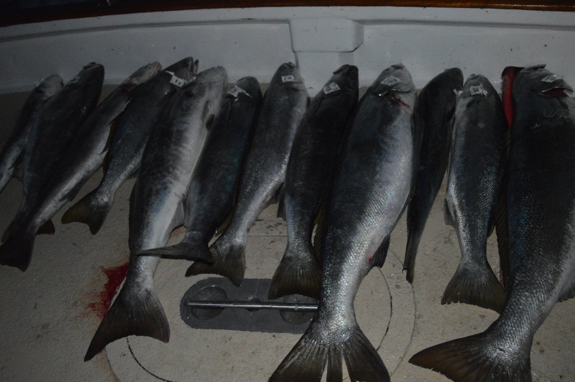Trip #6: Boat: Thunderbird 1.5 day Departs: Firday September 5th Fishing: September 5th - September 6th Returns: September 6th, AM Thunderbird Crew: Jeff Markland- Captain Steve Raby- 2nd Captain Jose & Nate on deck Carmelo in the Galley To everyone’s surprise the first to arrive on Thursday to get head of the line privileges was of all people Tony Beall! Damn! As the afternoon wore on into the evening, the remainer of the group made their way to the dock. The Thunderbird rolled in around 6:30pm and it was clear, fishing had been thoroughly trashed due to poor weather offshore. They fished San Clemente Island for two days for a handful of yellowtail, but good calico bass fishing. After I wandered down to the boat, and speaking with Jeff, confirmed the weather was forecast to be poor where the tuna had been, and they disappeared, and we would be relegated to fishing “an island or two”. So what did that mean? Well a very reliable squid light boat source had reported to Jeff that day that he had seen a large volume of yellowtail at Santa Barbara Island that same day. So Jeff said we will head there first and check it out, then scour the previous tuna grounds west of San Clemente Island later as we head to San Clemente Island to fish for bass and hopefully some yellowtail there. So off we went. We already had a few scoops of squid on the boat and the sardines we got were very good. Travel out was rather sporty as we had wind and swell and were traveling at a poor angle due to the course line required. 60 miles of shit weather does not make for sleeping very well. We arrived at Santa Barbara Island around 4:10am on the squid grounds and fished a couple areas in the front and back of the island for nothing. Screaming current- Dropper loop needed 16 oz to hold bottom in only 100 feet of water. There was no sign of the yellowtail from the day before. It figures. Around 8:45am Jeff said he had enough, pulled the plug and we headed to the next island via the tuna grounds. An interesting note was the wind had backed off and by 9:00am, it was actually pretty pleasant on the water. Spent the next several hours traveling and scouting the tuna grounds where the fish had been. Stopped on one spot on the sonar and had some fish under the boat for one missed bite on Luke’s drop shot rig. Arrived at the “9” on the west end of San Clemente Island to start. Heavy current and every sea lion at the island were there. Saw a couple Yellowtail boils but no bites. Moved to the north kelp at Northwest Harbor and the bass bit well for 20 minutes or so until the current backed off and the kelp floated. After that fished a number of spots “spot hopping” down the front side the rest of the day, a couple good bass bites and some pick bites, but no yellowtail to be found. A couple boils here and there but no volume or any biters. And all the sea lions we wanted. We were the only sportfishing boat there so we couldn’t “share the wealth” with anyone. The wind had come up again around mid-afternoon and made things pretty difficult as it was wind against the current all afternoon. Ended up in Pyramid Cove and fished in there until it was time to head home. Carmelo put out a very good dinner of tri-tip, potatoes, asparagus and salad, topped off with our usual Klondike Bar desert. Left for home at 10:00pm and another “sporty”, no sleep ride until inside Catalina. Arrived at around 4:15am, everyone unloaded and that was it! Trip total-NO “gamefish”, near boat limits of calico bass, some kept and most released, 1 really micro bonito, 1 barracuda, TWO Blue Perch! Also some miscellaneous whitefish and sheephead mixed in. Needless to say the old fixing axiom does apply to this trip: “You should have been here yesterday, wait until tomorrow” JP & Patch winner- Bill Parks- 4.5 lb Calico Bass One item that I find encouraging is the calico bass fishing at the island. The percentage of legal (14 inch) and above fish is way up from the past, and although the bite is not fully consistent, if you work at it, you can get some decent ones. Also, it seems the quantity of calicos is increasing as compared to the last couple of years. I am convinced that the 14” size limit which allows the spawners to grow enough to spawn may actually be contributing. Time will tell. Well that’s it! Next up, 2.5 day trip leaving Tuesday 9/16 returning Friday early morning 9/19. Your Scribe (Again)- Gary Thompson