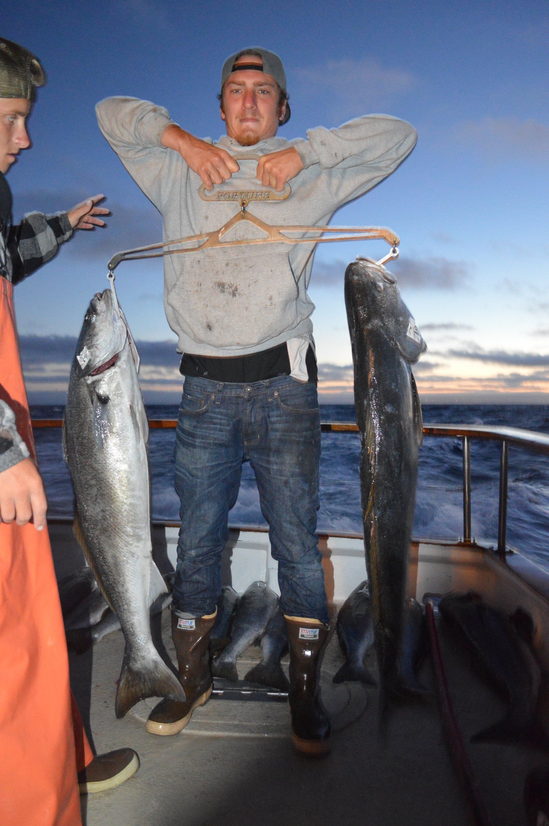 Trip #5: Boat: Thunderbird 2.5 day Departs: Tuesday August 19th Fishing: August 20th, 21th Returns: August 22th am Thunderbird Crew: Jeff Markland- Captain Steve Raby- 2nd Captain Jose, Jared & Nate on deck Goofy in his usual form in the Galley The usual suspects, newer club members and a slew of guests began gathering for the upcoming 2.5-day venture on board the Thunderbird on Tuesday afternoon/evening, a lot of discussion occurred around where will we fish, what is our bait, are we going to fish for tuna, and more importantly, the weather. Forecast was for pretty breezy on the outer banks and tuna grounds with somewhat better at the island. Thursday weather looked much improved everywhere. As it turned out, the weather turned out nice the first day, and even nicer the second day. Also the good news was we would have sardines for bait. When the boat returned from the fuel dock around 7:30, I wandered down to the boat and sat with Jeff and discussed our “options”. There was about 2 scoops of live squid on the boat and the squid at San Clemente Island was available but by jigging. Also, the yellowtail fishing was hit or miss at best early in the cove, and then really nothing to catch the rest of the day unless the bass decided to bite. The tuna grounds were in range to do some night fishing between the days, and daytime fishing was producing smaller fish. The Tanner Bank had the 10-15 lb variety which was spotty, and inside toward SCI were bigger 30-35lb variety with some larger mixed in. Getting bites though would be hard. The Cortez Bank coughed up 100 yellowtail for Jeff a few days before. There was also some white sea bass caught at San Nicholas Island so that was an option. Soooo, one more time, what to do. Jeff decided he will decide when we leave the bait receiver as I said give it your best shot. The final decision, with the weather forecast improving, we would head to the Cortez Bank since there had been some yellowtail there a few days before. And off we went. Travel out was not too bad. Day 1- Arrived at the Cortez Bank around 7:45 am, fished a couple areas for nothing except some of the jumbo bonito, large mackerel and a few bottom dwellers. There was no sign of yellowtail. Where the F**k did they go? Around 10:00am, Jeff pulled the plug and we headed back inside to the tuna grounds, about 30 miles away. Weather was getting much nicer, We ended up picking at the BFT not long after we arrived in the area around 2:00pm and joined “the fleet”. We had one decent plunker drift for 16 BFT, and scratched up 9 more at sundown. As dark fell, we headed into the island to try for the early morning yellowtail fishing at the Lost Point area. Day 1 fish count- 25 BFT, 4 Bonito kept, a few misc bottom dwellers kept JP winner- Bronson Noggle (Cory Steinwand Guest)- 30 plus lb BFT, Patch winner Cory Steinwand- 30 plus lb BFT (it was very close) Day 2- had a few yellowtail bites in the dark and grey light at Lost Point, all nice fish. Headed out after grey light for yesterday’s tuna grounds. Flat calm weather. Worked the area with “the fleet” for a couple of hours and covering a lot of water. Jeff finally pulled the plug and decided to take a gamble and head to the Tanner Bank since there were tuna there a few days before. And the gamble certainly paid off. We were greeted with boiling fish in the chum circle when we arrived, boiling fish on the anchor and steady fishing on the 10-15 lb BFT the rest of the afternoon. We fished a couple deep spots for decent reds and other stuff, one nice ling cod and headed back to the area west of SCI toward San Nicholas Island for some night fishing. We had several stops on spots of fish, and got a few anywhere from 30 plus lbs up to 100lbs. Around midnight, we headed home. We were able to fish that long because by chance, the boat was not scheduled to run a ¾ day trip when we got in, so we got to fish longer. Arrived at the dock around 7:20am, unloaded and that was it. Day 2 fish count- 6 Yellowtail, 40 BFT, 1 Halibut, 2 Barracuda, 100 plus mixed Reds and Rockfish, 1 Ling Cod JP & Patch winner- Cory Steinwand- 102 lb BFT Trip total- 65 BFT, 6 Yellowtail, 1 Halibut, 4 Bonito, 100 plus mixed Reds/Rockfish, 1 Ling Cod The weather for the entire trip was good. Temperature cool both days but very nice. Very little wind to flat calm the entire 2 days. One thing that was troubling was the amount of casualties on these smaller tuna. Seems like most everyone liberated one or two, or more. (We won’t mention my luck!). Small hooks and light line with too much pressure and these little guys were hot! All in all a good time had by all and a very good group of guests on this trip as well. That’s it! Your Scribe- Gary Thompson