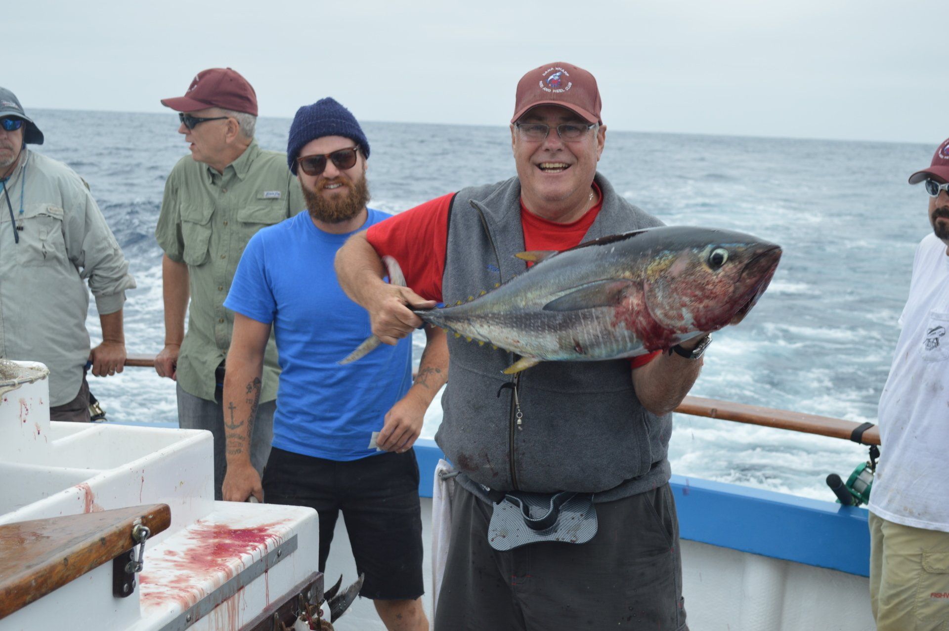 Final total for the trip was 72 mixed tuna- 21 BFT and 51 YFT. Hot sticks for the trip were, of course, the Burson duo Luke and Ryan who bagged 9 tuna each. Roy P, Tom H and Bill P had 7 each. Jackpots and patches went as follows- Fri- Bill Gardner- 30 lb BFT, Sat- Ryan Burson- 33lb BFT. All in all, it was a great trip, with great weather and a goodtime had by all.
