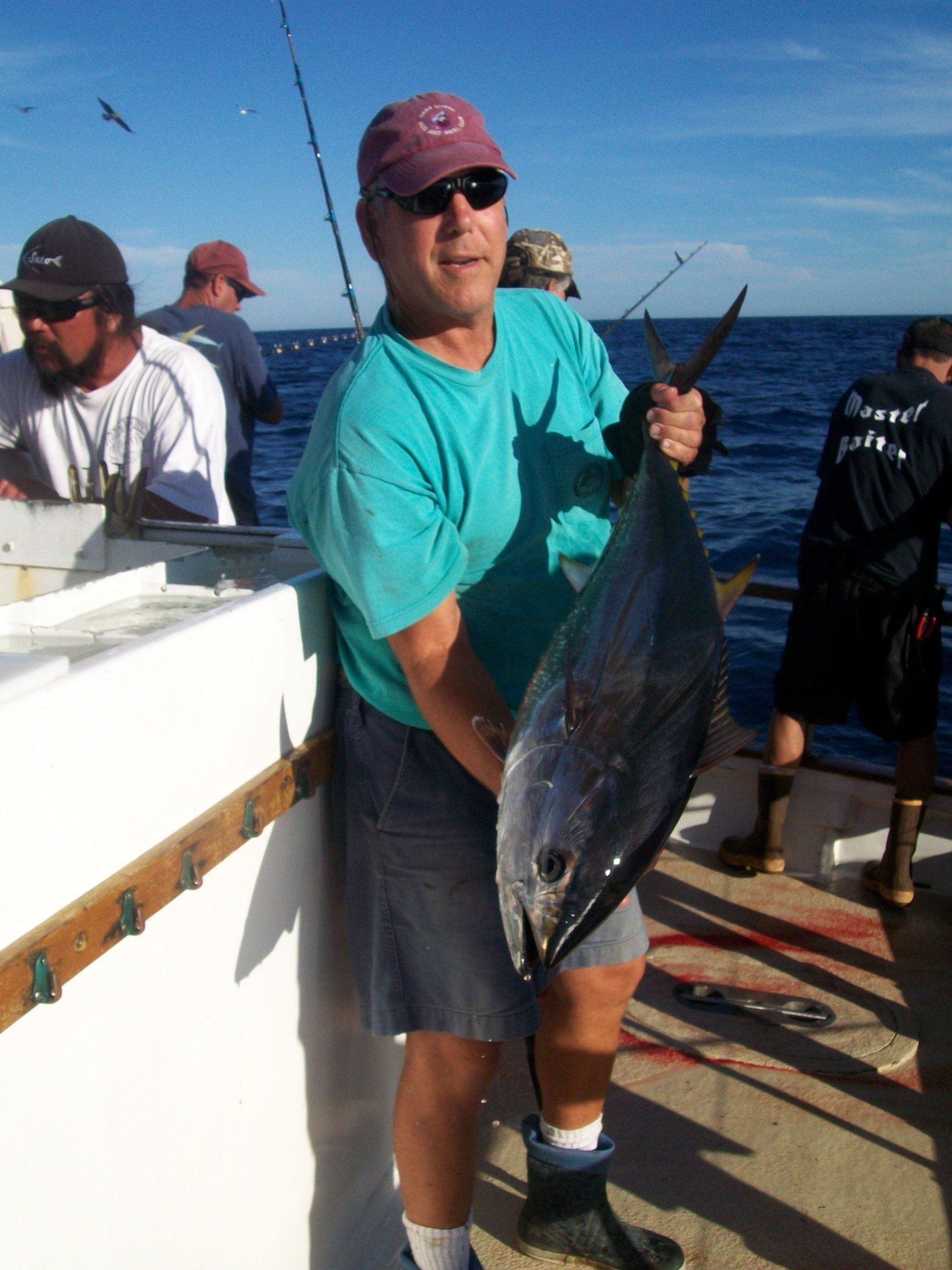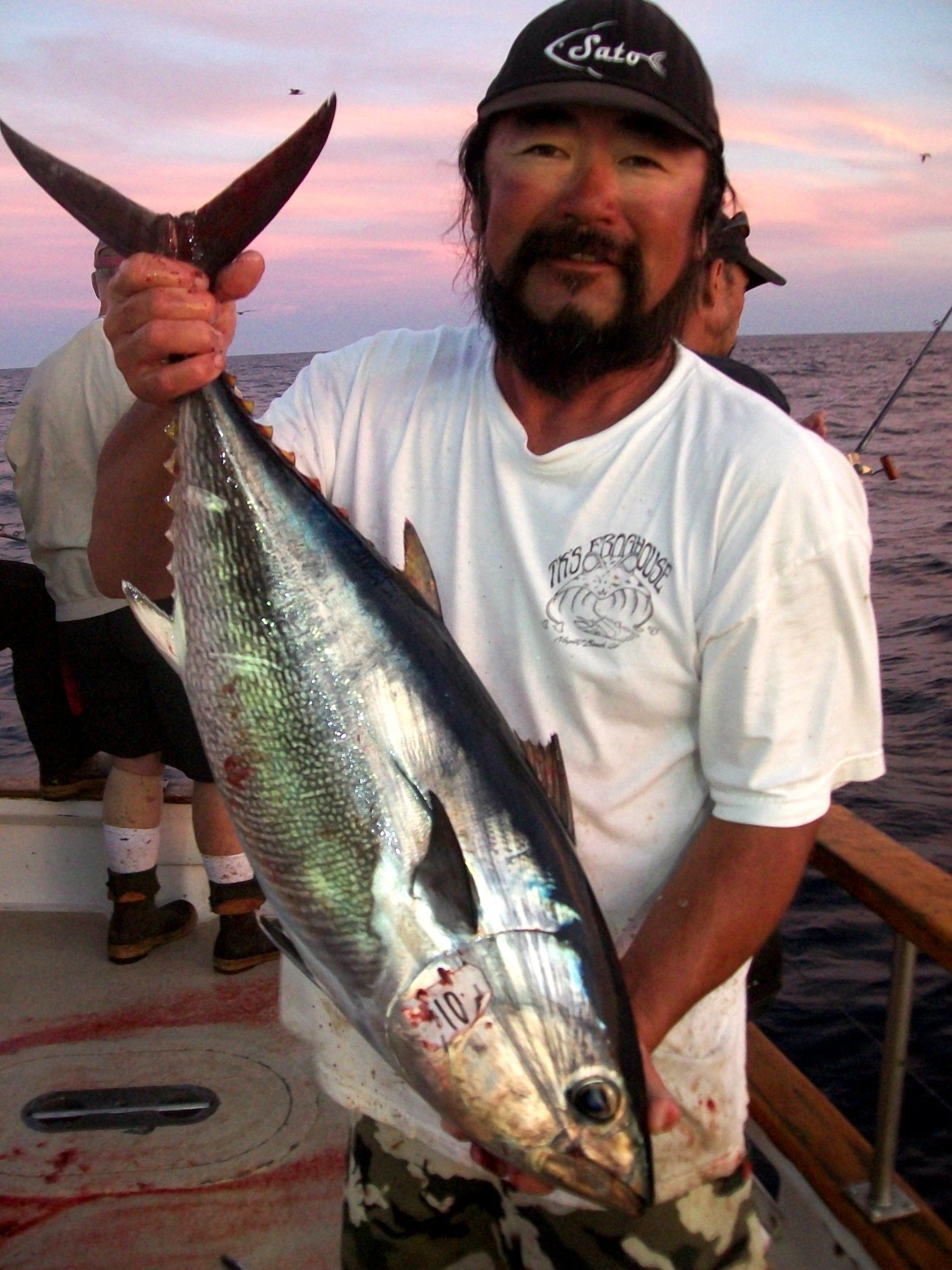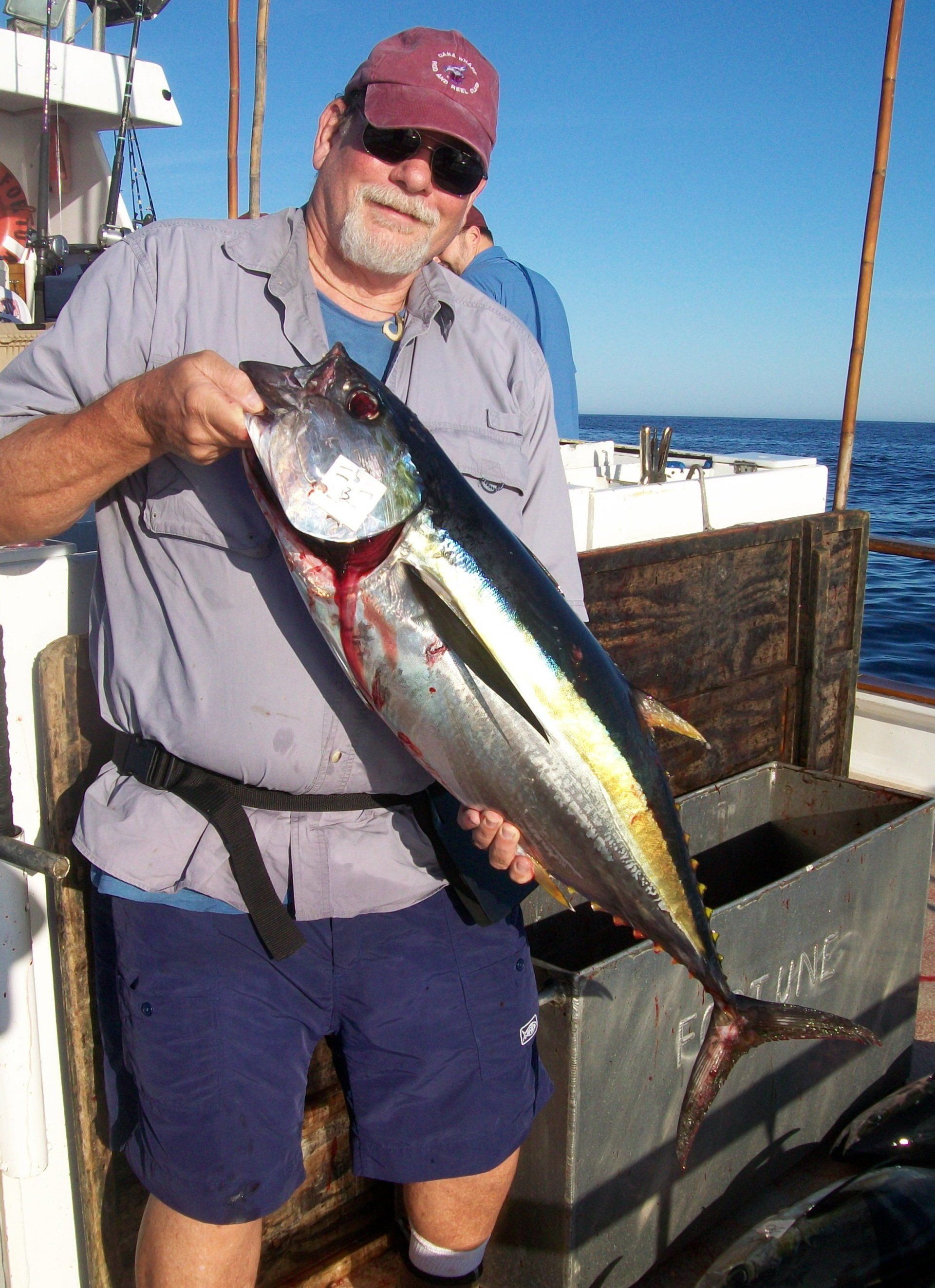 At about 0700, we arrived back at Tanner Bank. The boat was stopped by Mike Trunk trolling a purple Halco jig for a nice BFT.