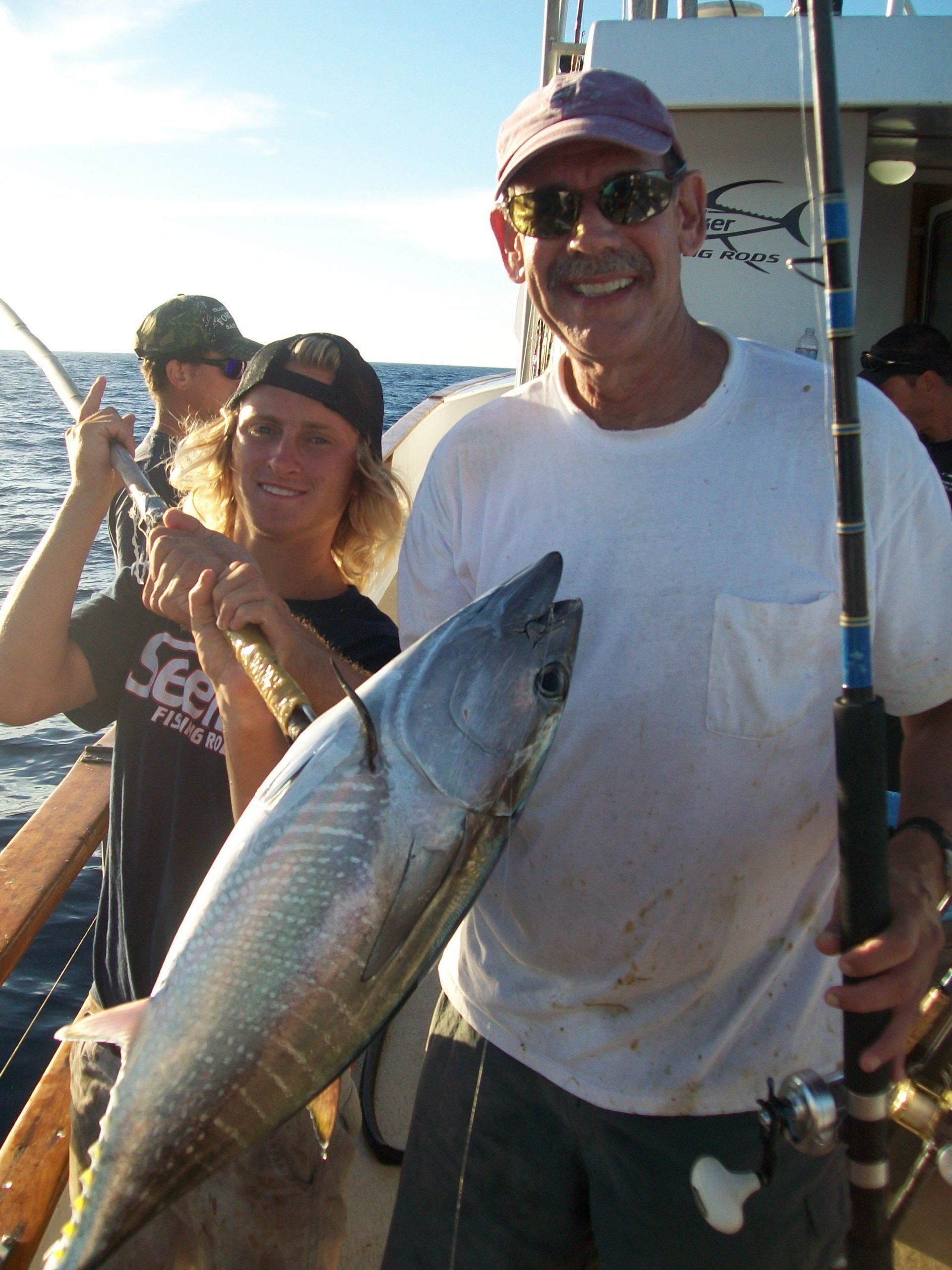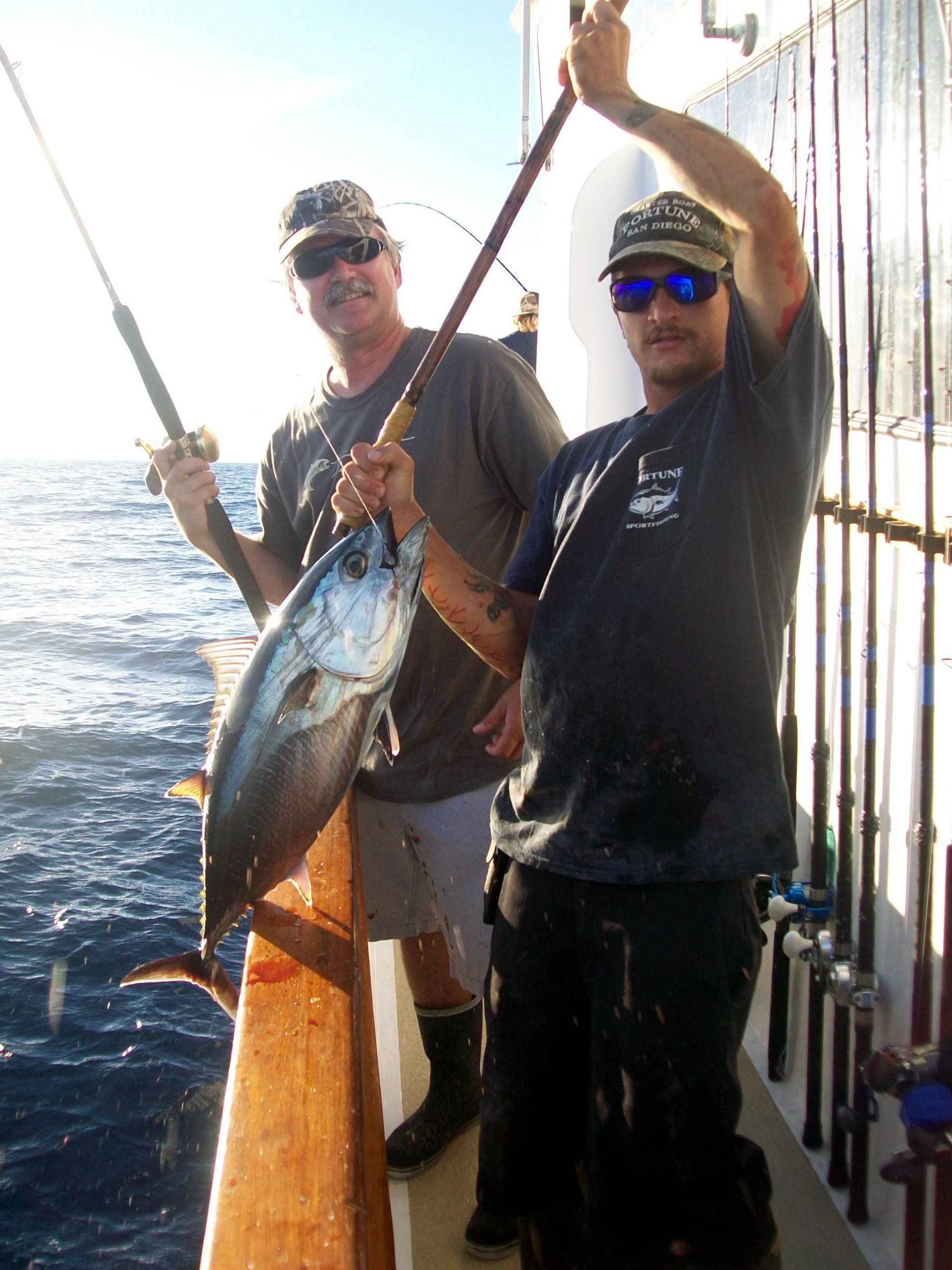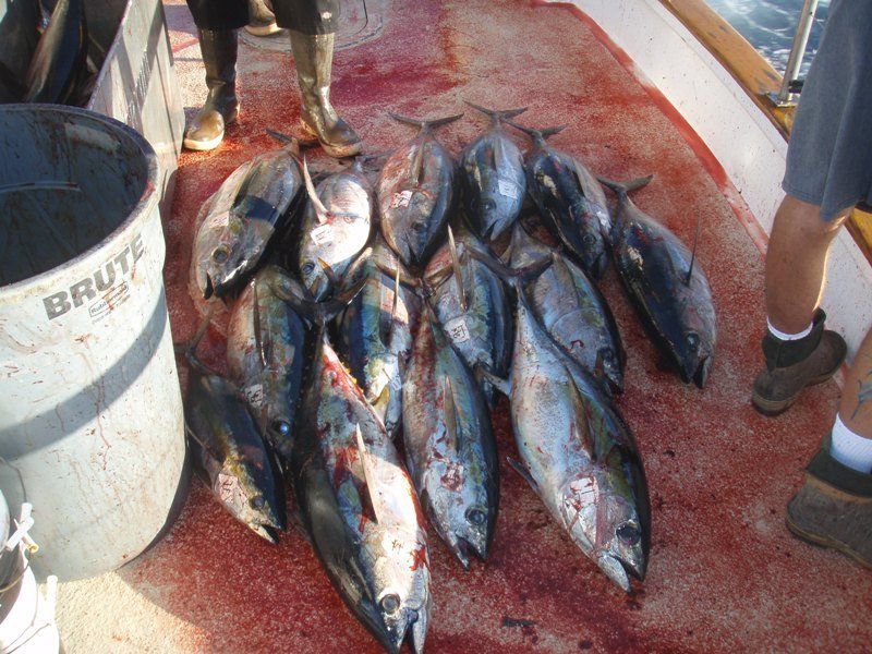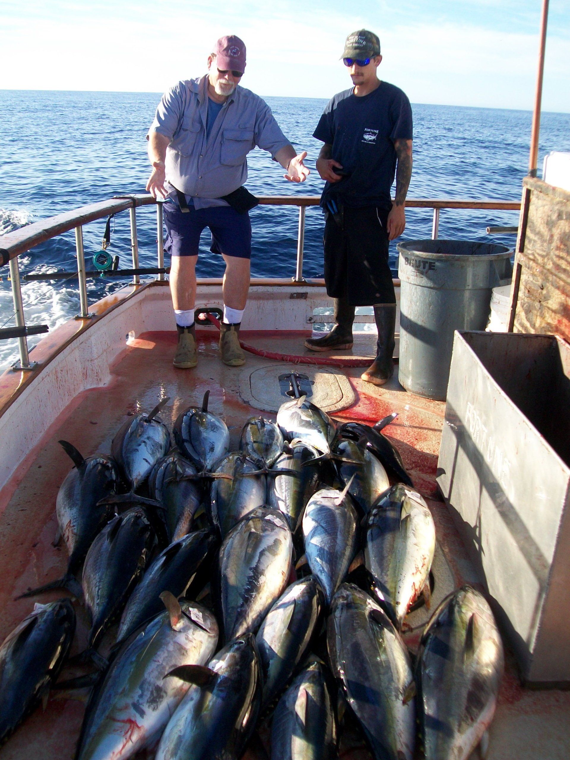 At about 0700, we arrived back at Tanner Bank. The boat was stopped by Mike Trunk trolling a purple Halco jig for a nice BFT.